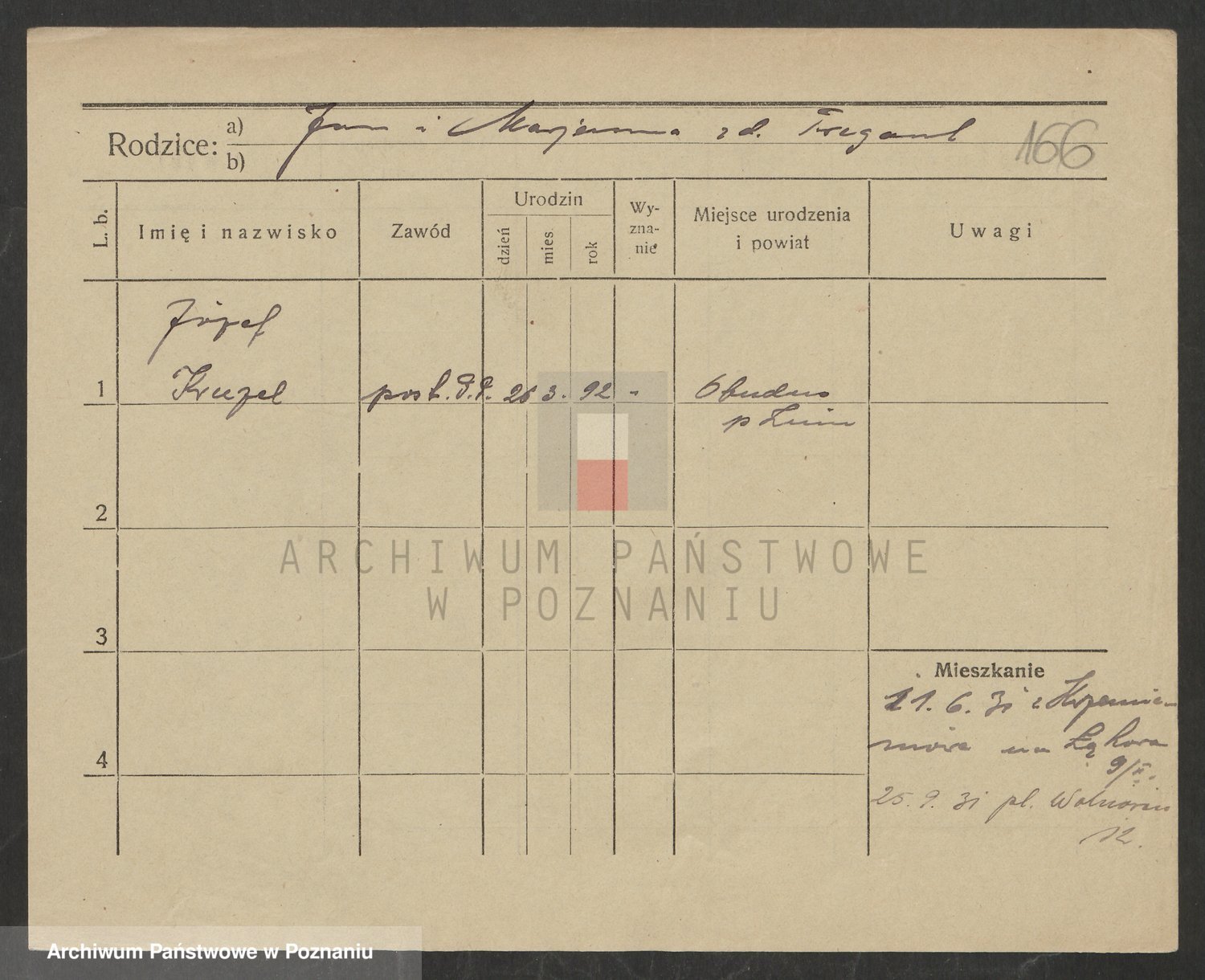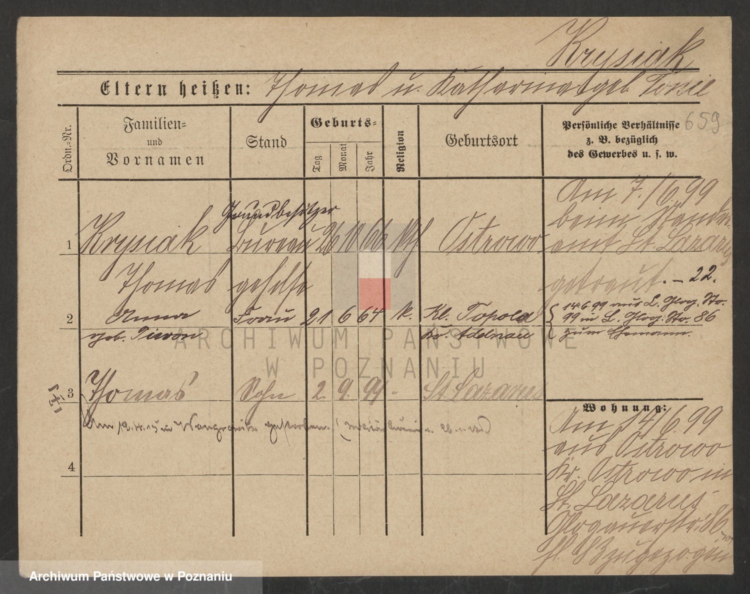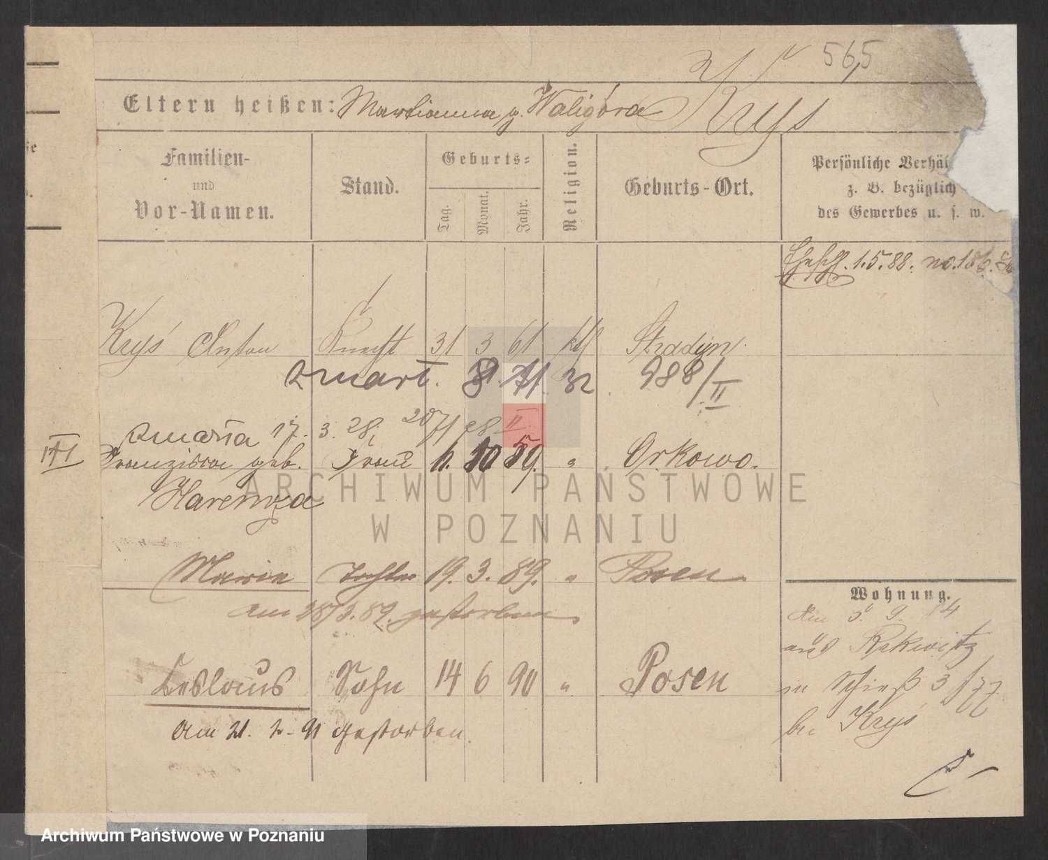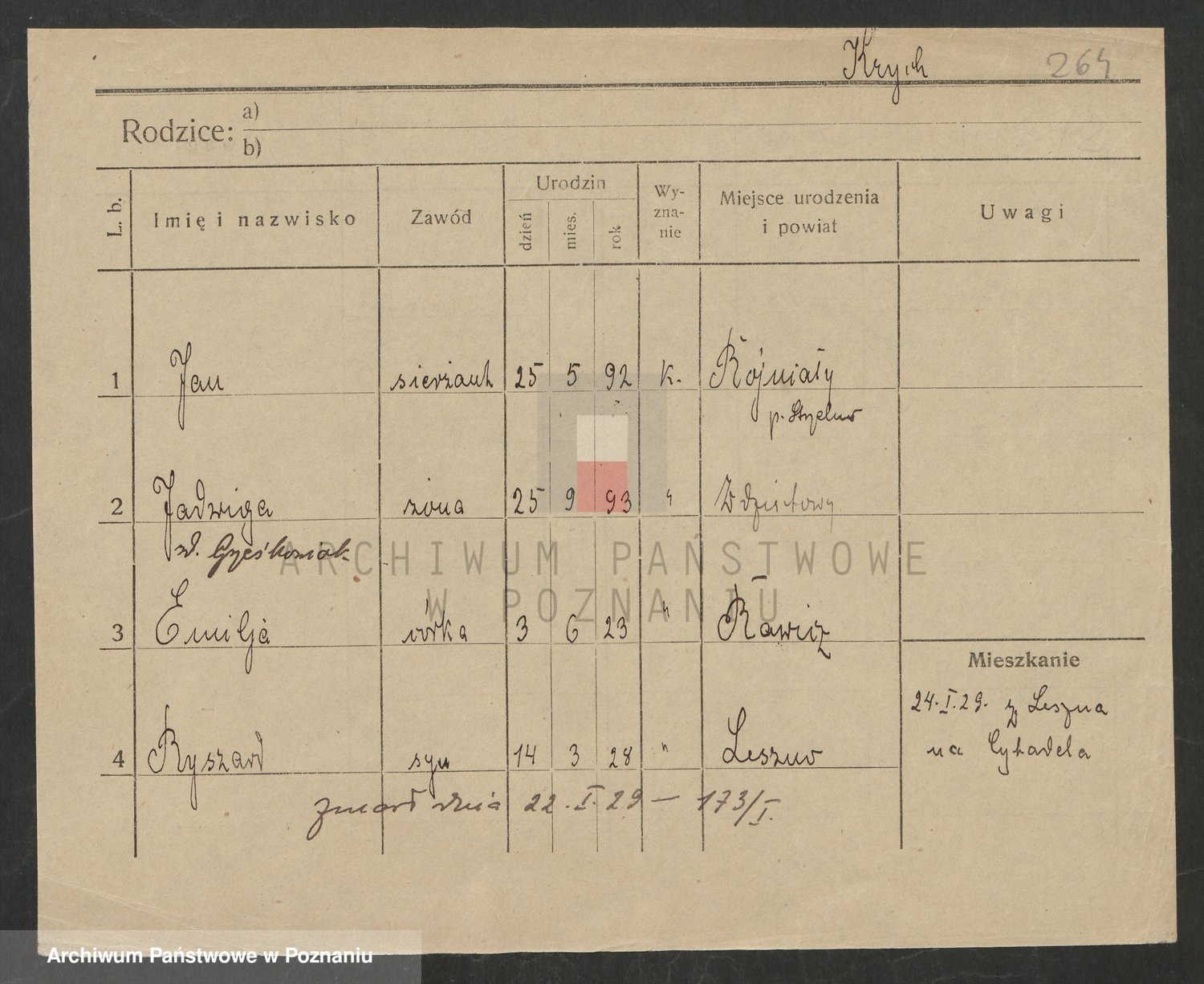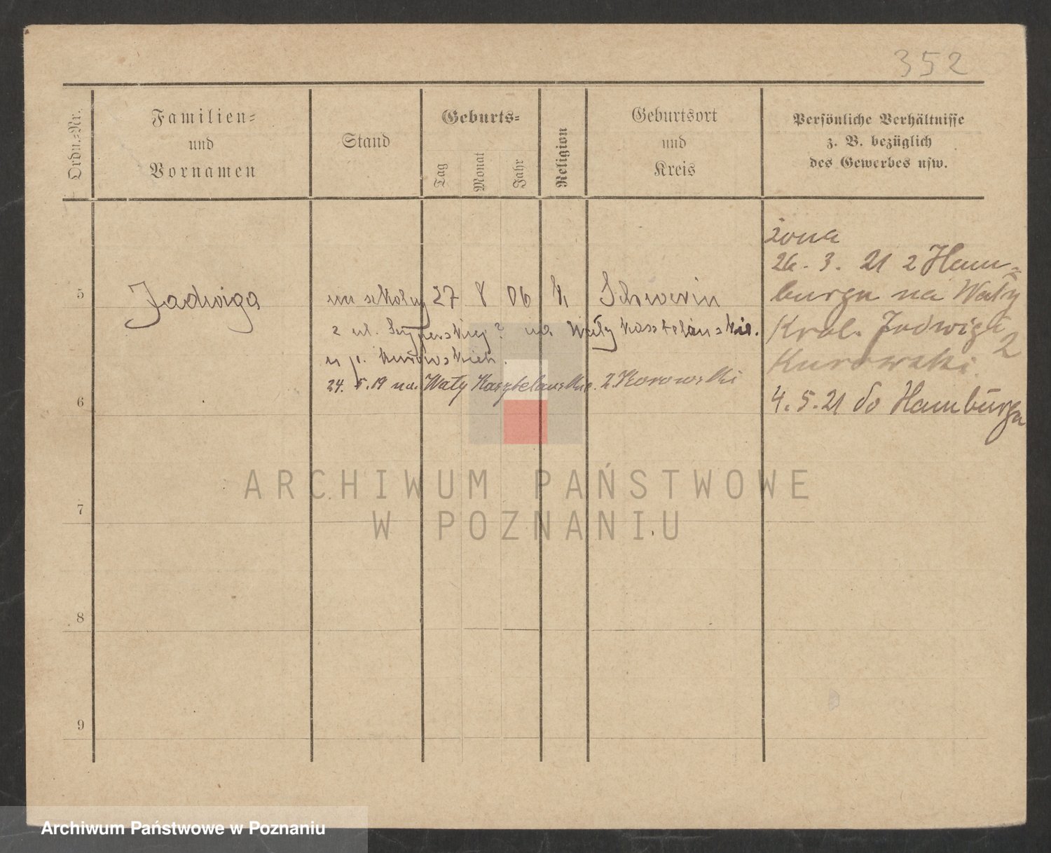 Podgląd karty osobowej dostępny jest po kliknięciu na nazwisko lub ikonkę karty. Można dokonywać powiększenia (ikony na górze) lub przechodzić między kolejnymi skanami (strzałki po bokach).