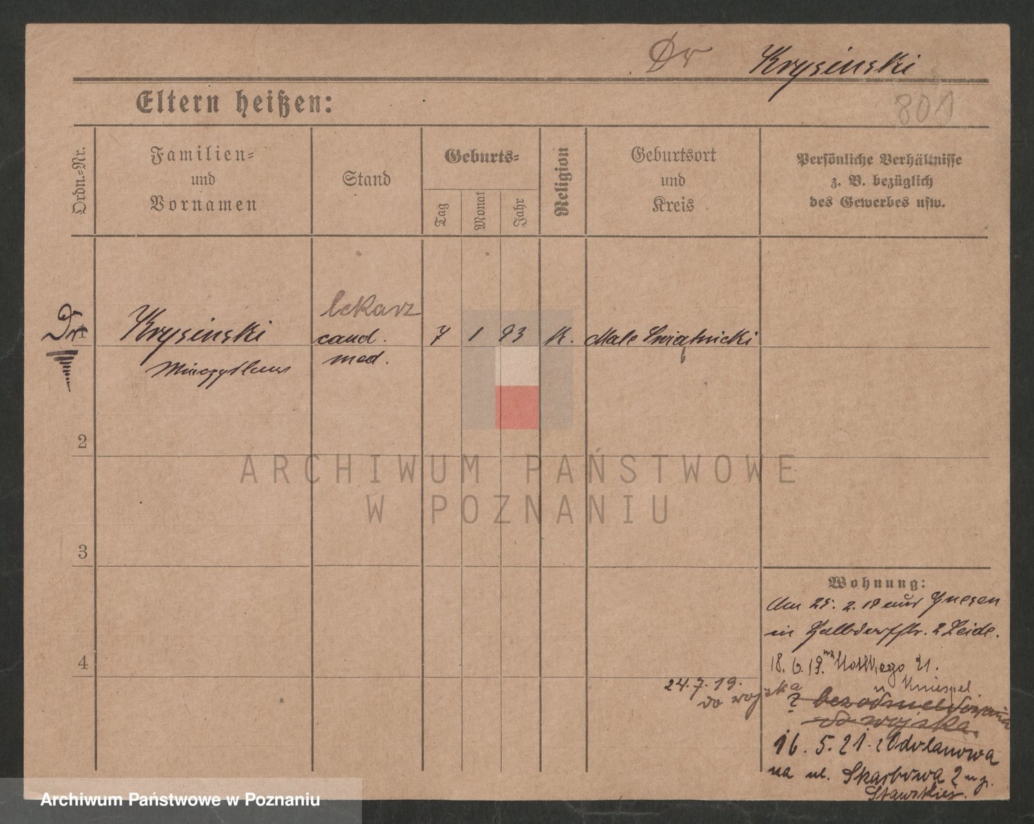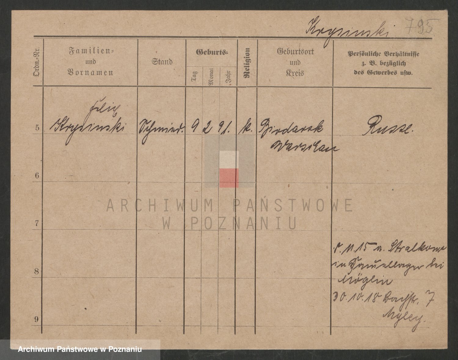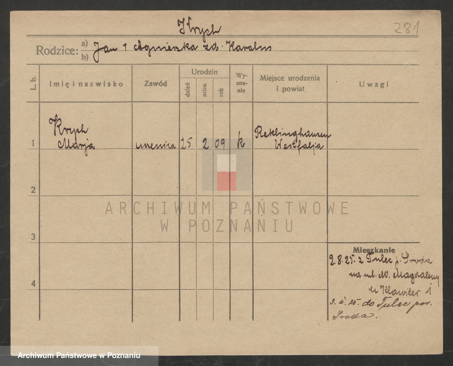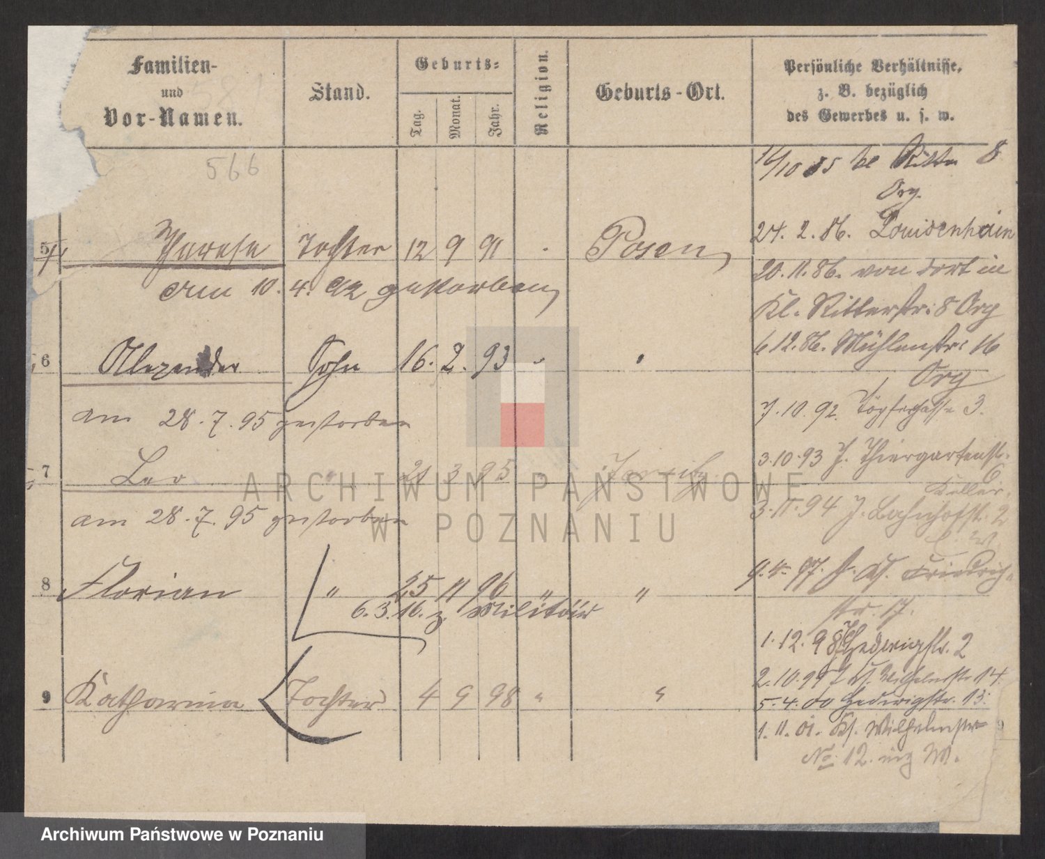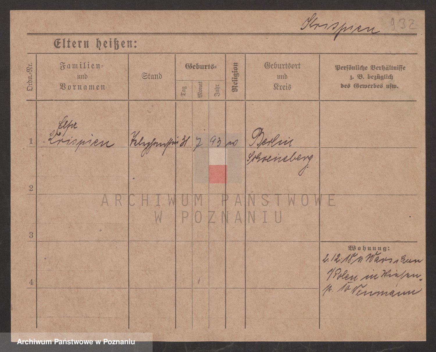 Podgląd karty osobowej dostępny jest po kliknięciu na nazwisko lub ikonkę karty. Można dokonywać powiększenia (ikony na górze) lub przechodzić między kolejnymi skanami (strzałki po bokach).