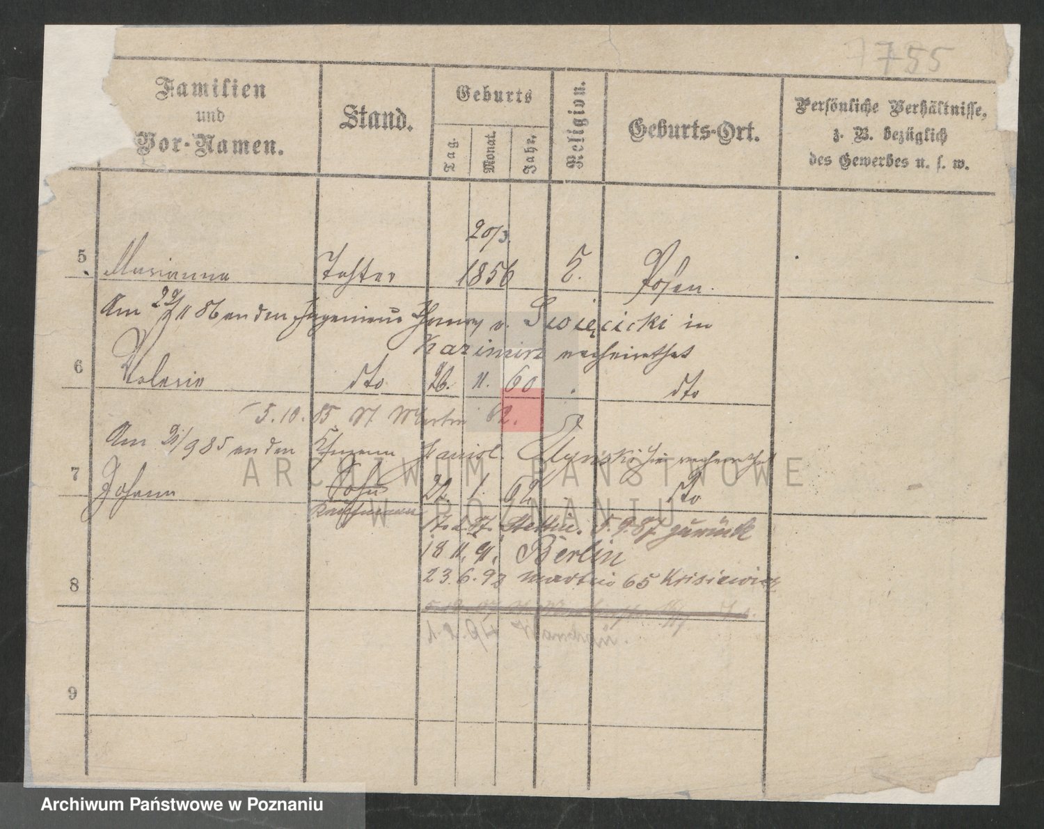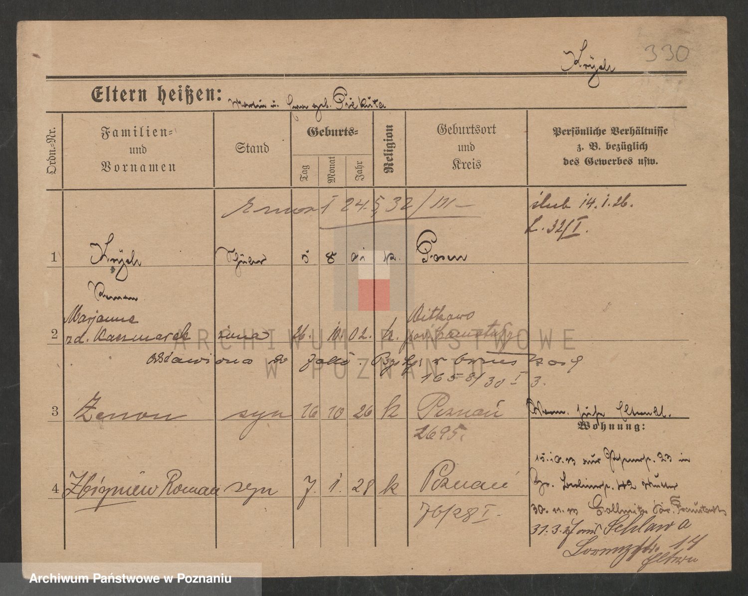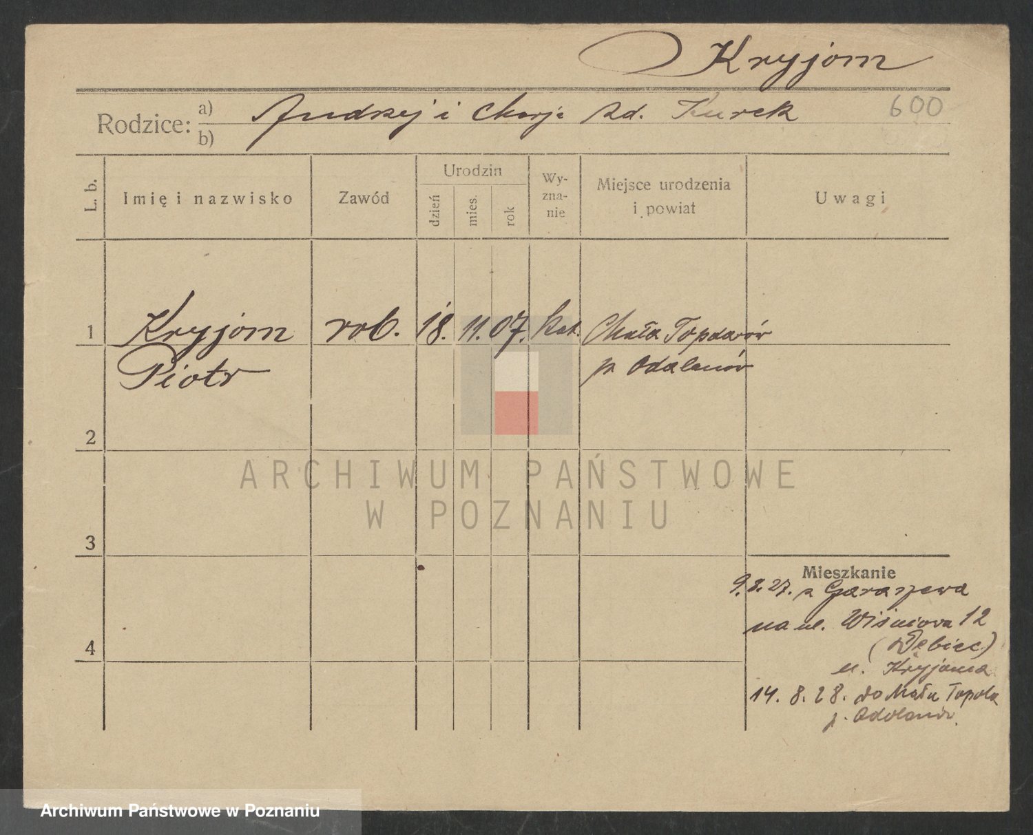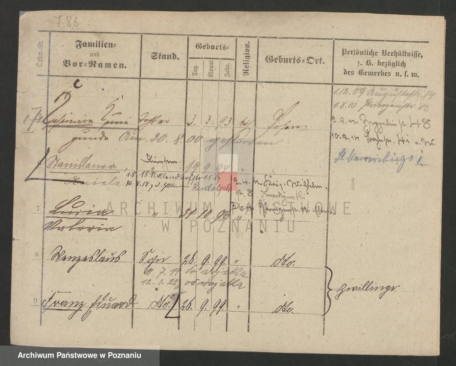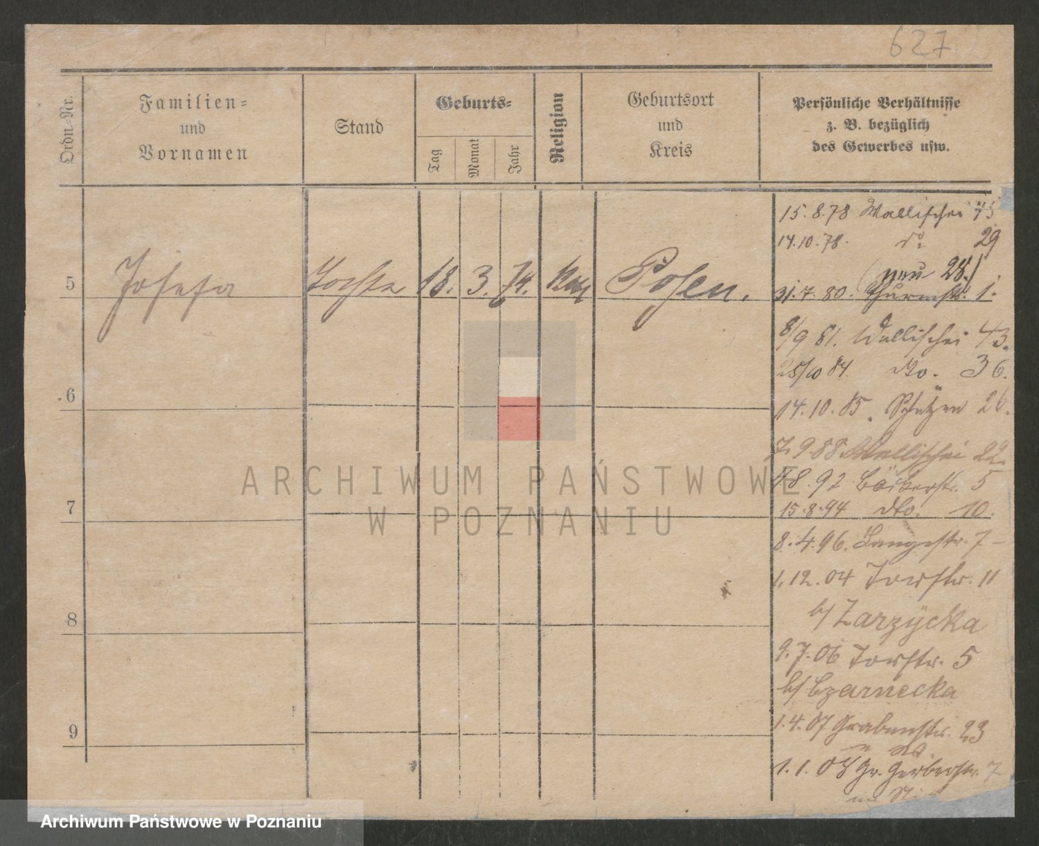 Podgląd karty osobowej dostępny jest po kliknięciu na nazwisko lub ikonkę karty. Można dokonywać powiększenia (ikony na górze) lub przechodzić między kolejnymi skanami (strzałki po bokach).