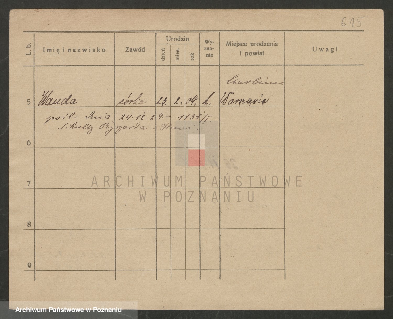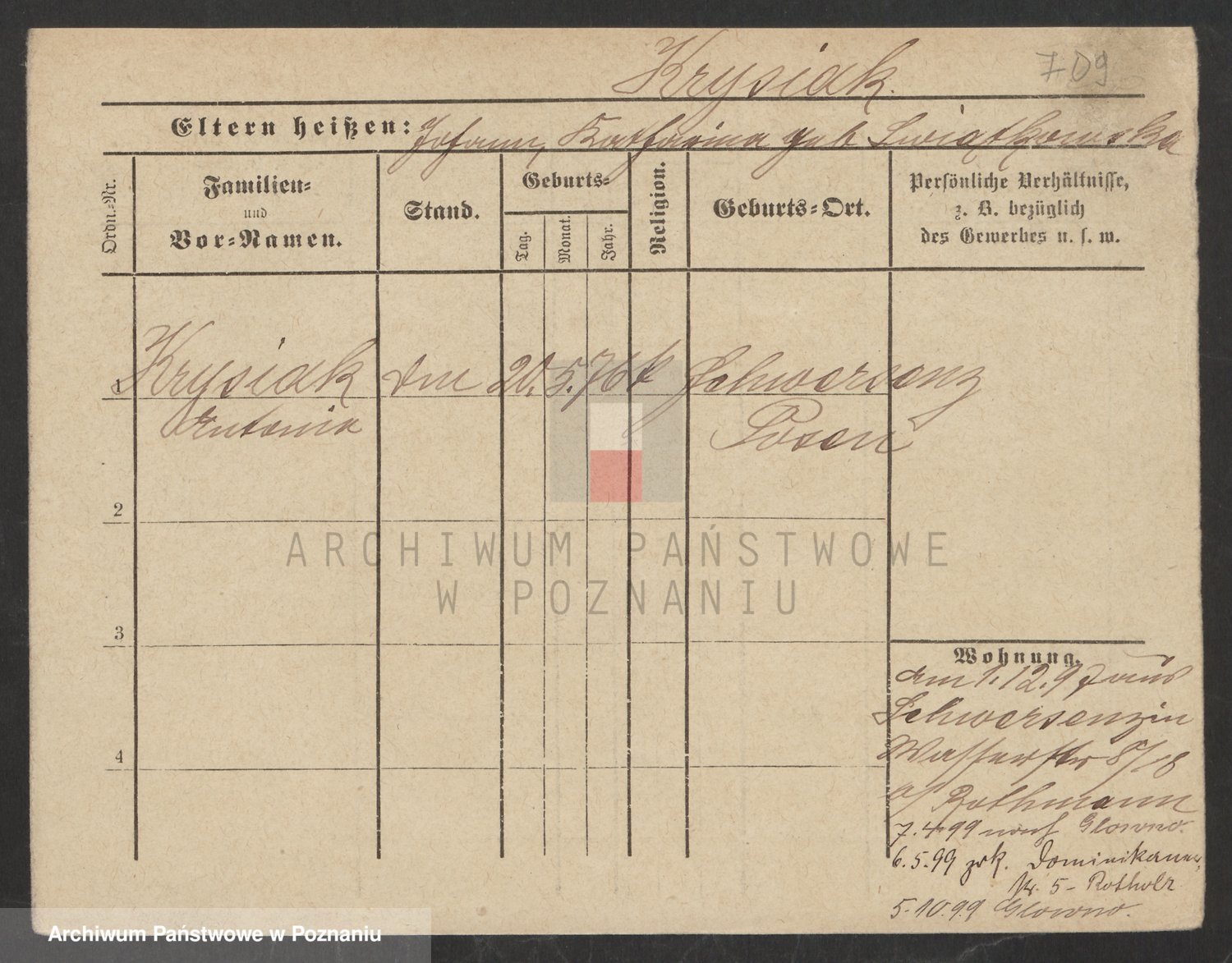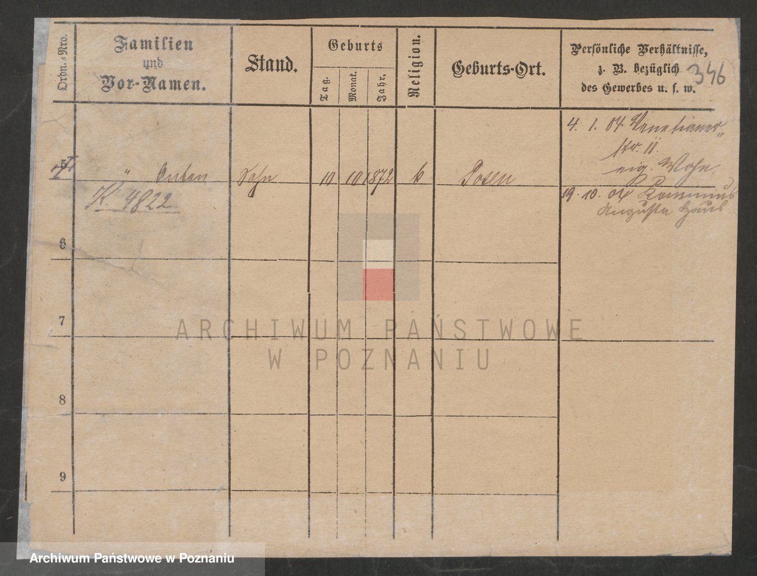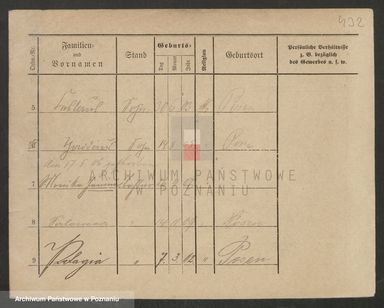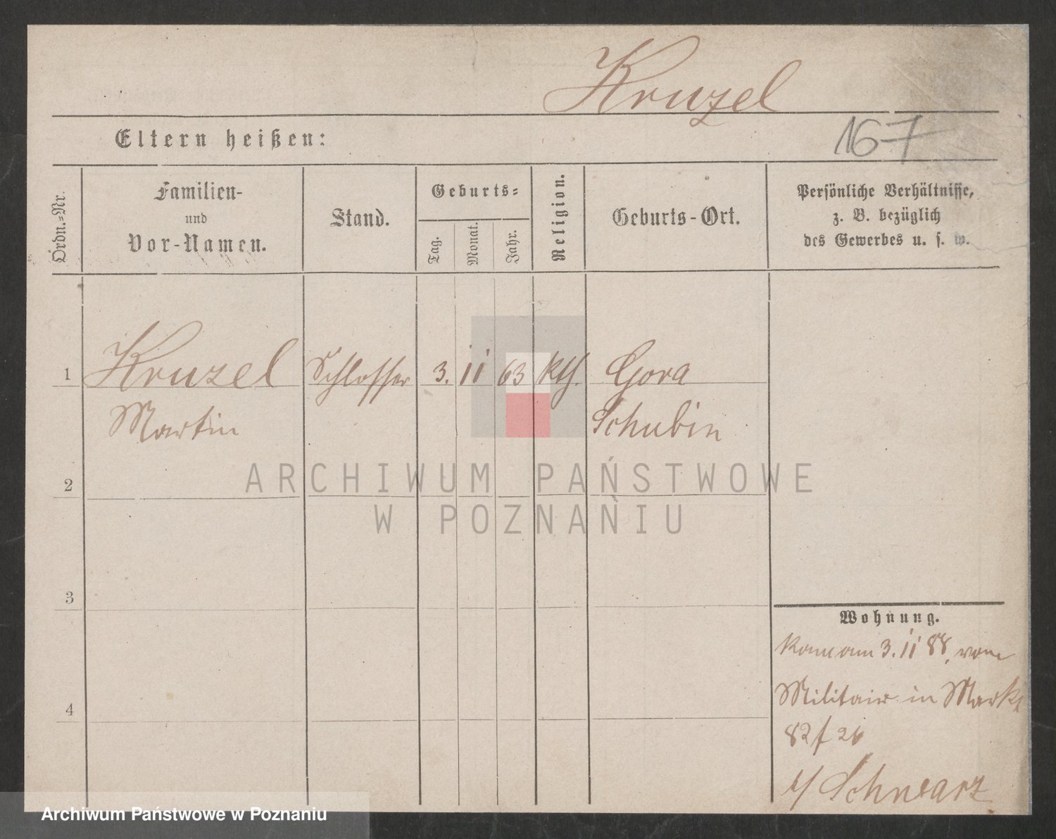 Podgląd karty osobowej dostępny jest po kliknięciu na nazwisko lub ikonkę karty. Można dokonywać powiększenia (ikony na górze) lub przechodzić między kolejnymi skanami (strzałki po bokach).