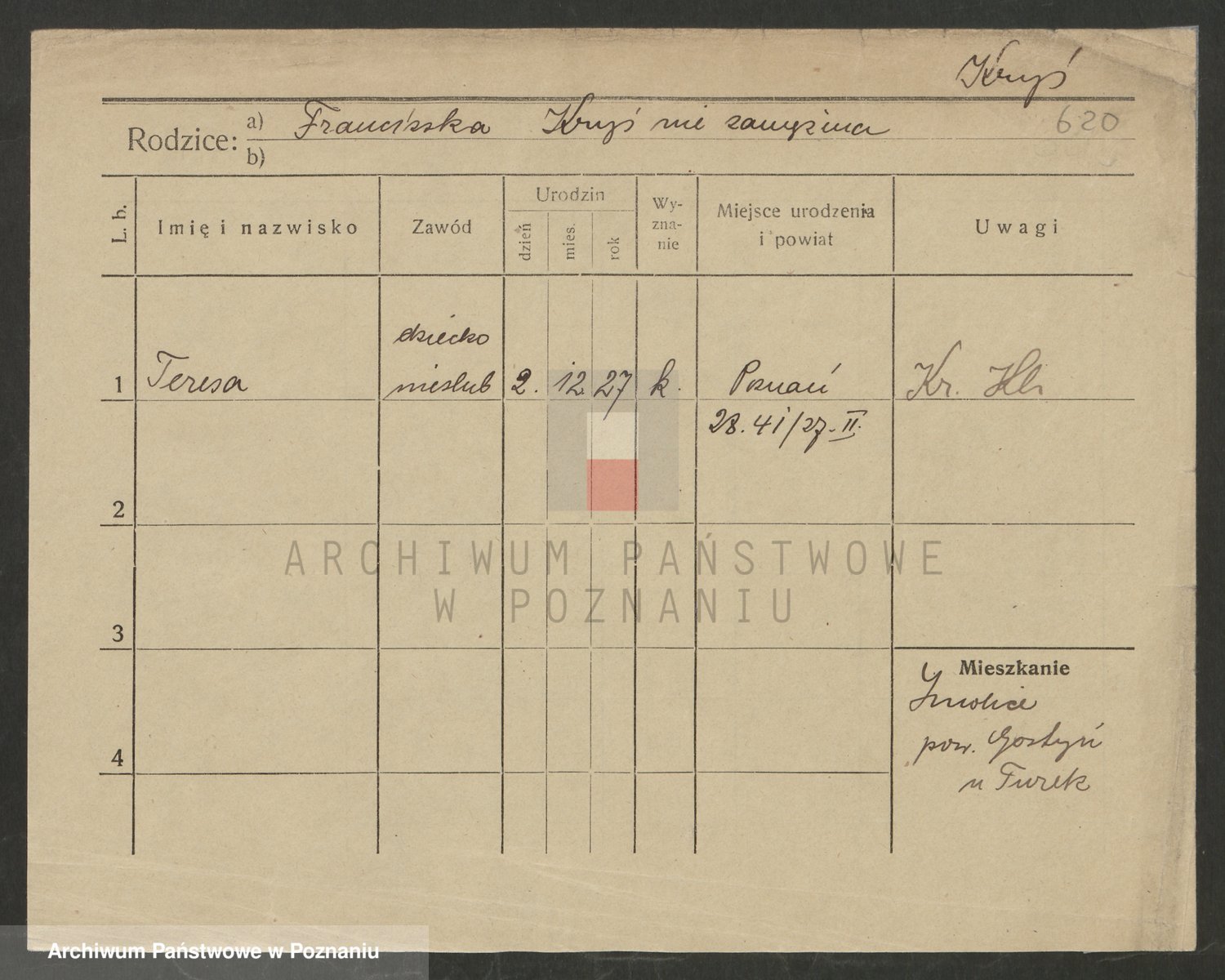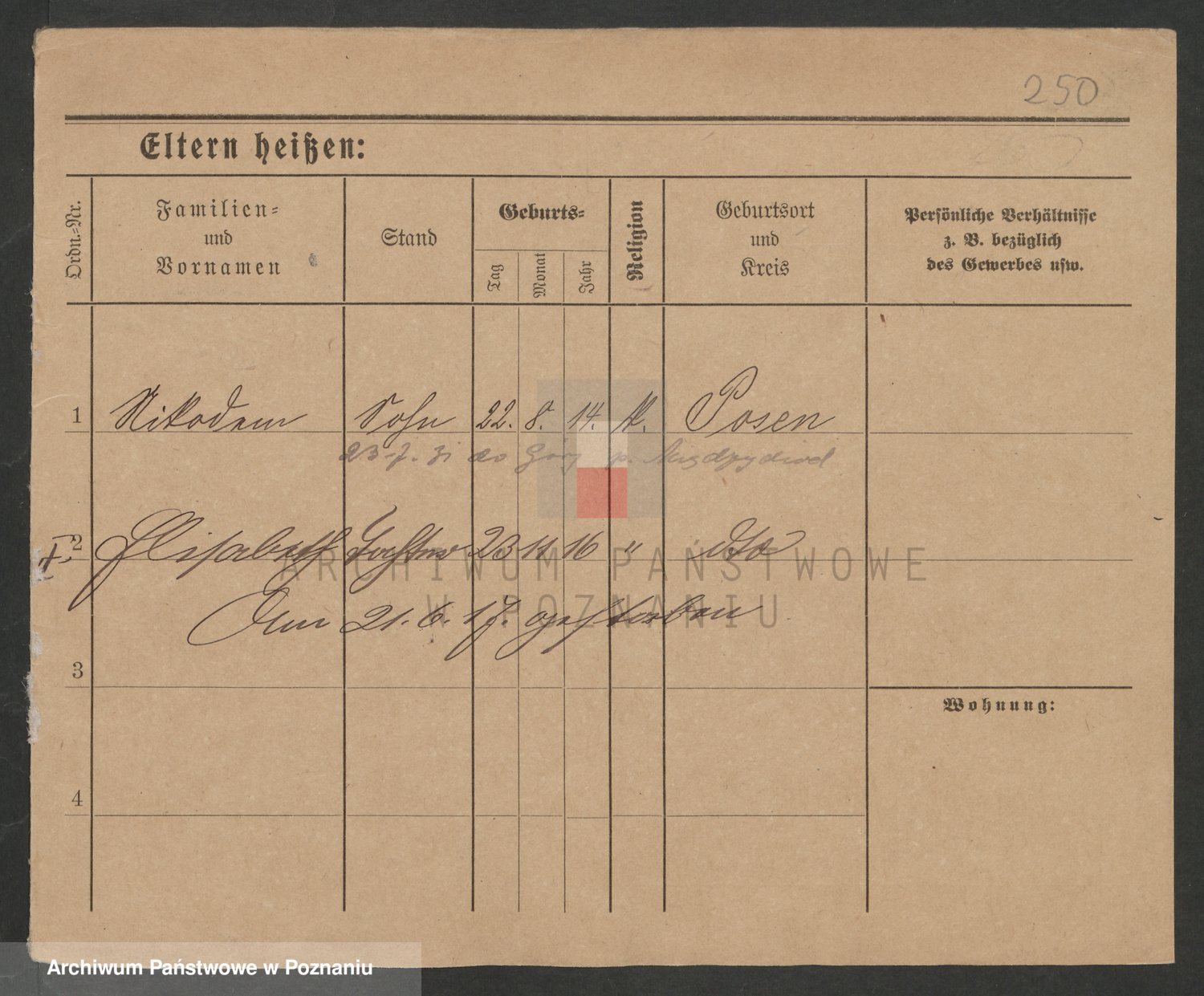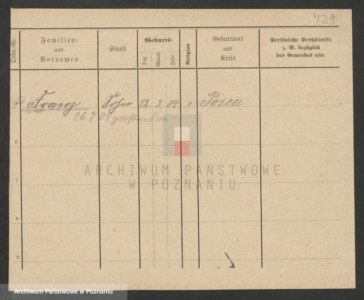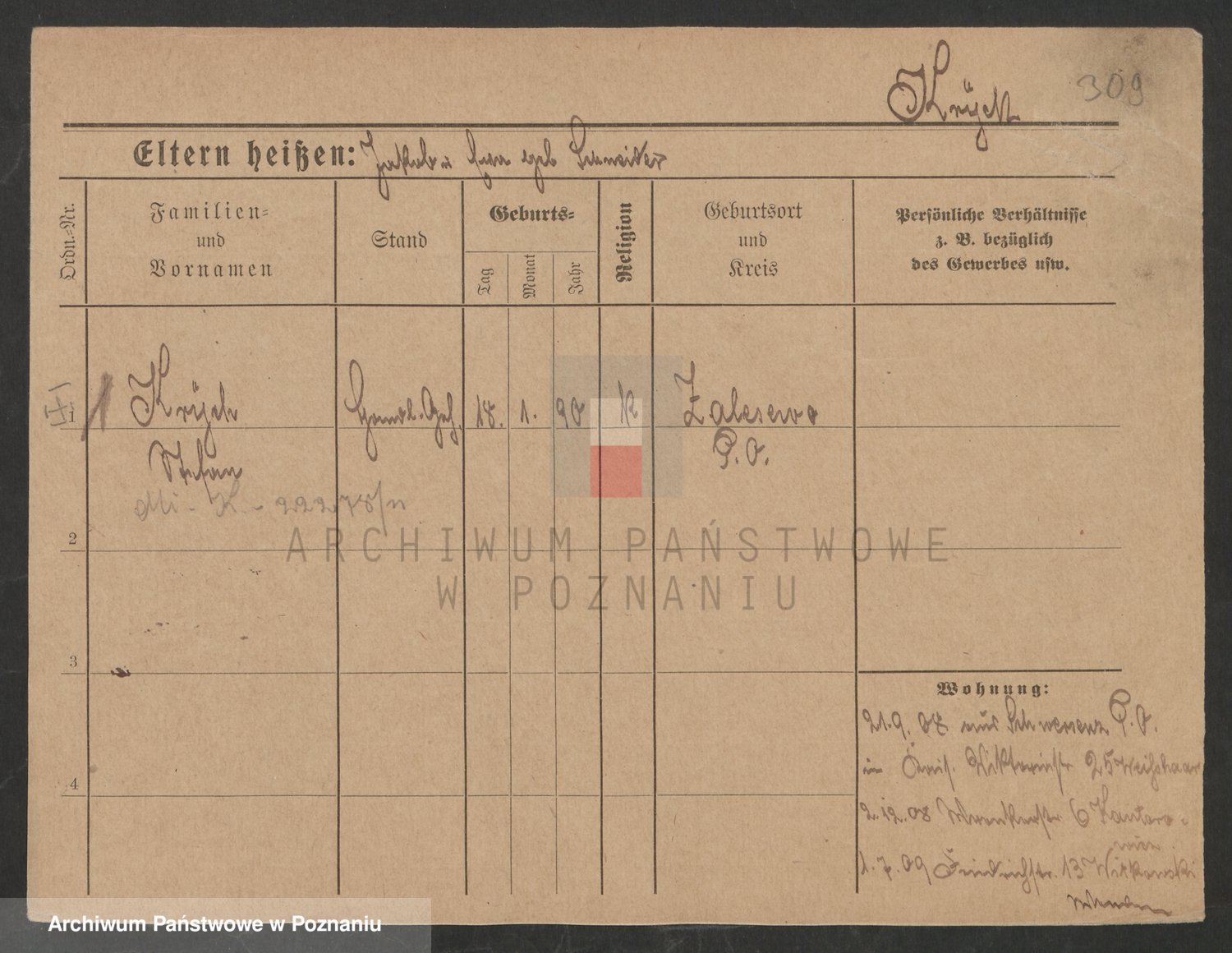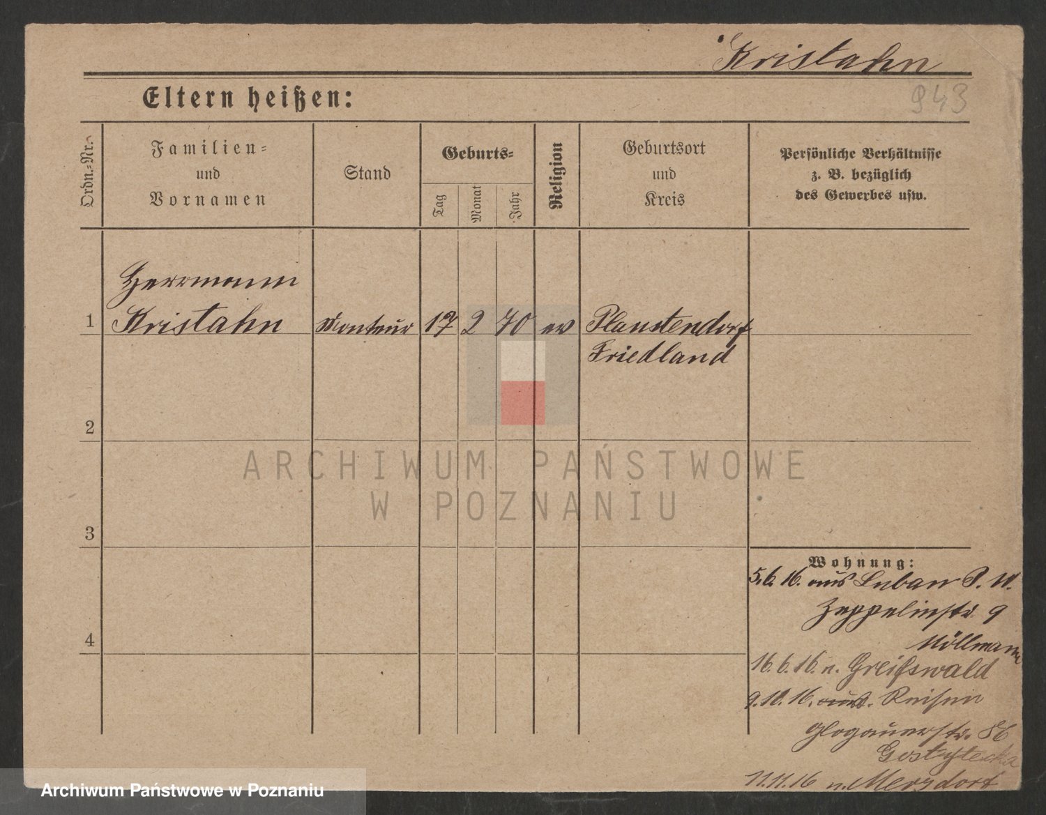 Podgląd karty osobowej dostępny jest po kliknięciu na nazwisko lub ikonkę karty. Można dokonywać powiększenia (ikony na górze) lub przechodzić między kolejnymi skanami (strzałki po bokach).