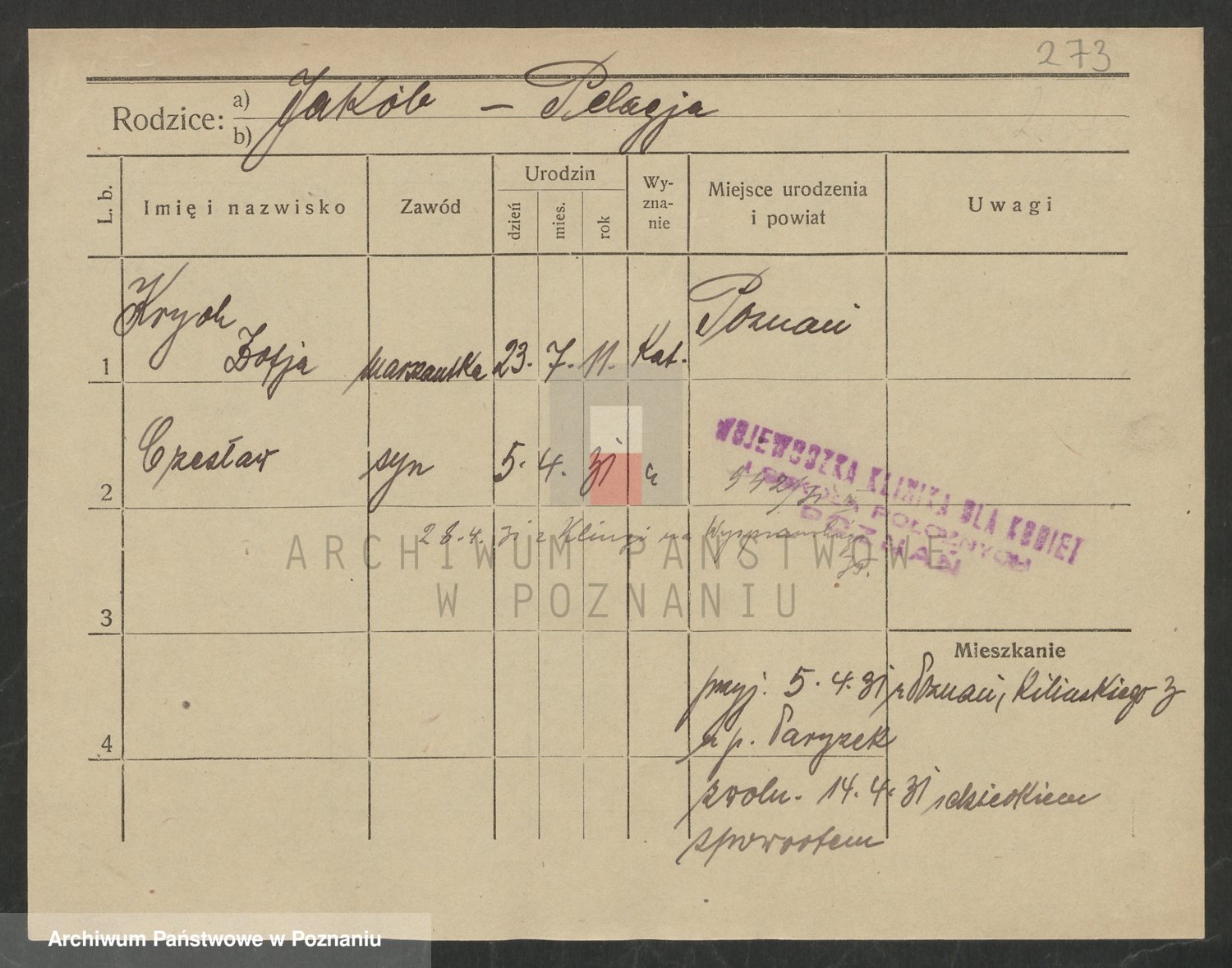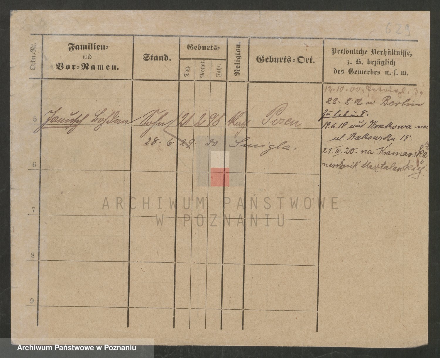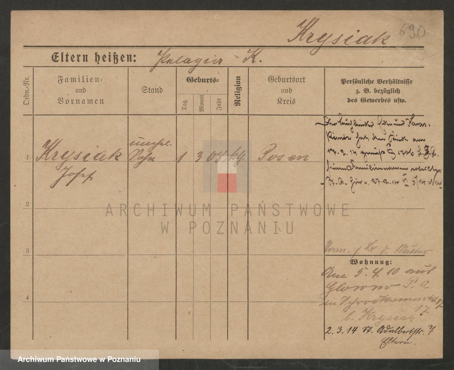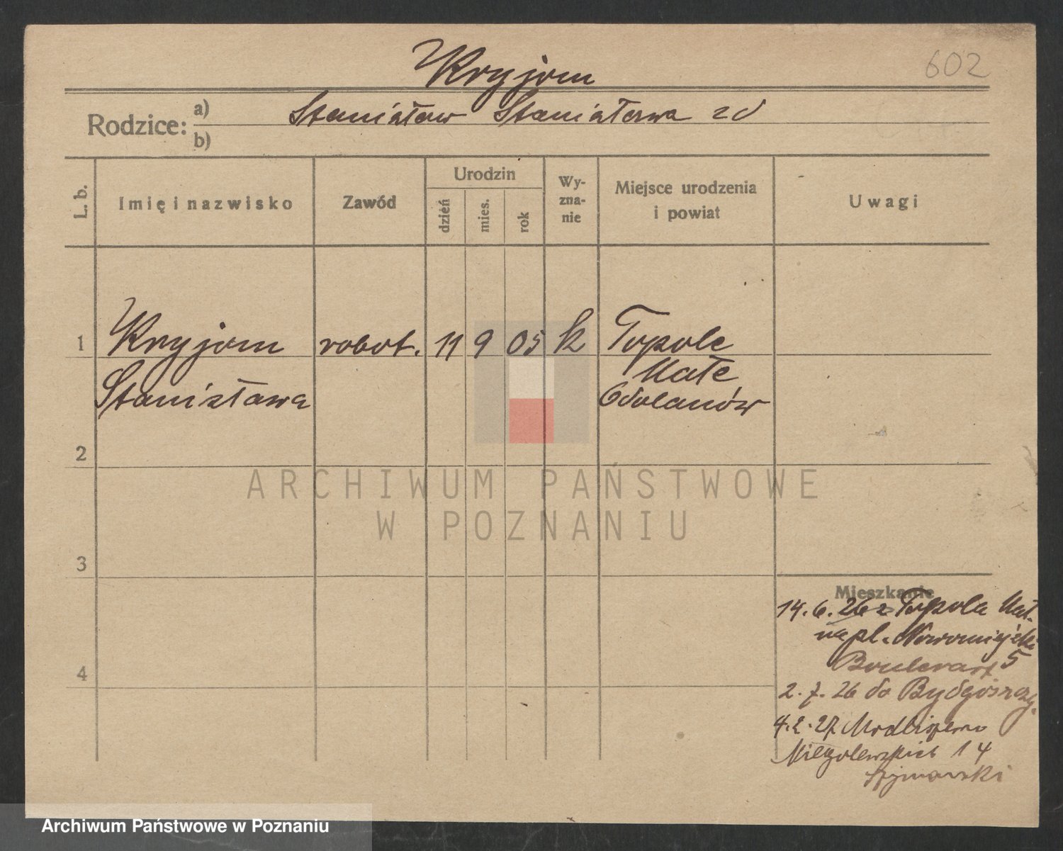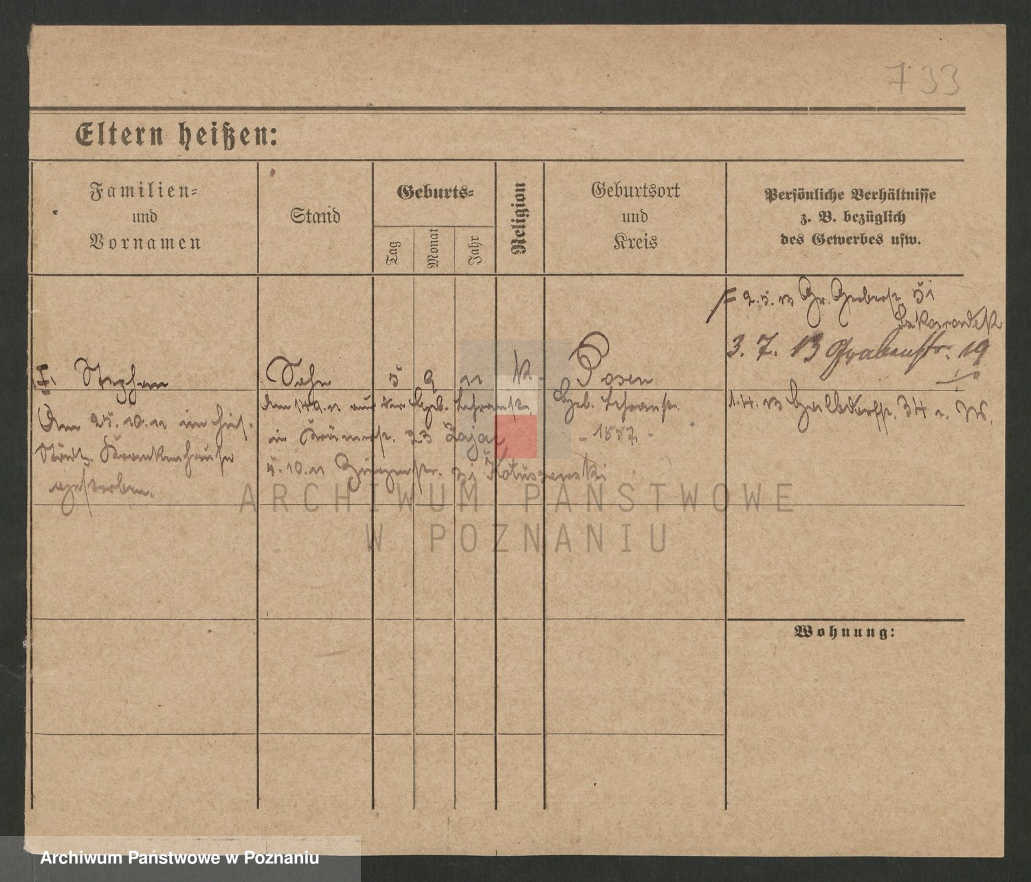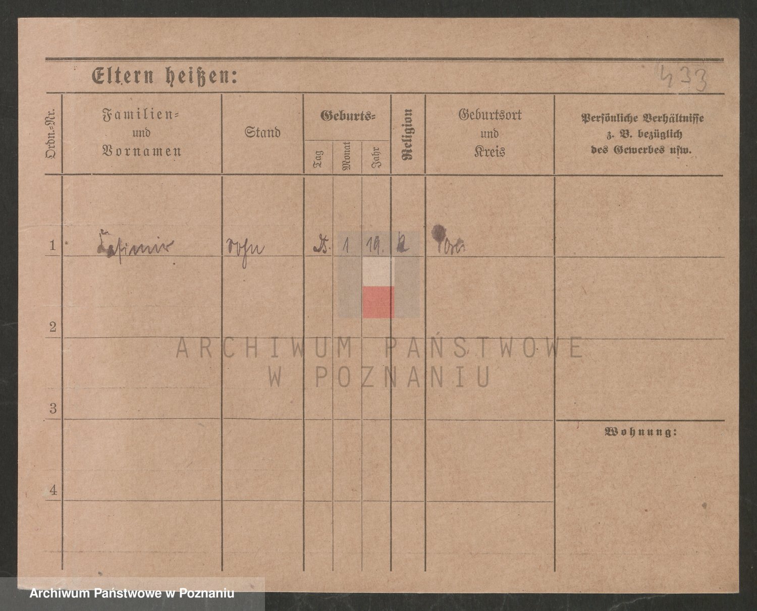 Podgląd karty osobowej dostępny jest po kliknięciu na nazwisko lub ikonkę karty. Można dokonywać powiększenia (ikony na górze) lub przechodzić między kolejnymi skanami (strzałki po bokach).