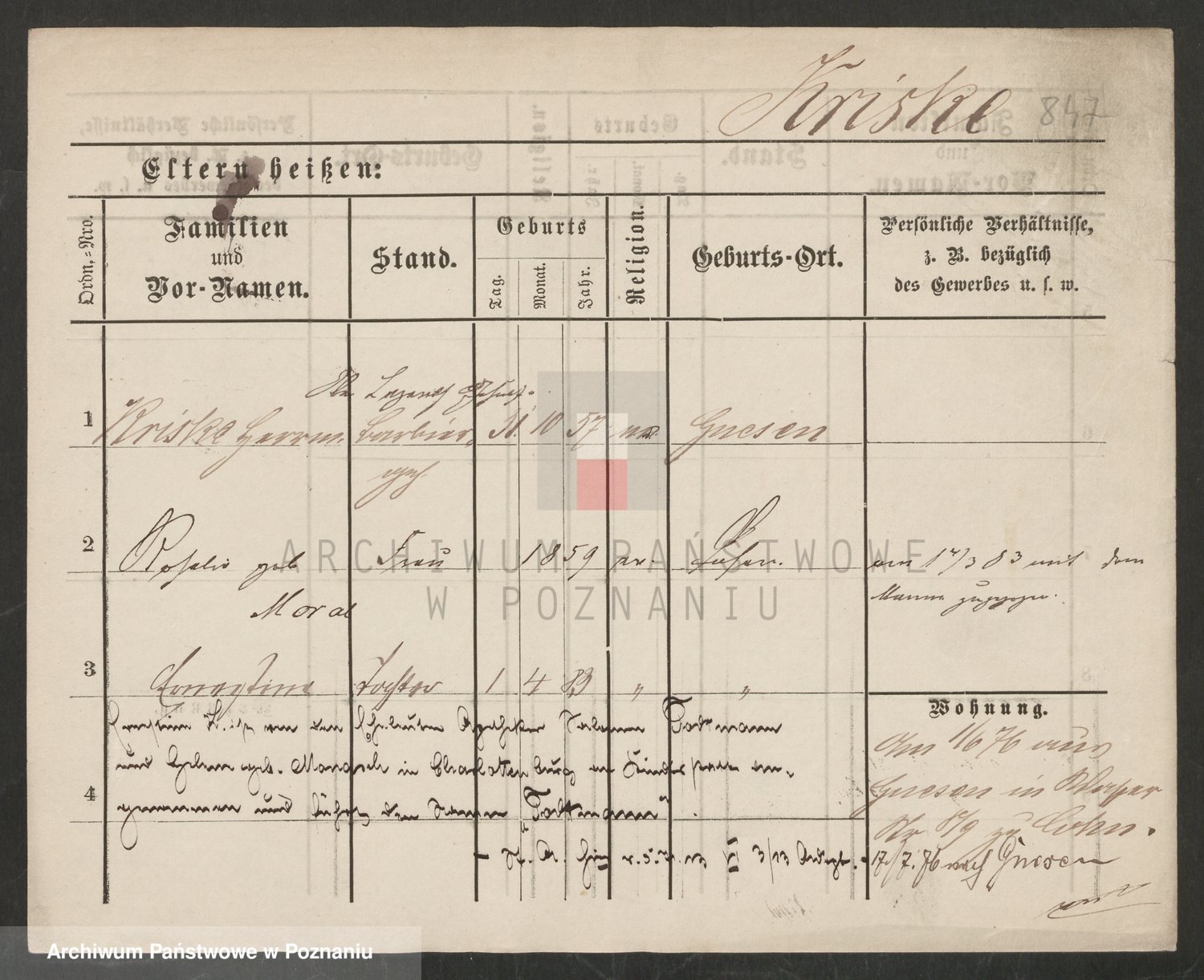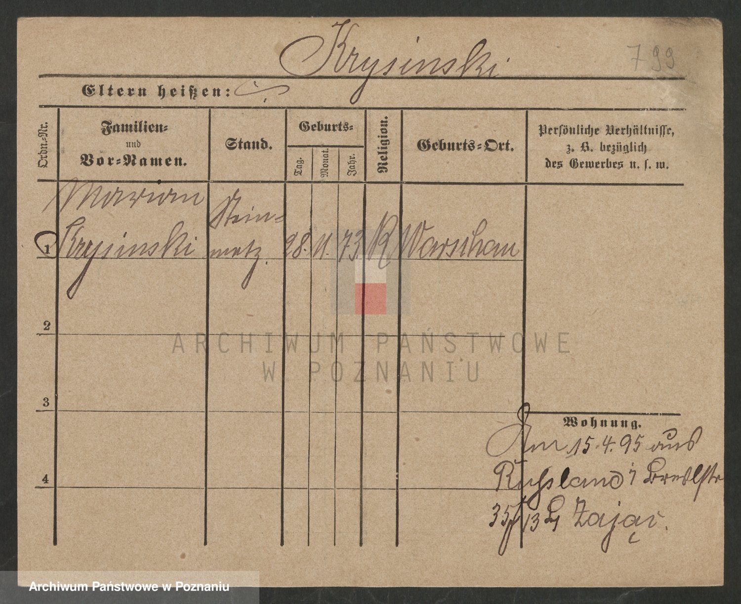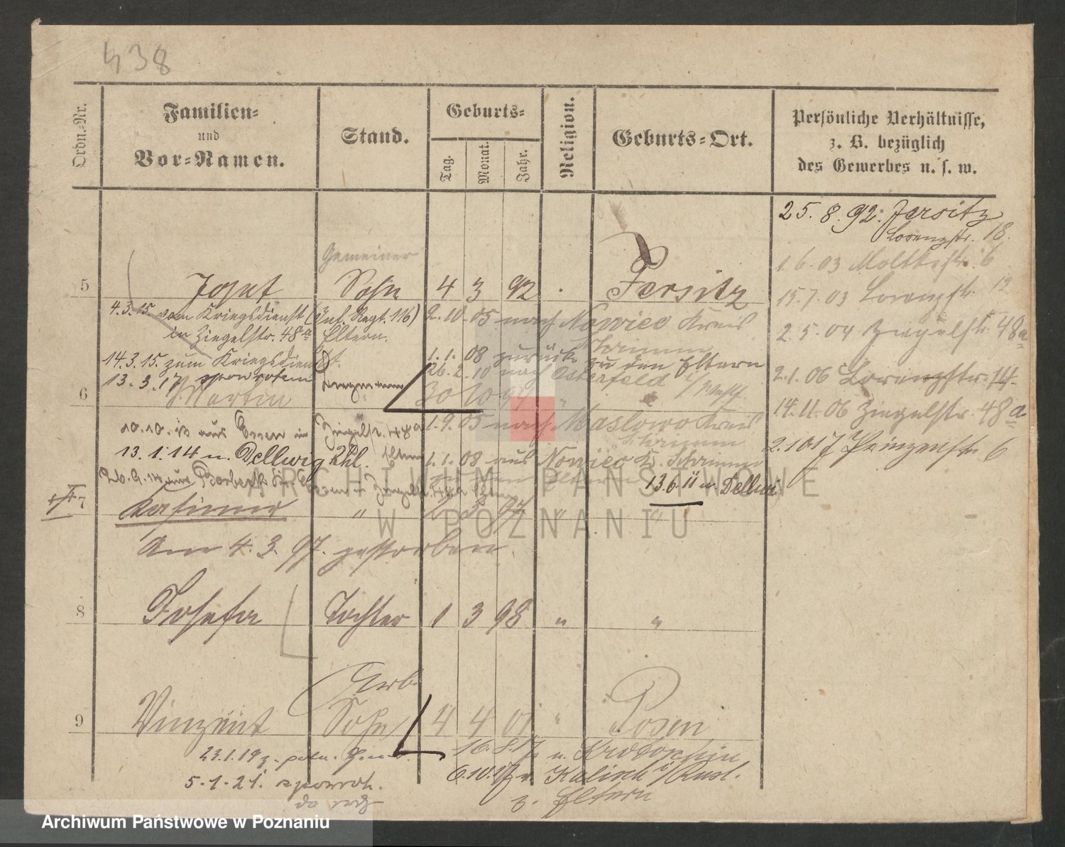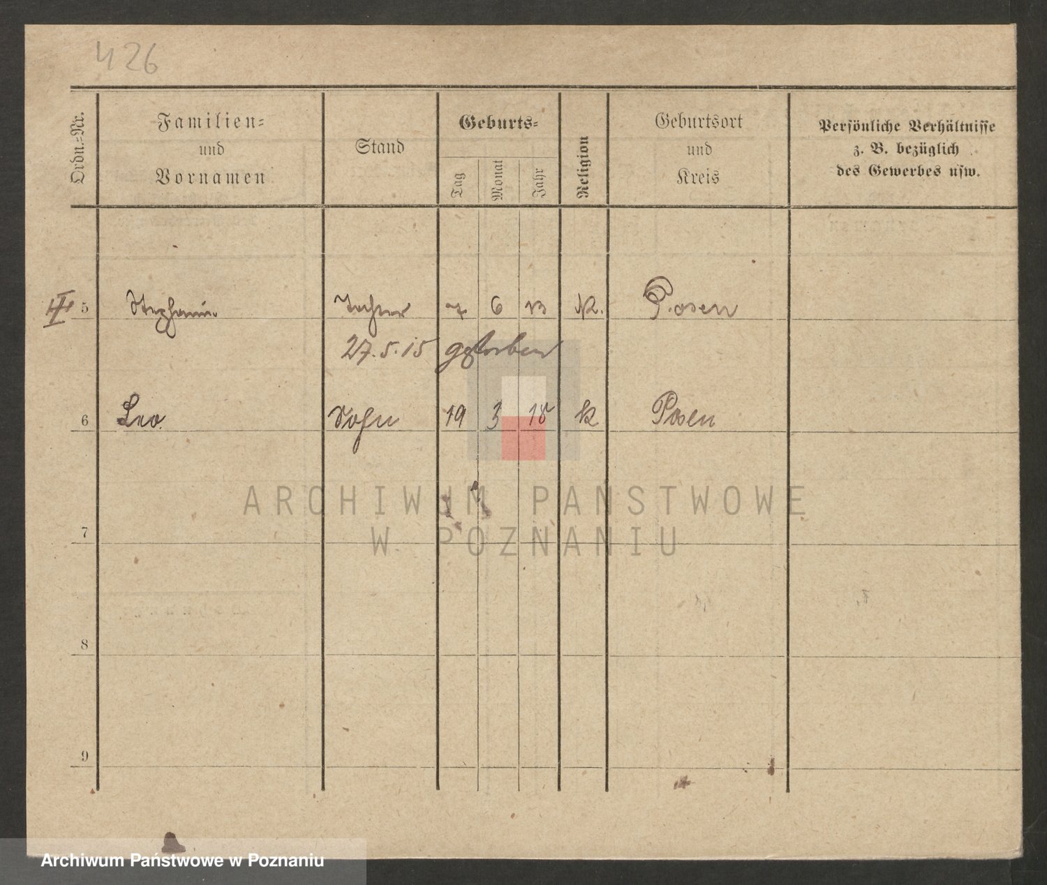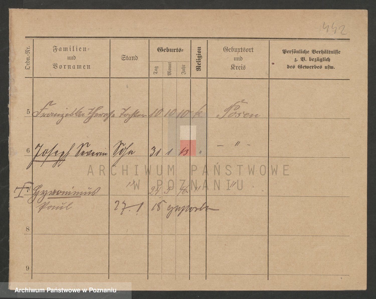 Podgląd karty osobowej dostępny jest po kliknięciu na nazwisko lub ikonkę karty. Można dokonywać powiększenia (ikony na górze) lub przechodzić między kolejnymi skanami (strzałki po bokach).