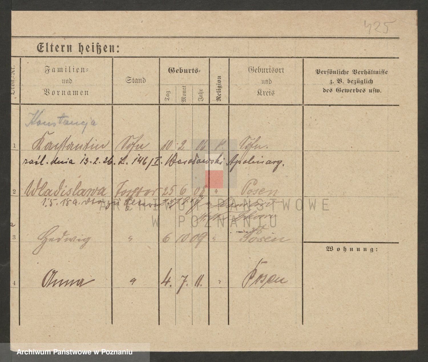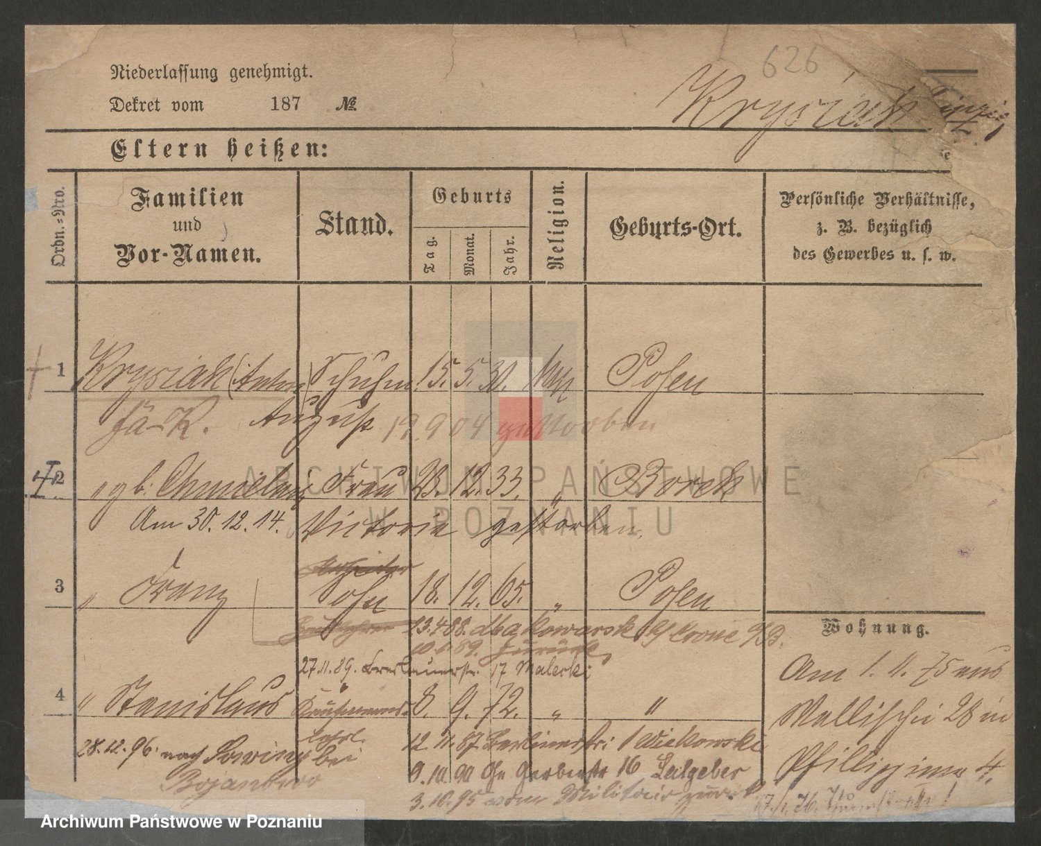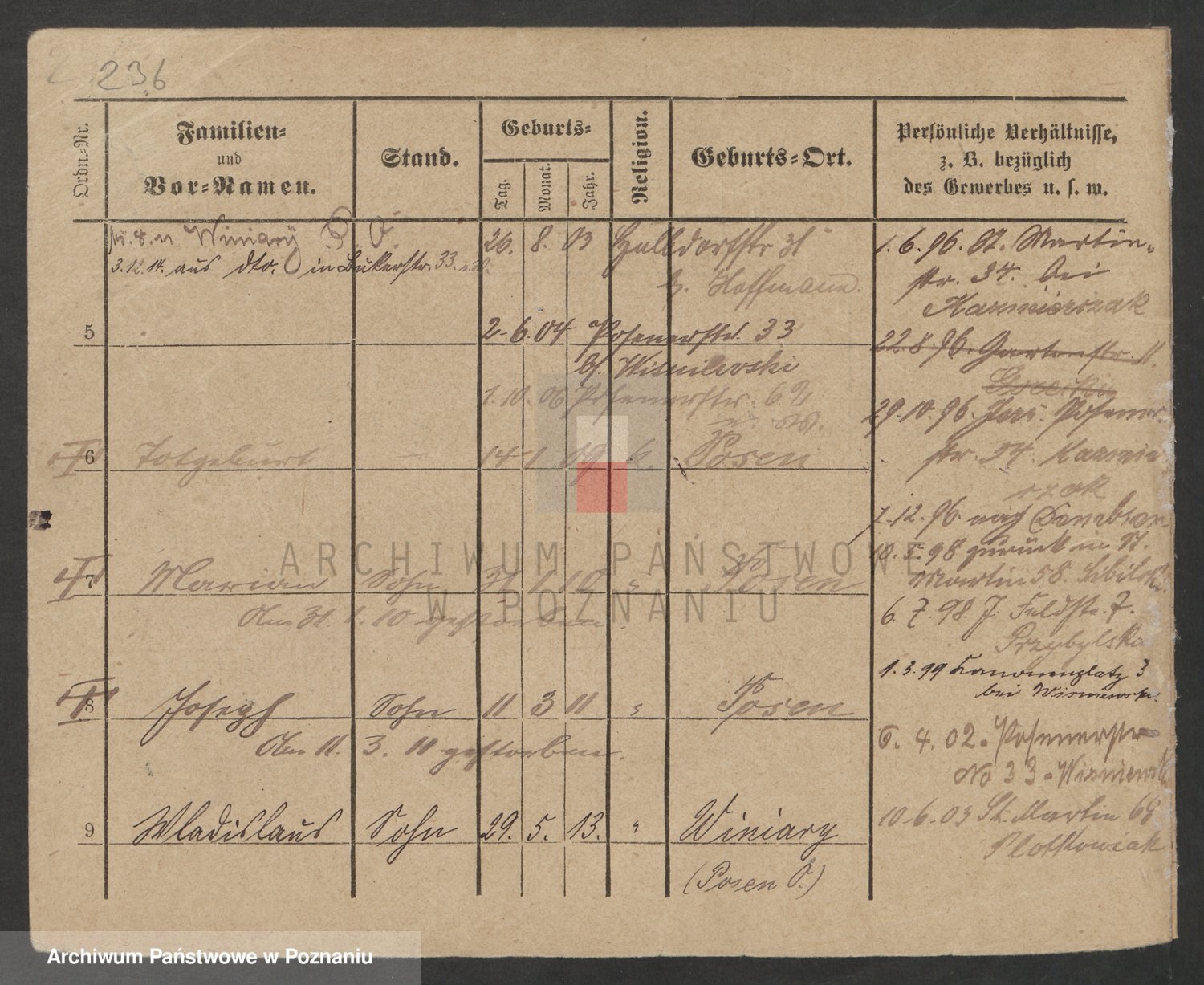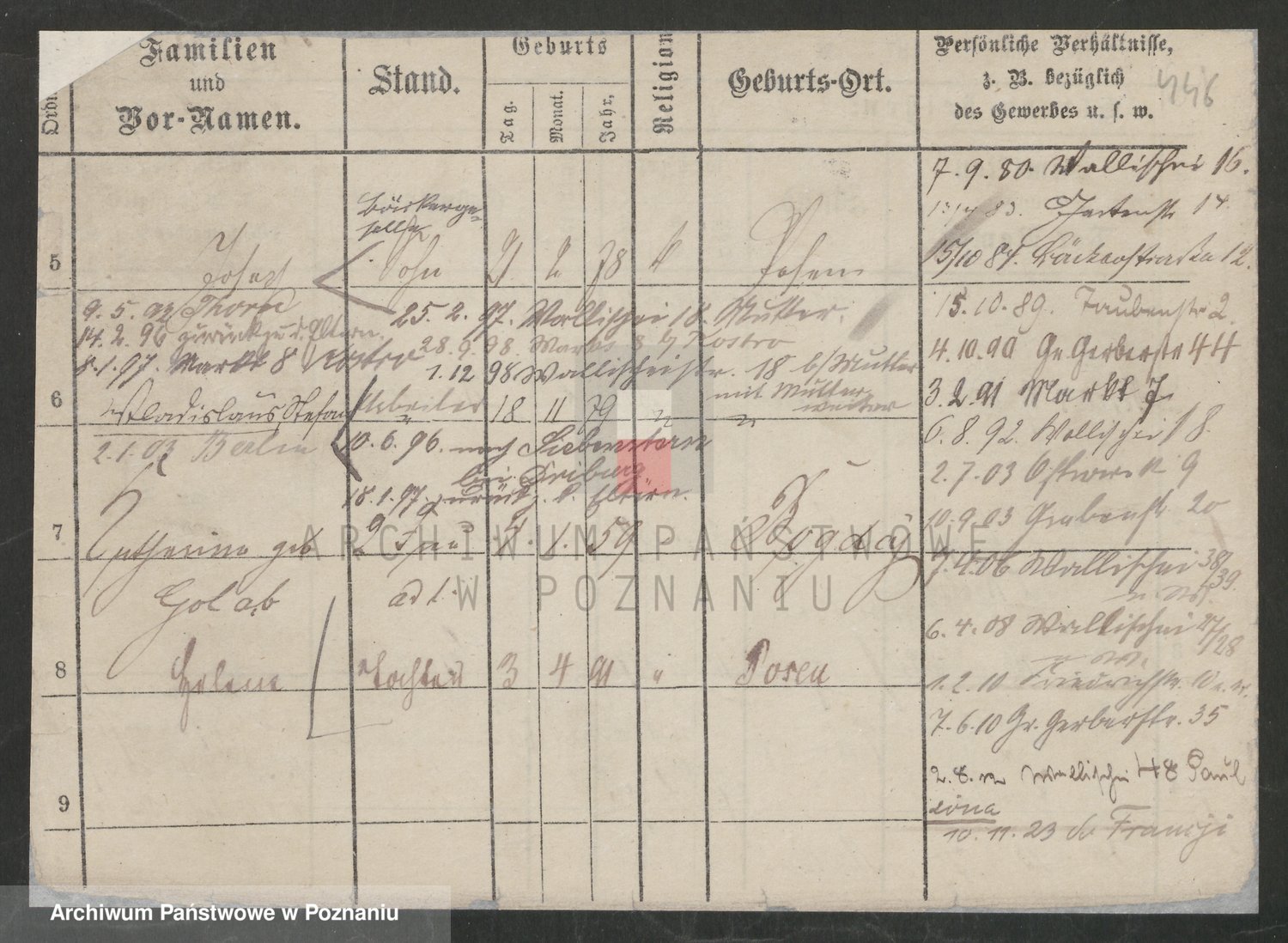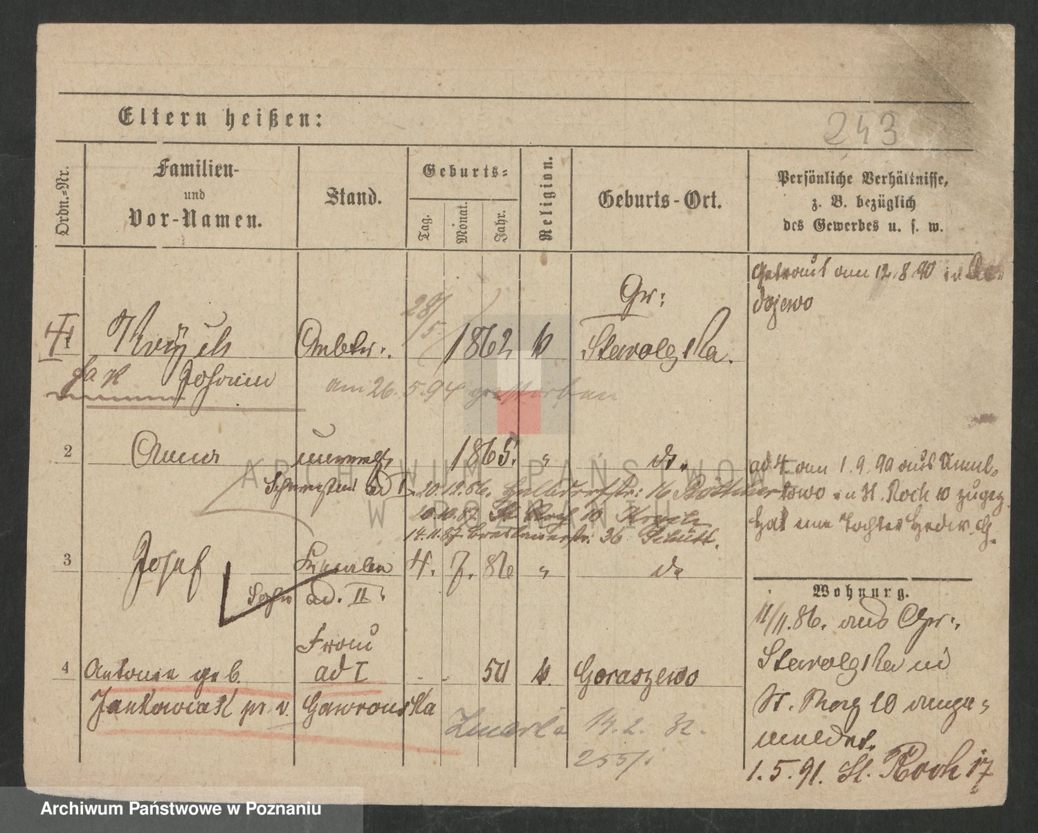 Podgląd karty osobowej dostępny jest po kliknięciu na nazwisko lub ikonkę karty. Można dokonywać powiększenia (ikony na górze) lub przechodzić między kolejnymi skanami (strzałki po bokach).