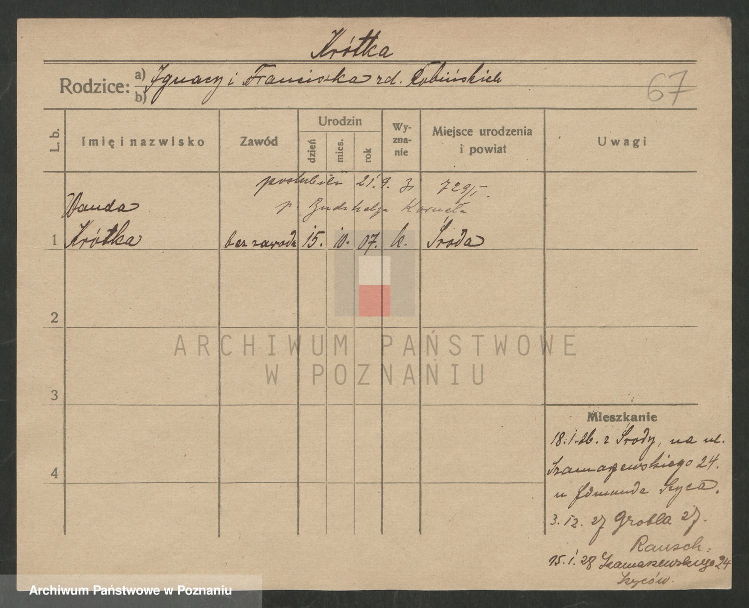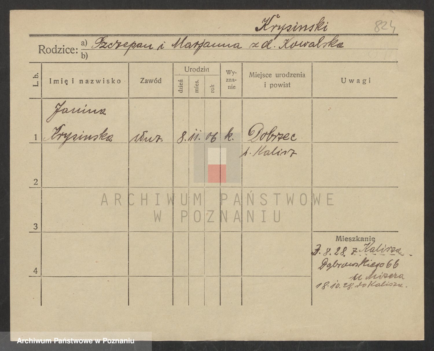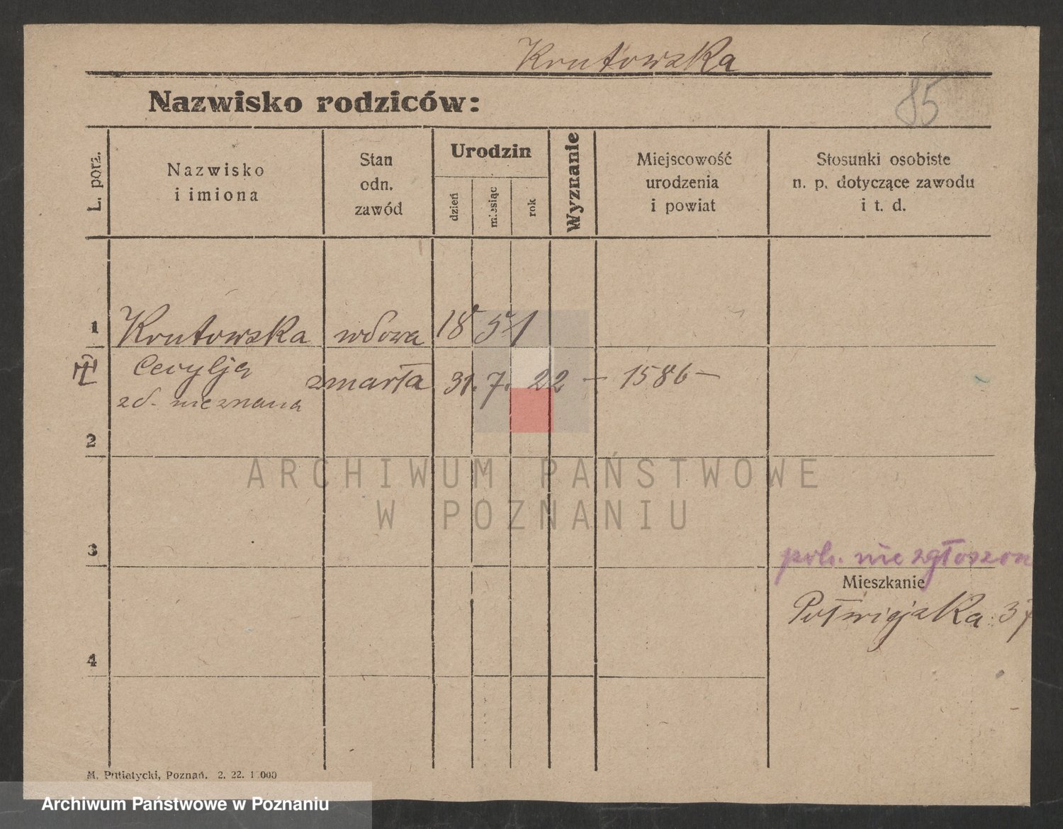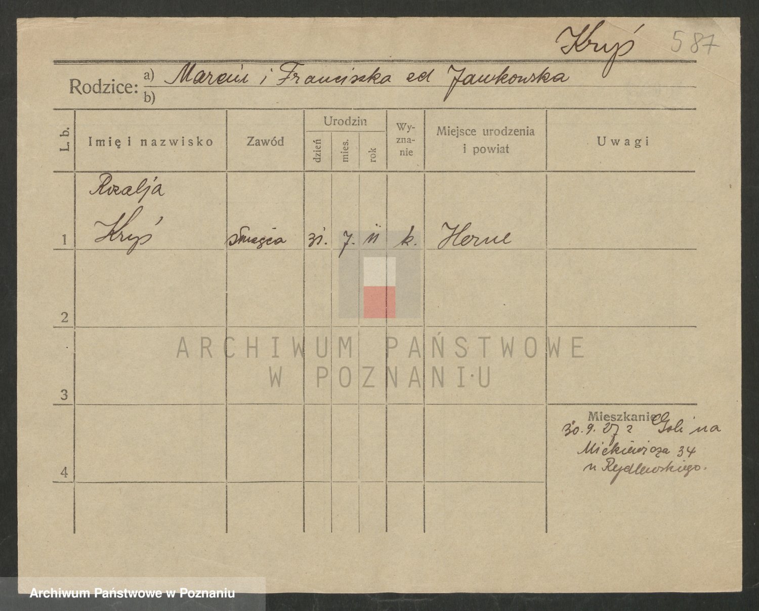 Krutki z d. Wolinska, Zofja