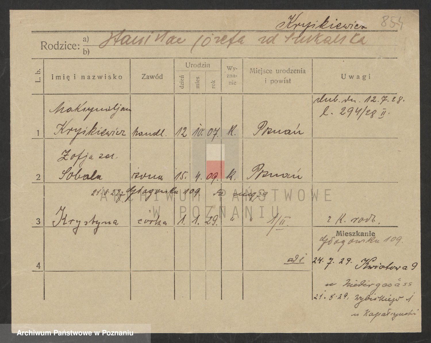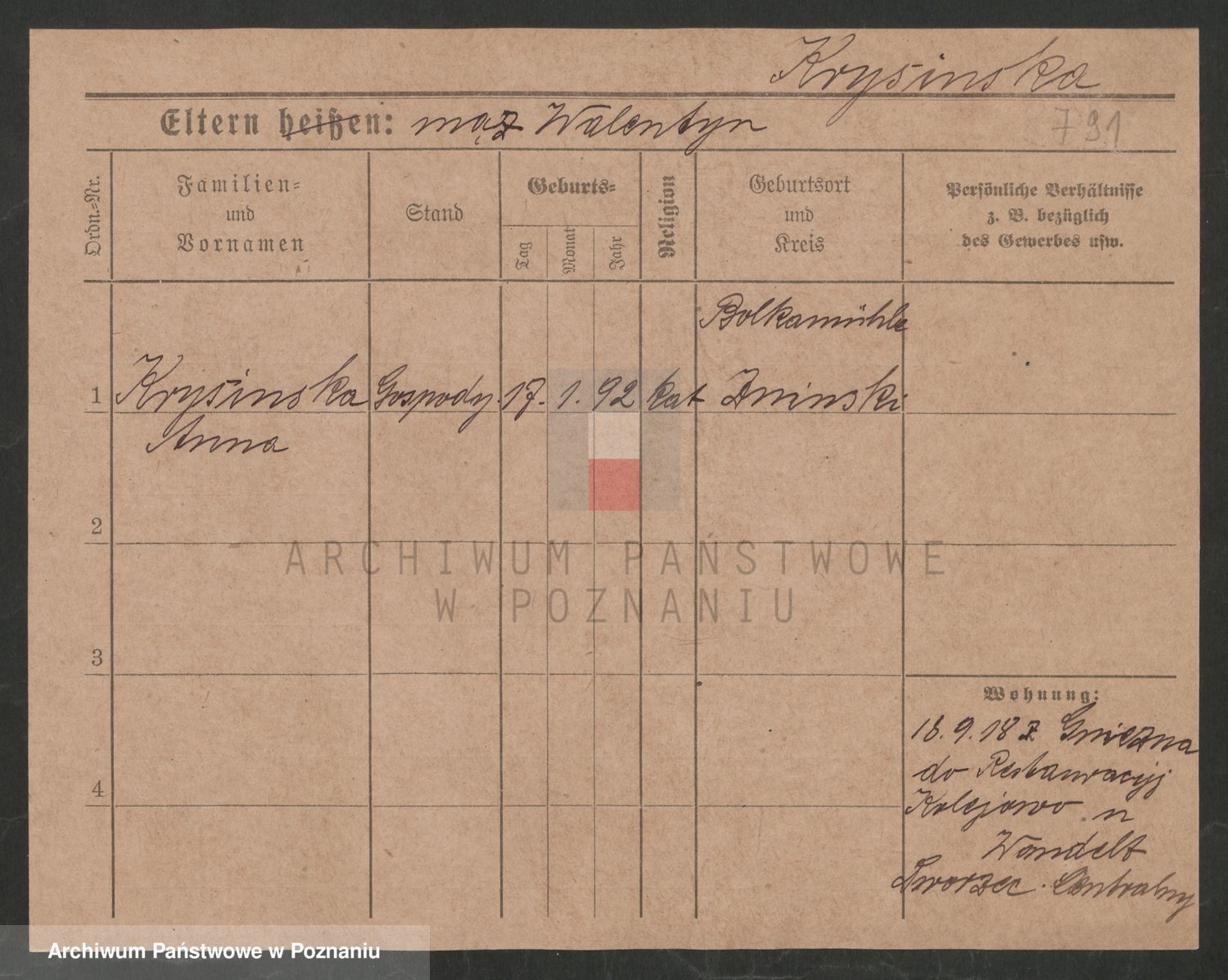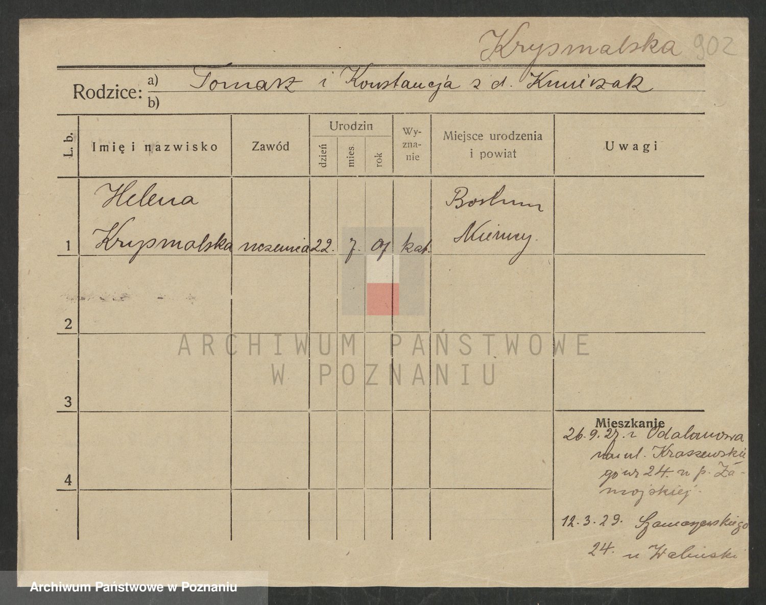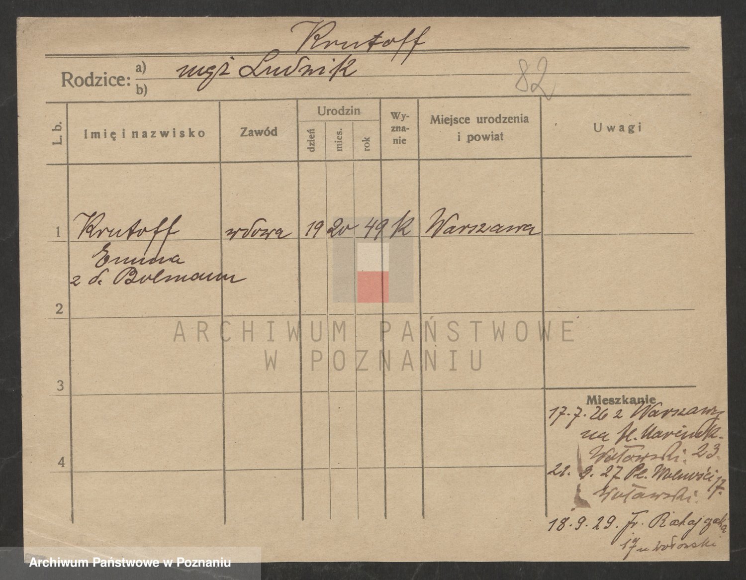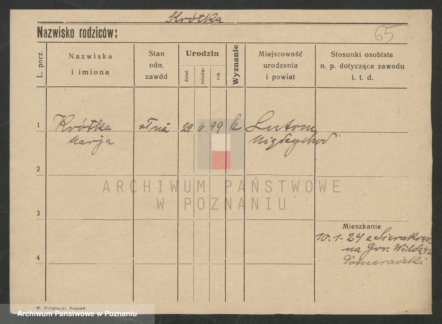 Krutki z d. Wolinska, Zofja