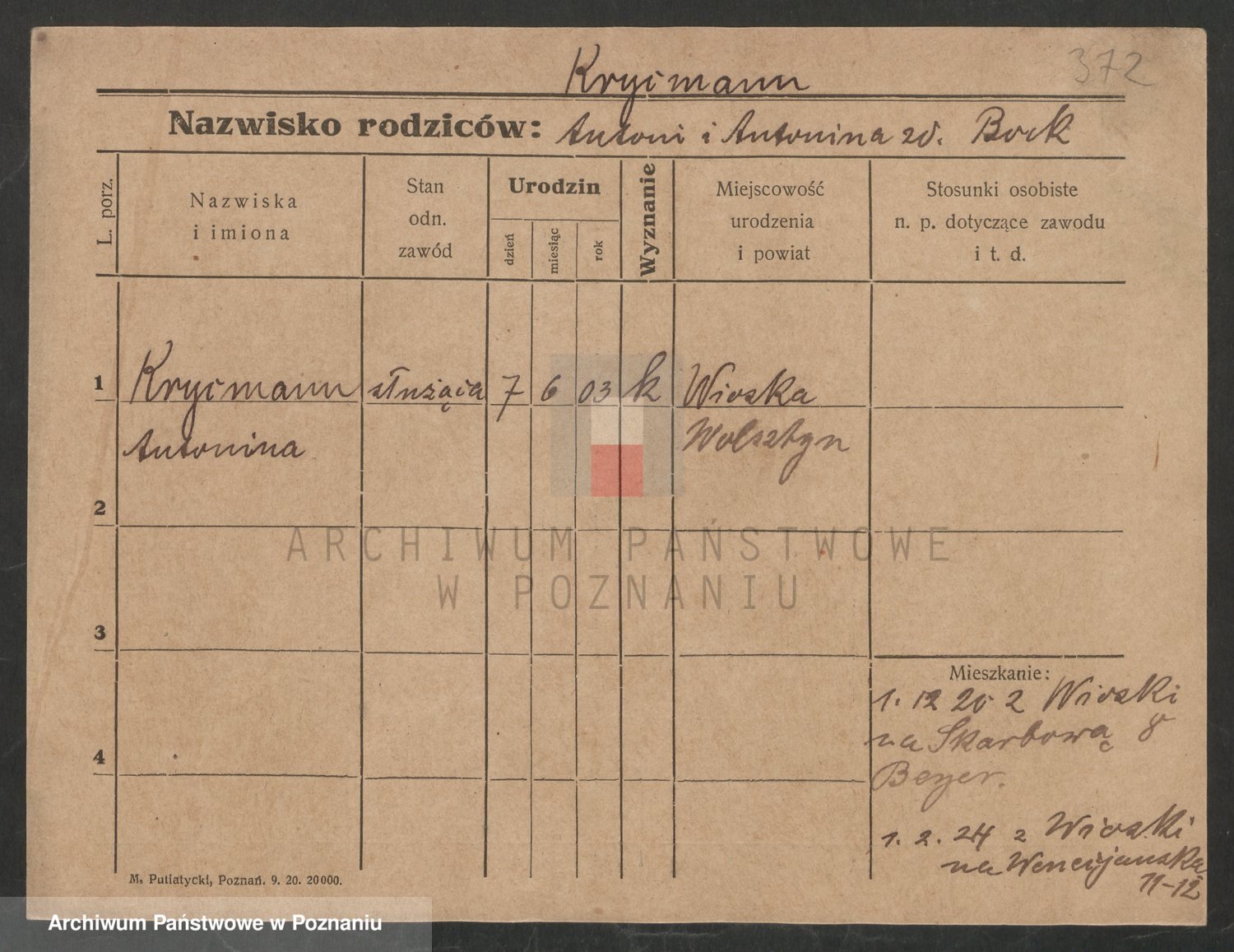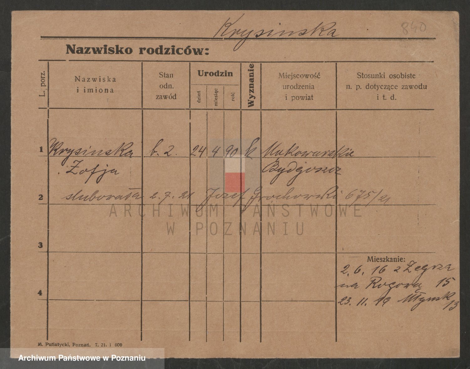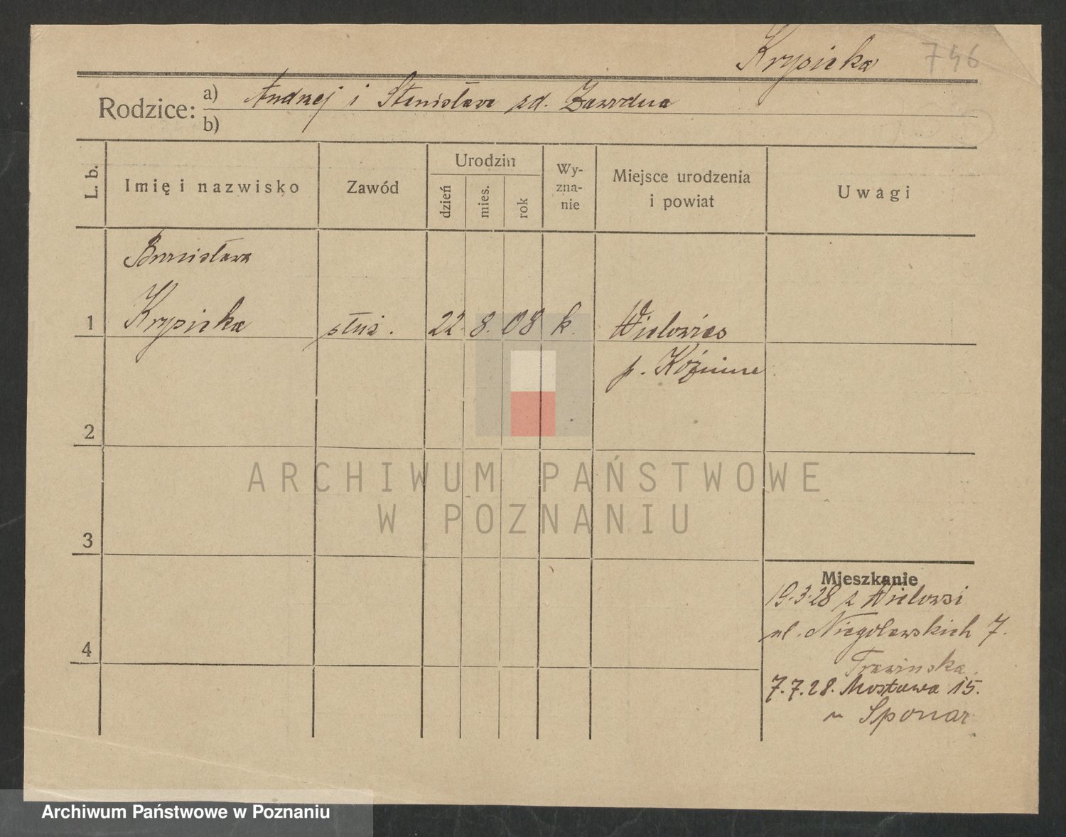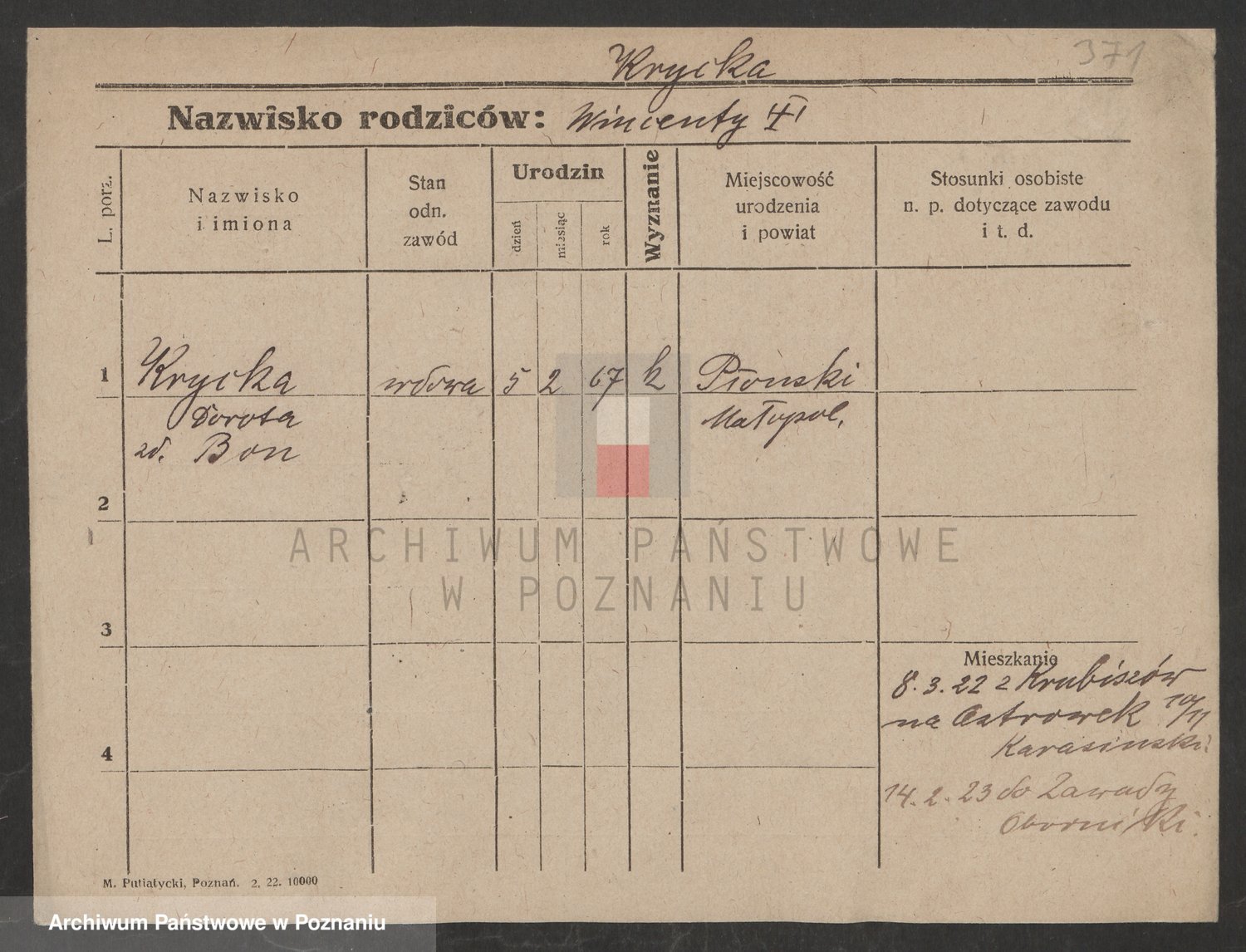 Krutki z d. Wolinska, Zofja