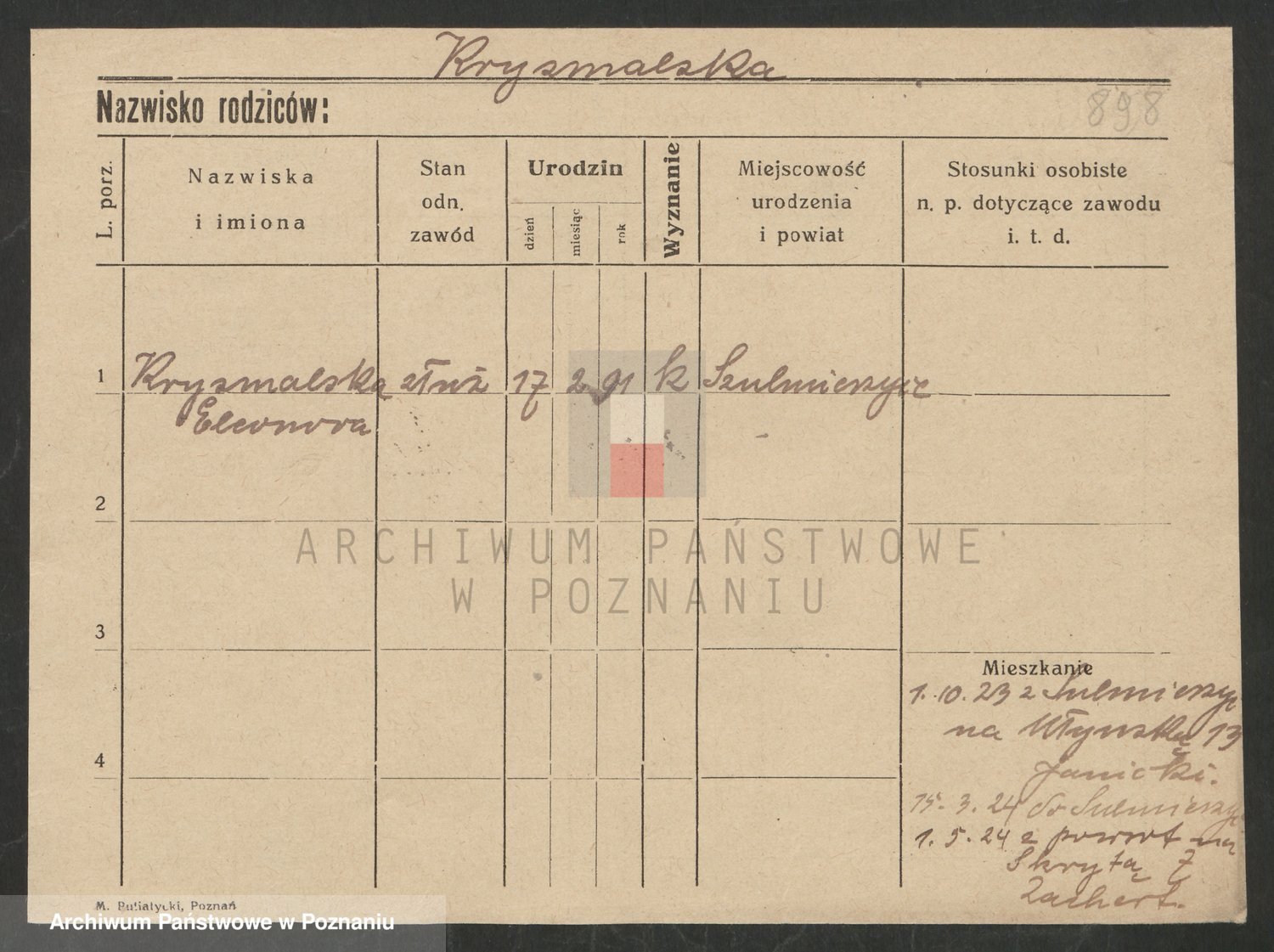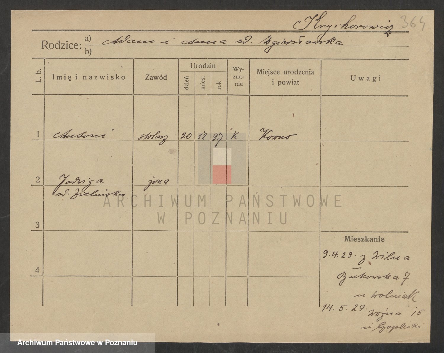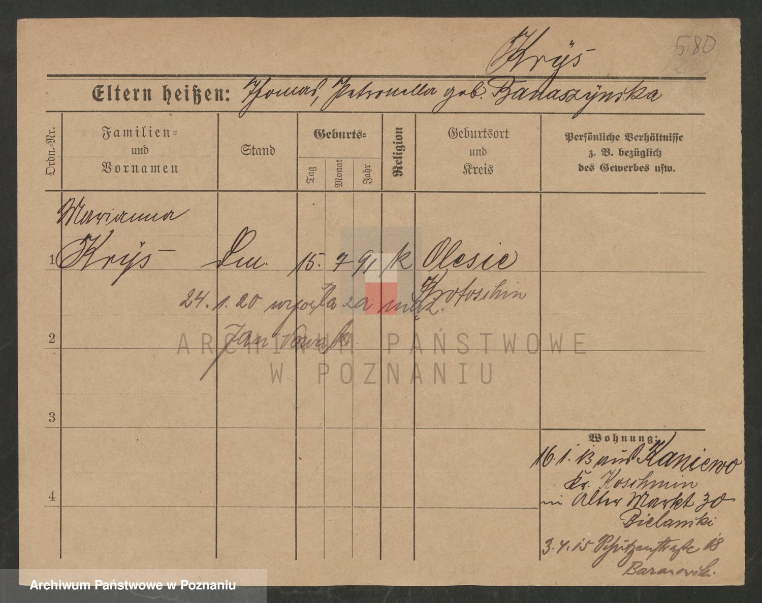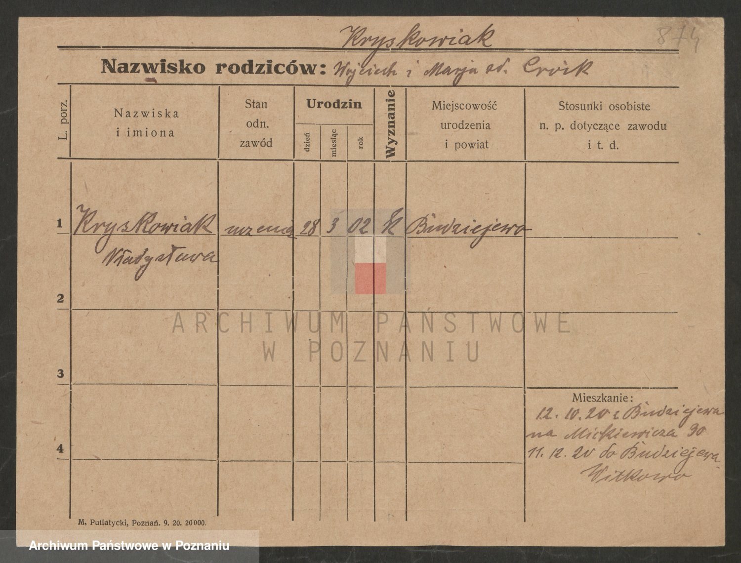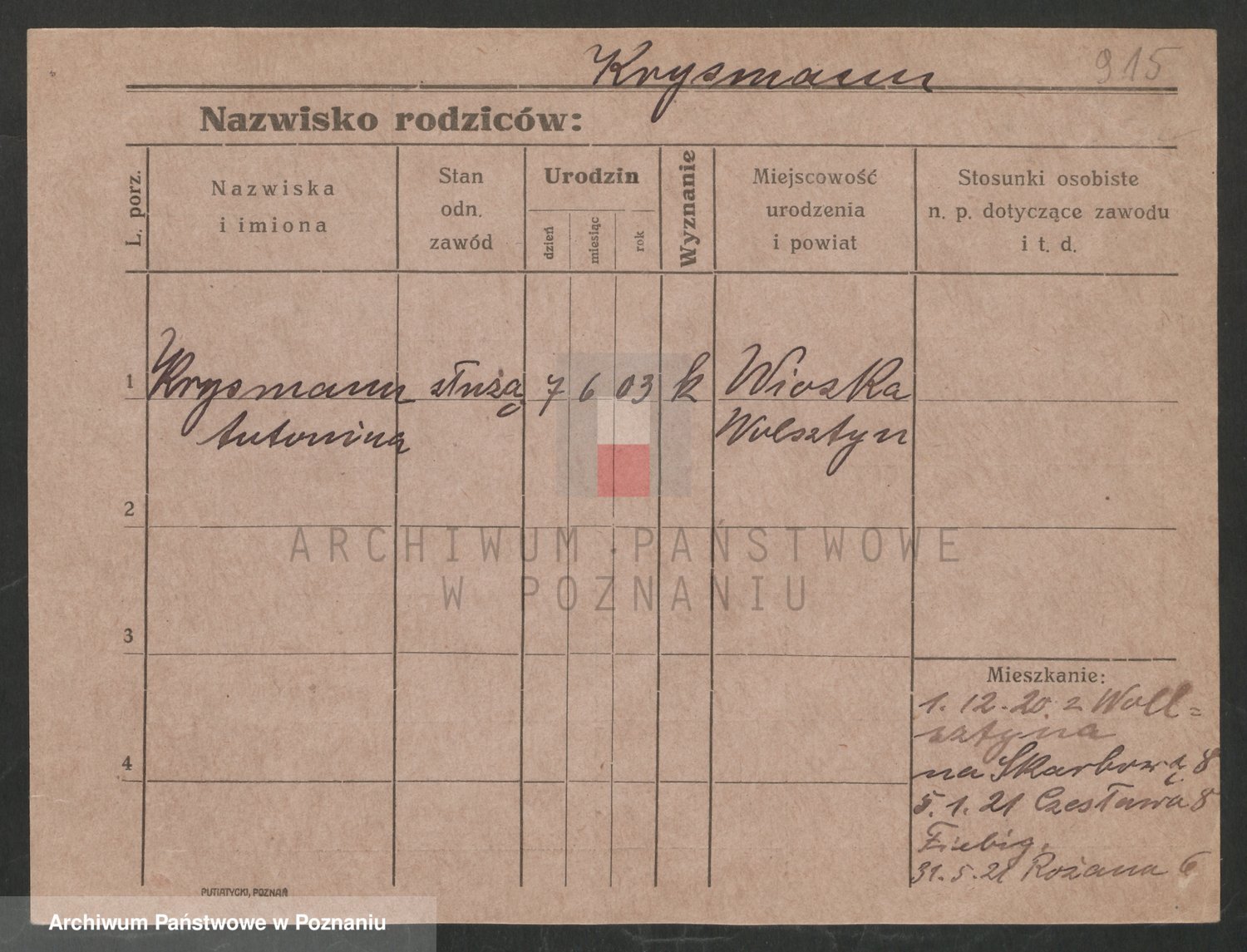 Krutki z d. Wolinska, Zofja