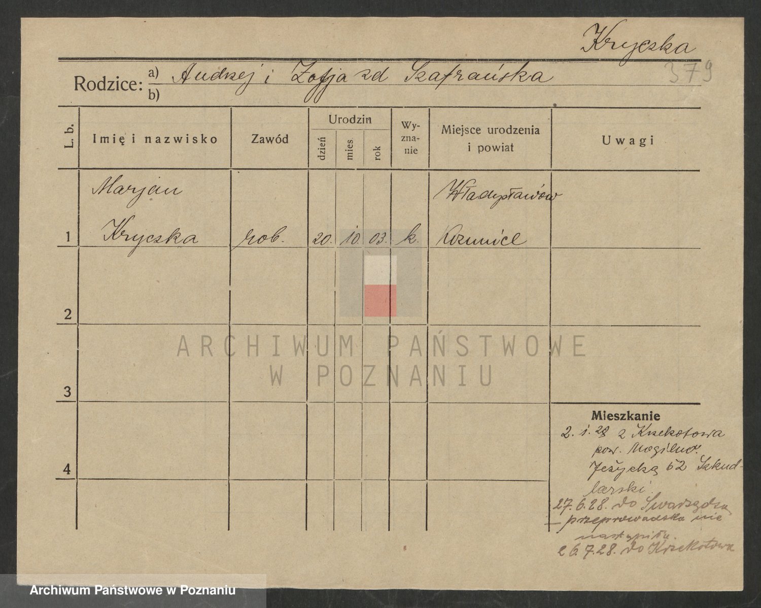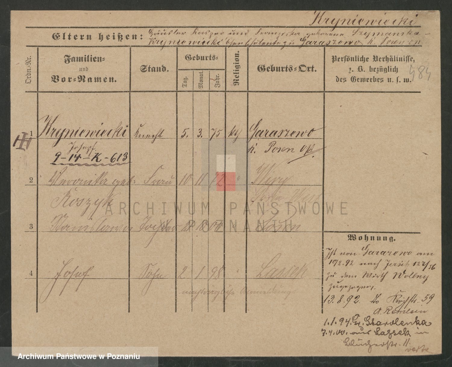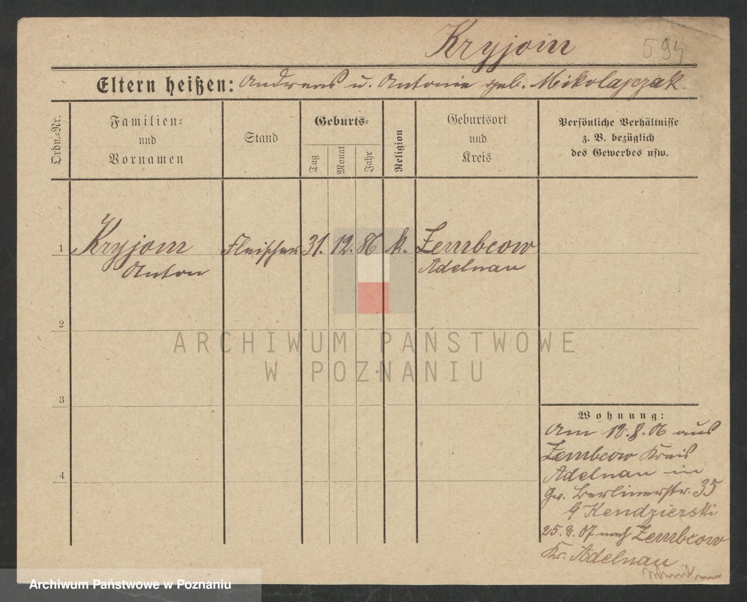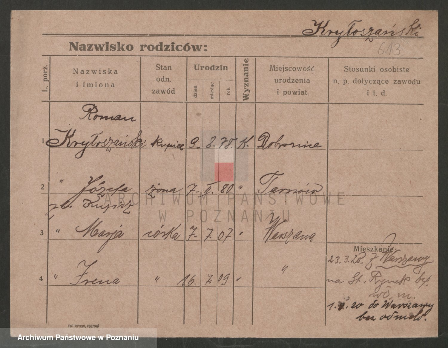 Krutki z d. Wolinska, Zofja