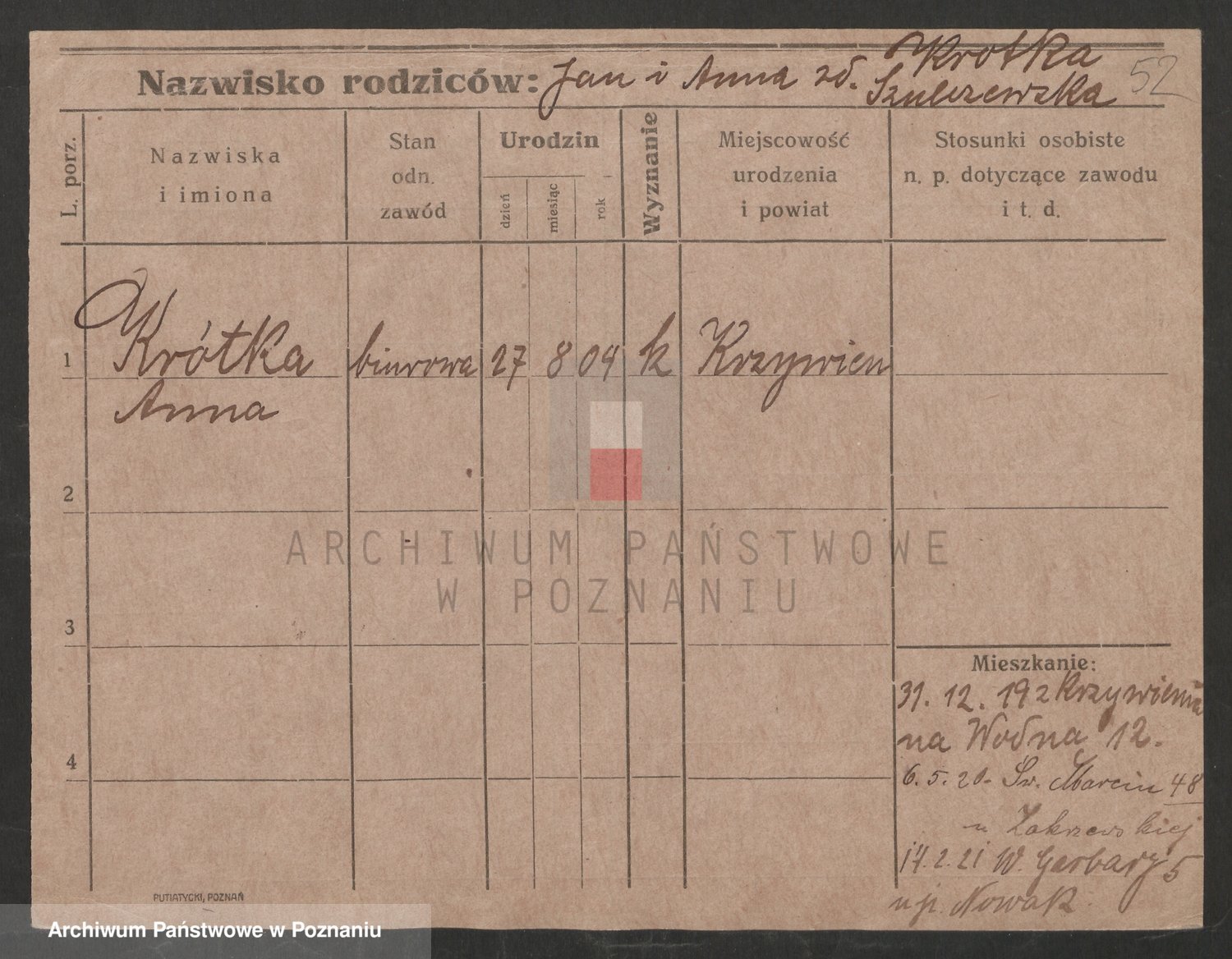 Krótka, Anna
