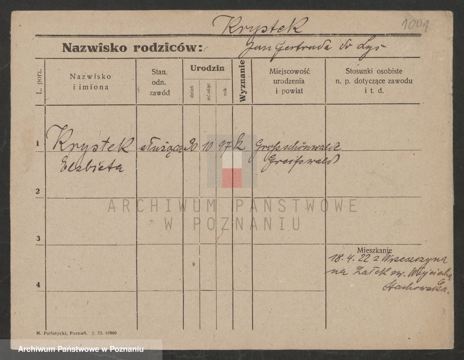 karta: 1022