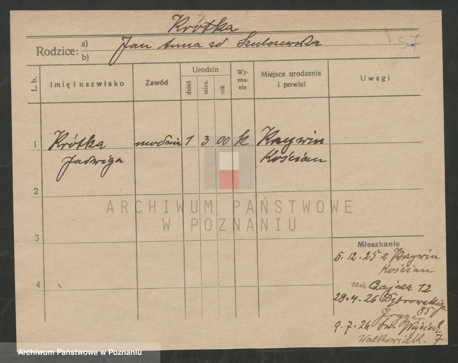 Krótki z d. Jarosz, Veronika