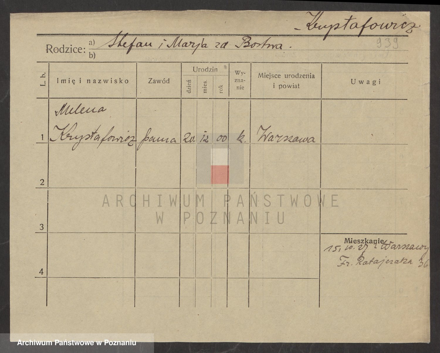 Krystkiewicz nazwisko artyst.Bielinska, Helena