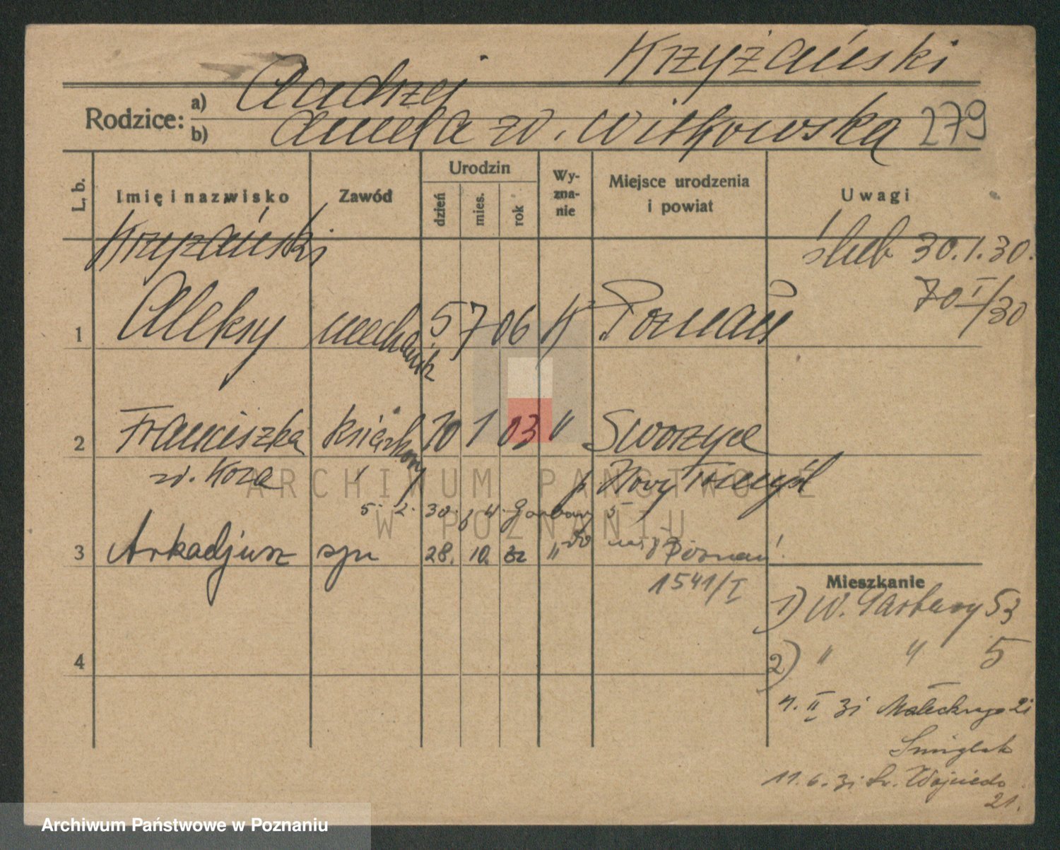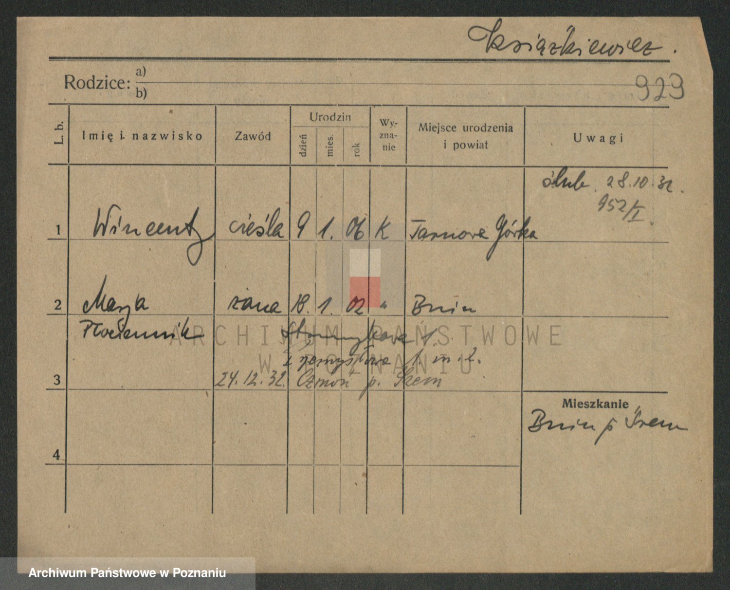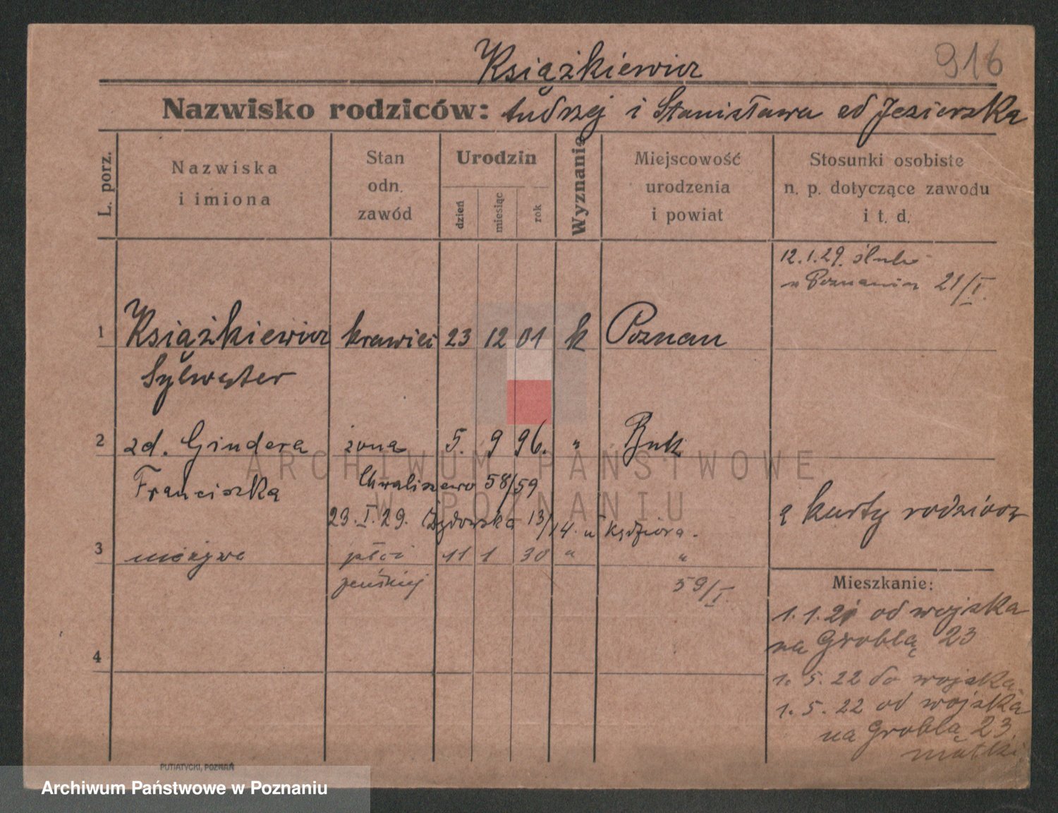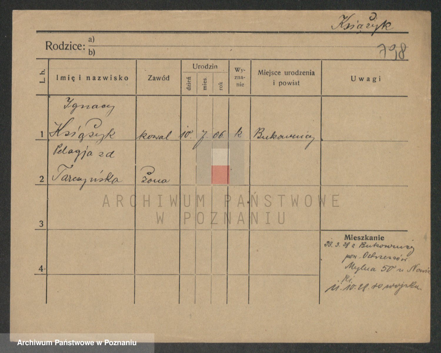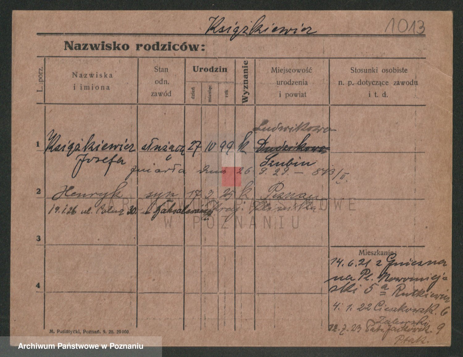 Podgląd karty osobowej dostępny jest po kliknięciu na nazwisko lub ikonkę karty. Można dokonywać powiększenia (ikony na górze) lub przechodzić między kolejnymi skanami (strzałki po bokach).