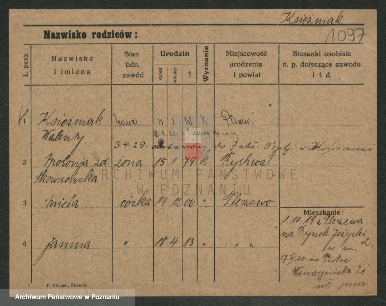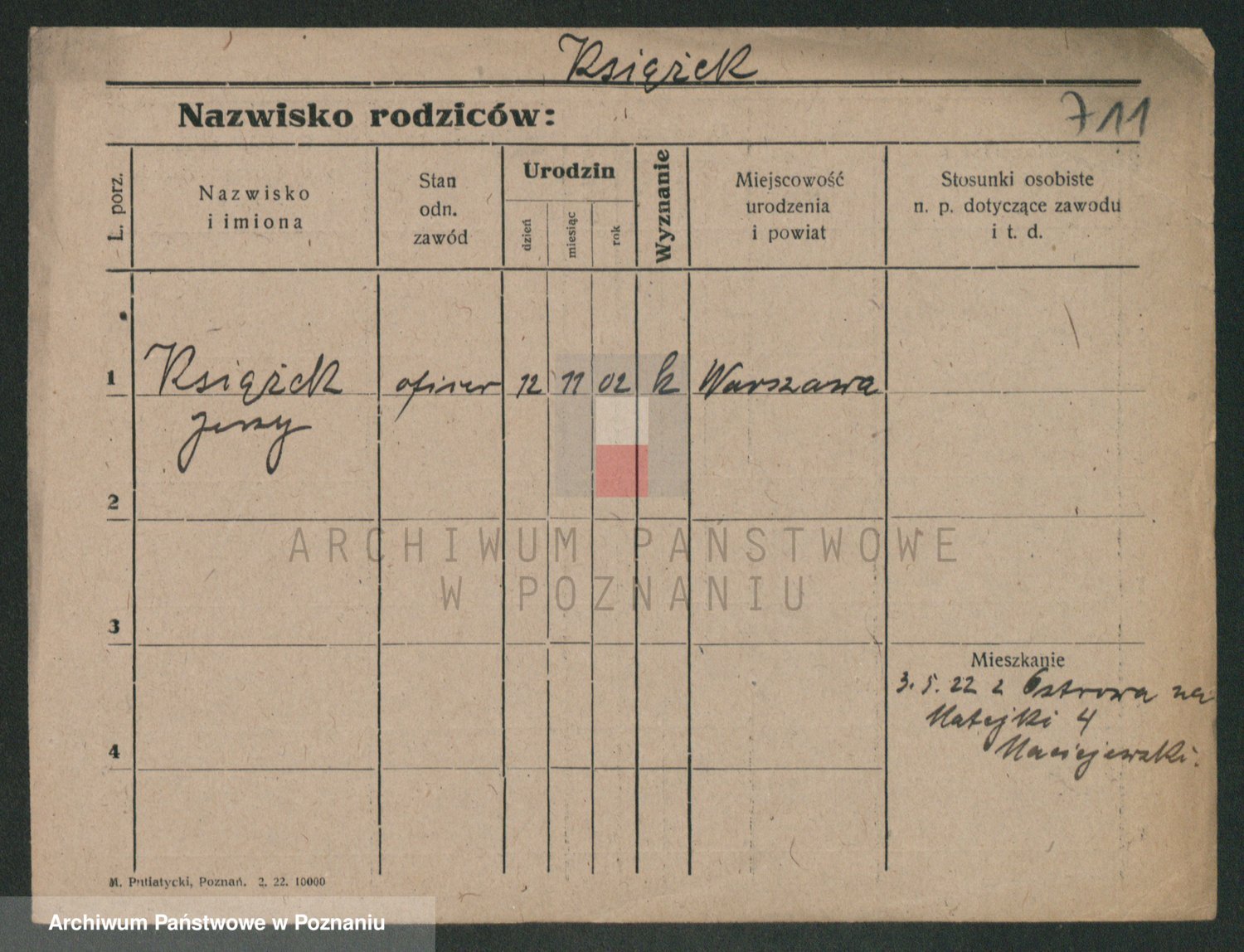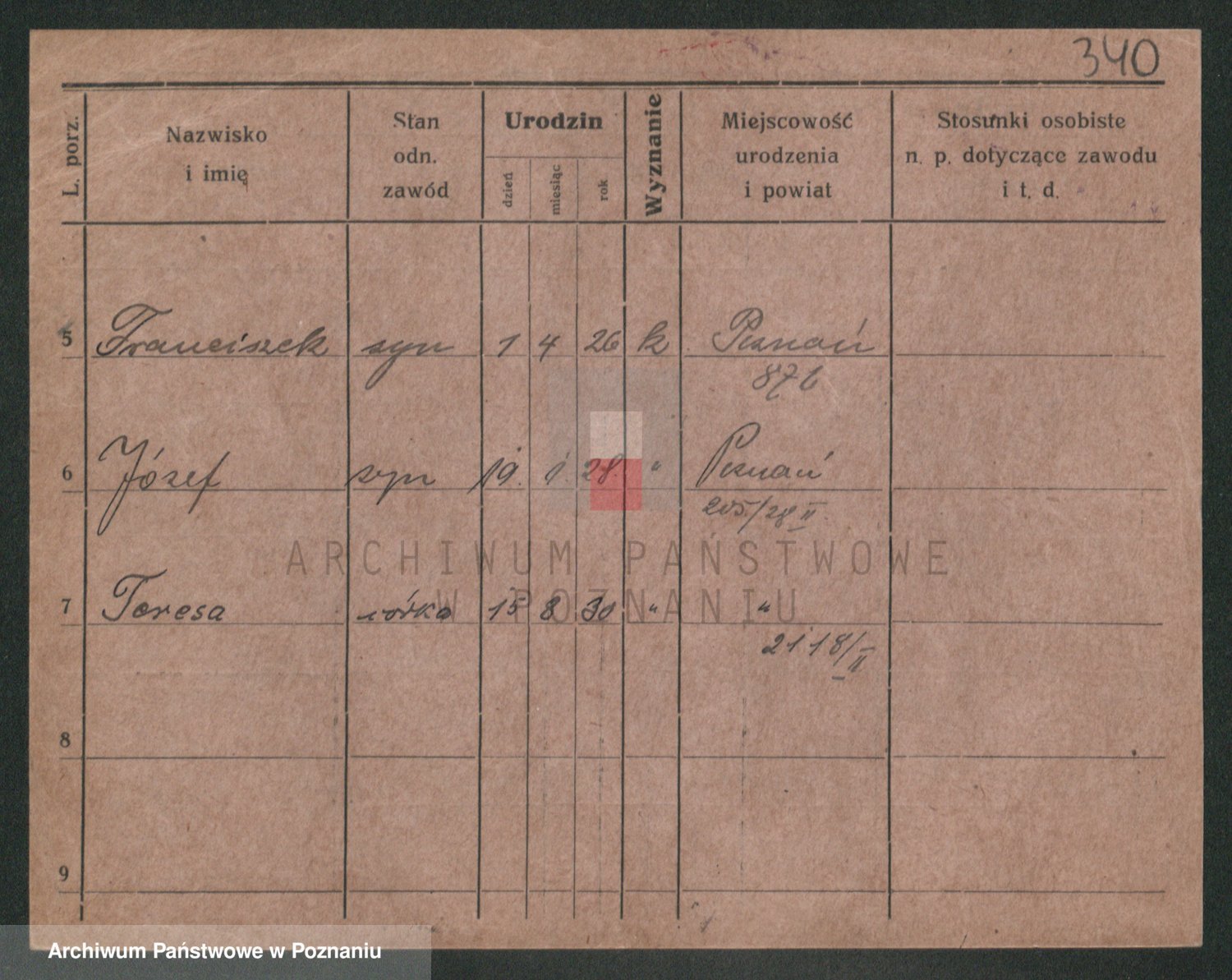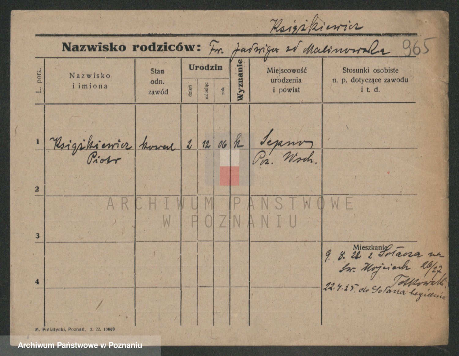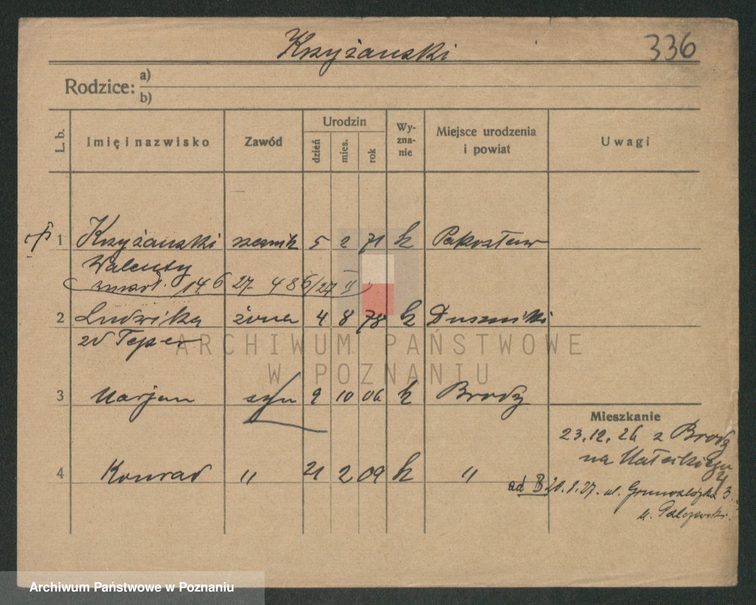 Podgląd karty osobowej dostępny jest po kliknięciu na nazwisko lub ikonkę karty. Można dokonywać powiększenia (ikony na górze) lub przechodzić między kolejnymi skanami (strzałki po bokach).