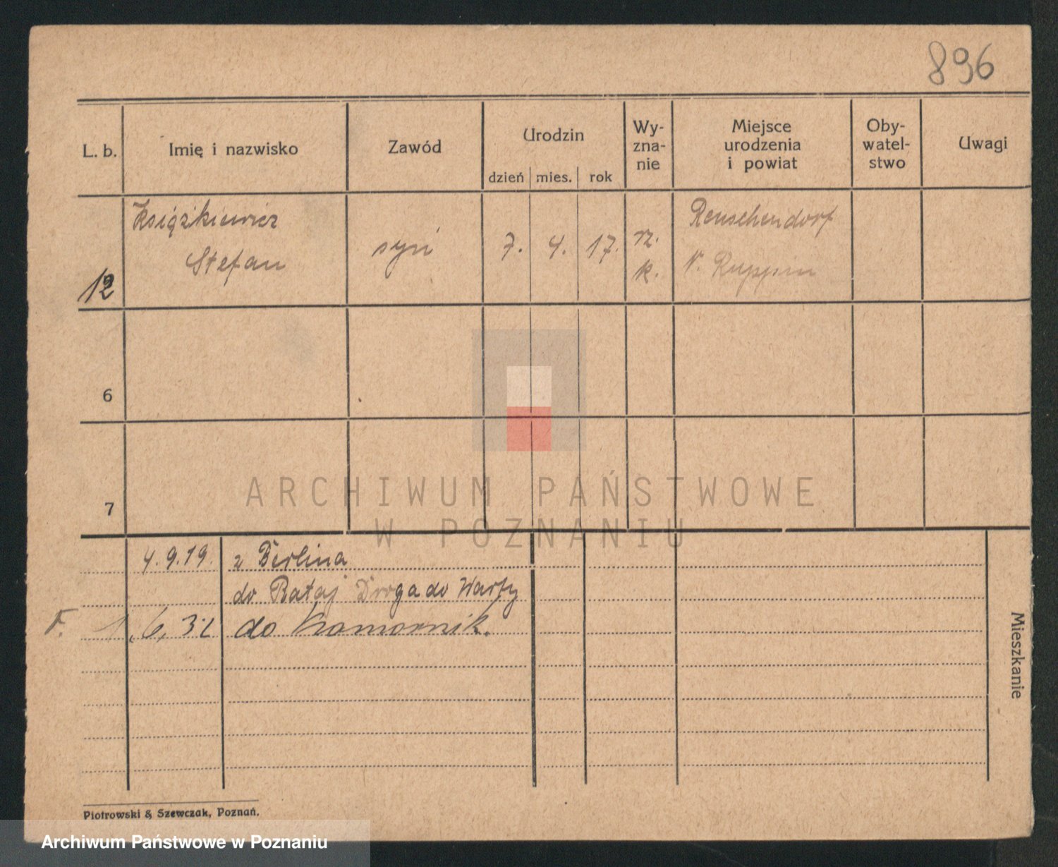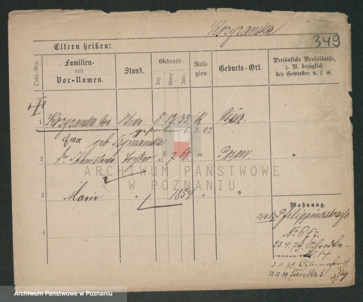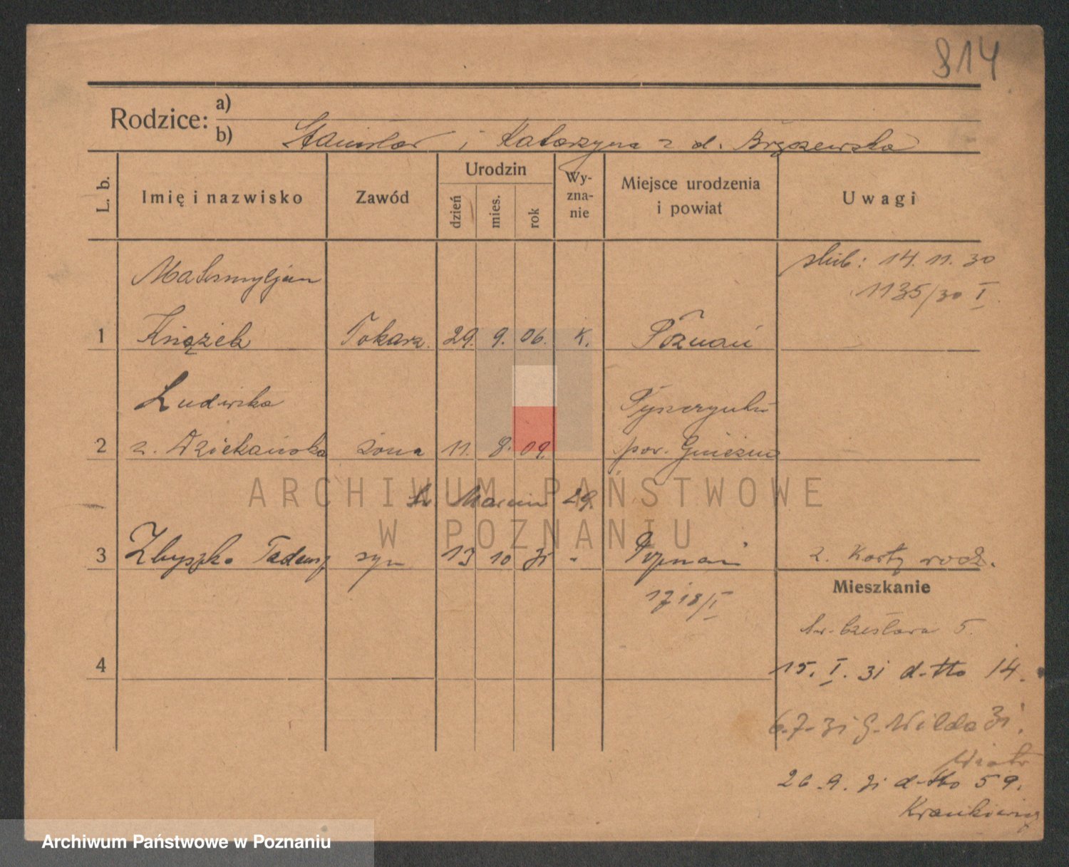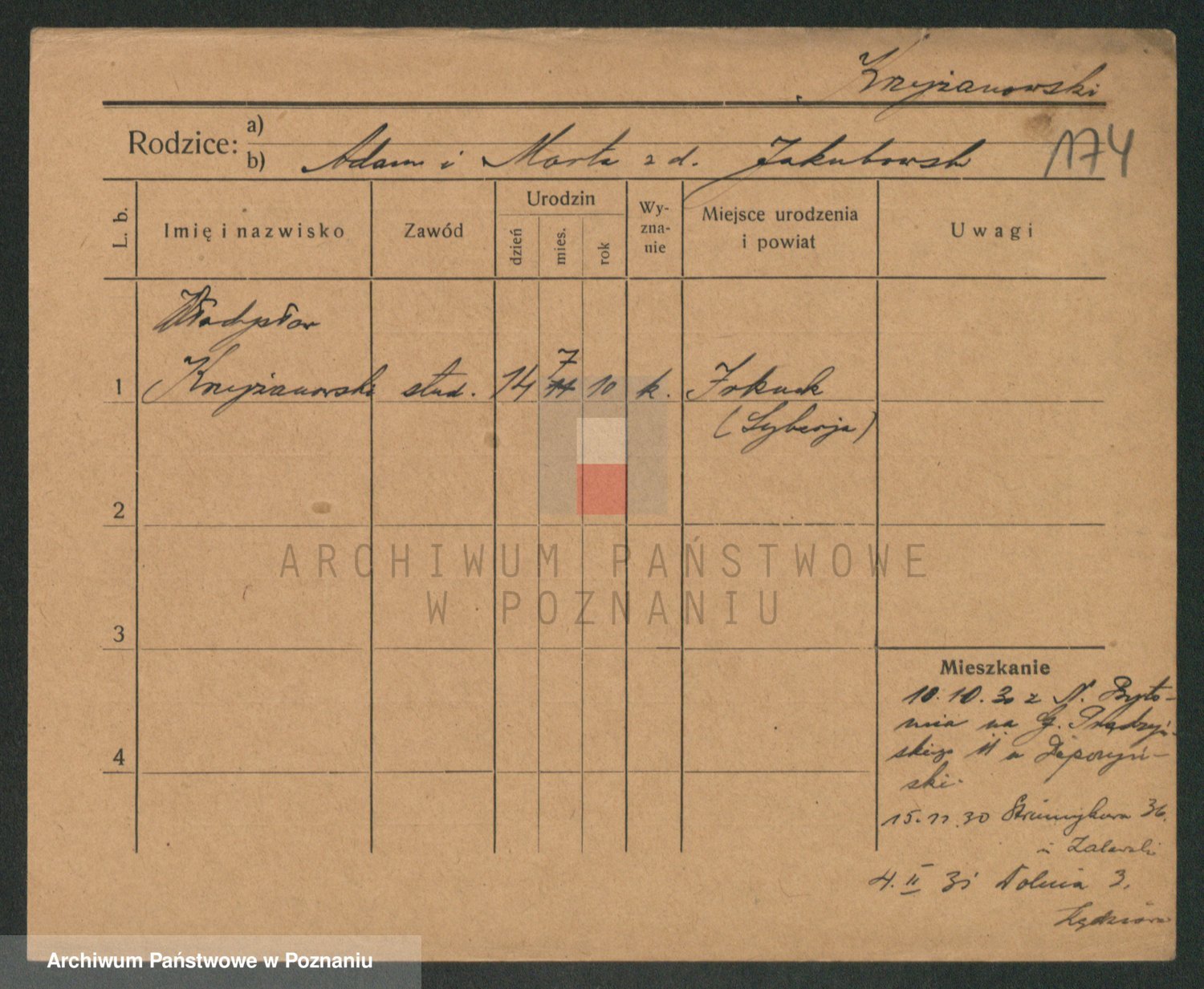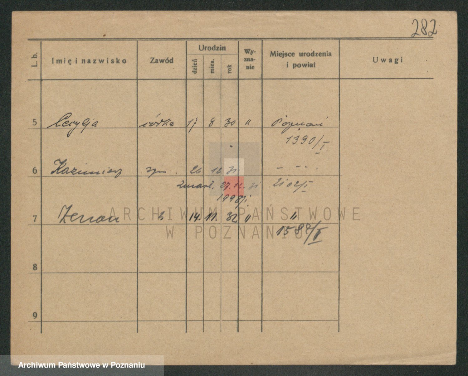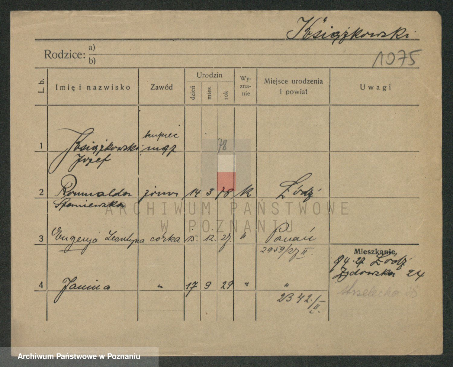 Podgląd karty osobowej dostępny jest po kliknięciu na nazwisko lub ikonkę karty. Można dokonywać powiększenia (ikony na górze) lub przechodzić między kolejnymi skanami (strzałki po bokach).