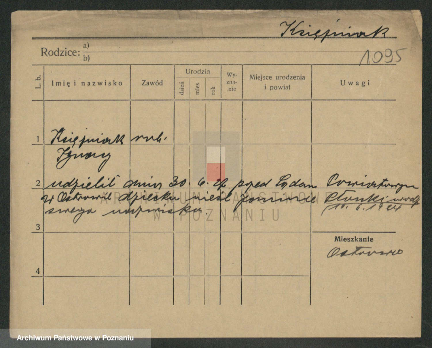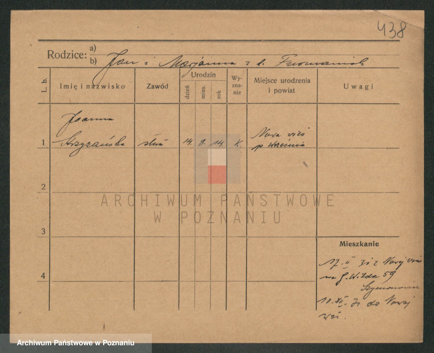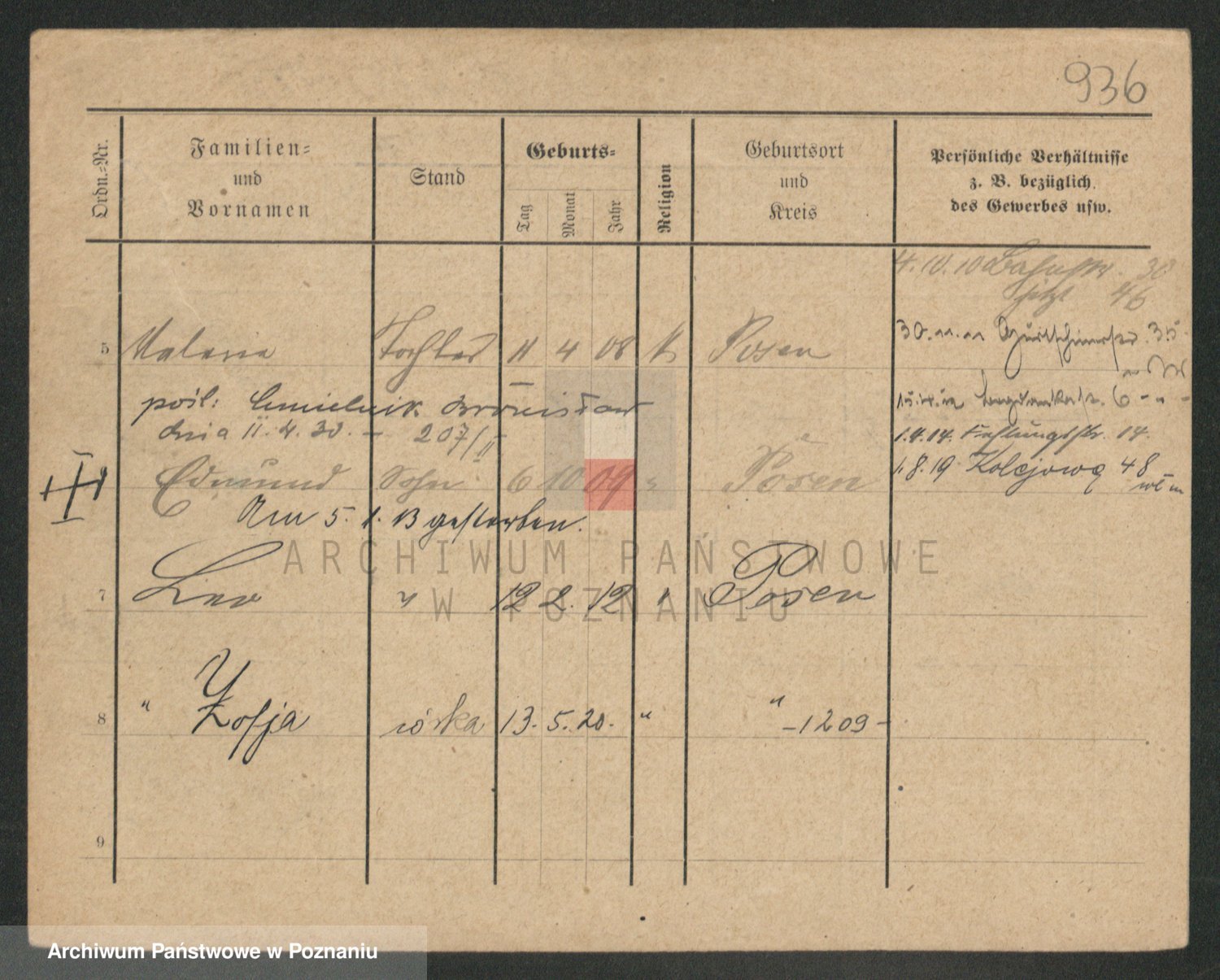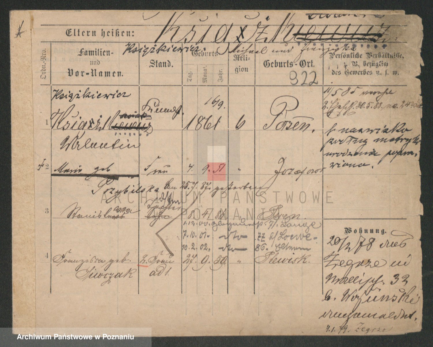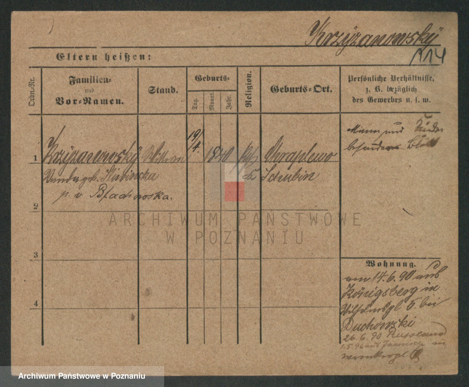 Podgląd karty osobowej dostępny jest po kliknięciu na nazwisko lub ikonkę karty. Można dokonywać powiększenia (ikony na górze) lub przechodzić między kolejnymi skanami (strzałki po bokach).