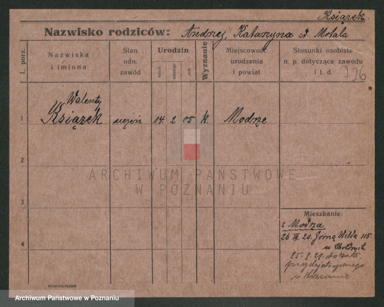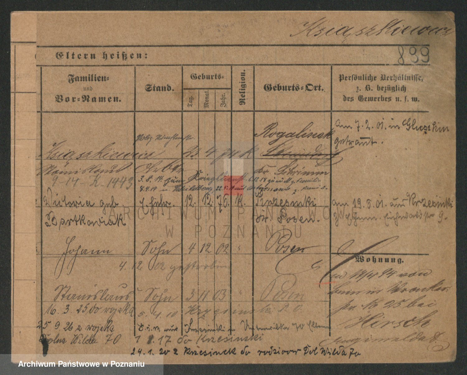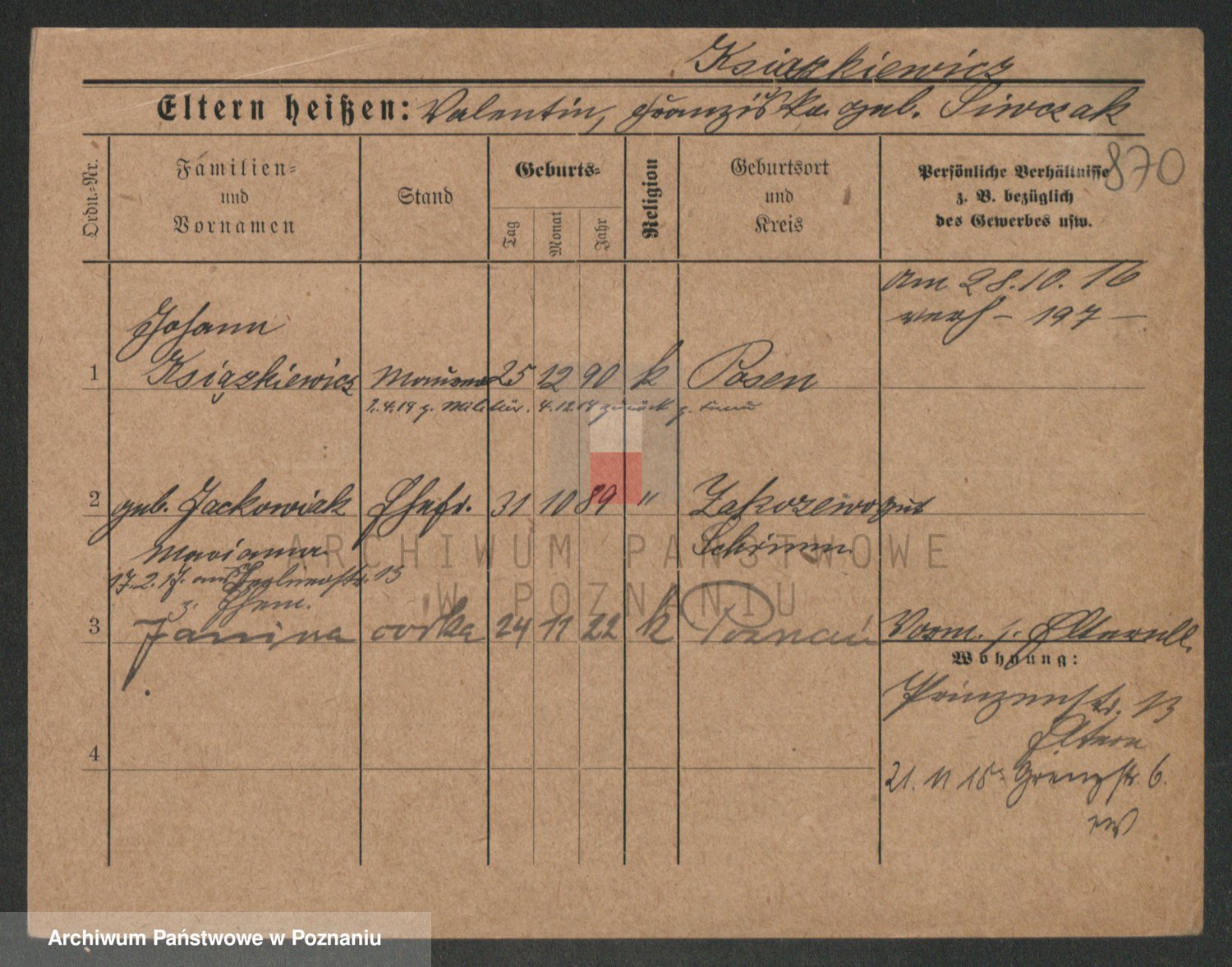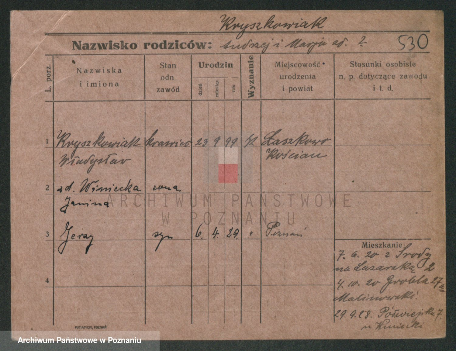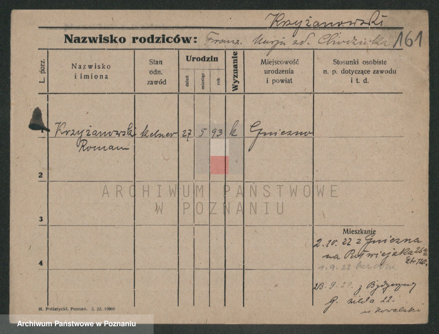 Podgląd karty osobowej dostępny jest po kliknięciu na nazwisko lub ikonkę karty. Można dokonywać powiększenia (ikony na górze) lub przechodzić między kolejnymi skanami (strzałki po bokach).