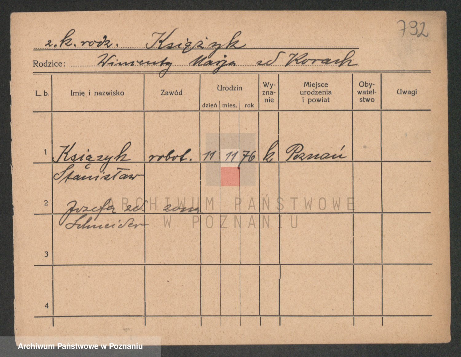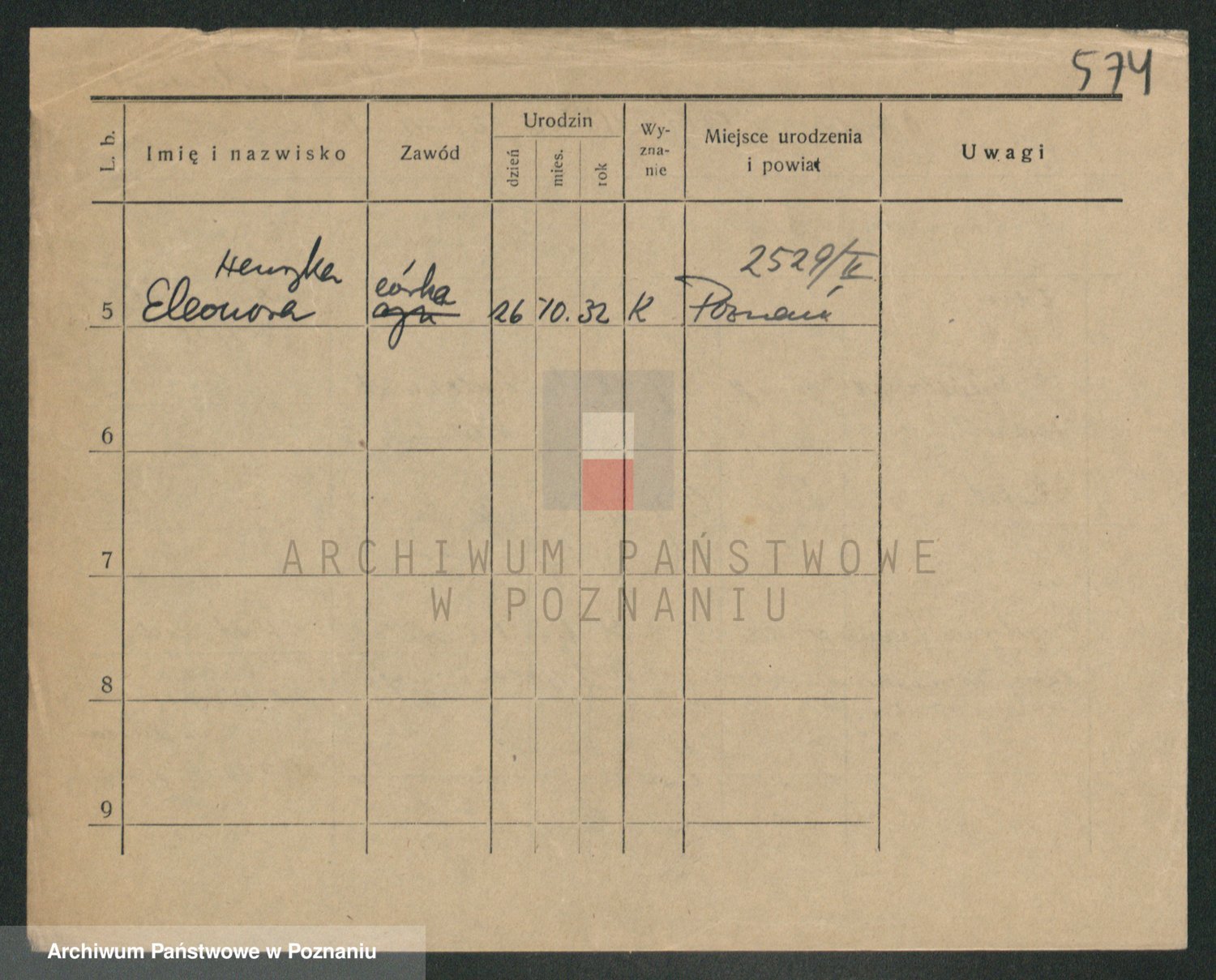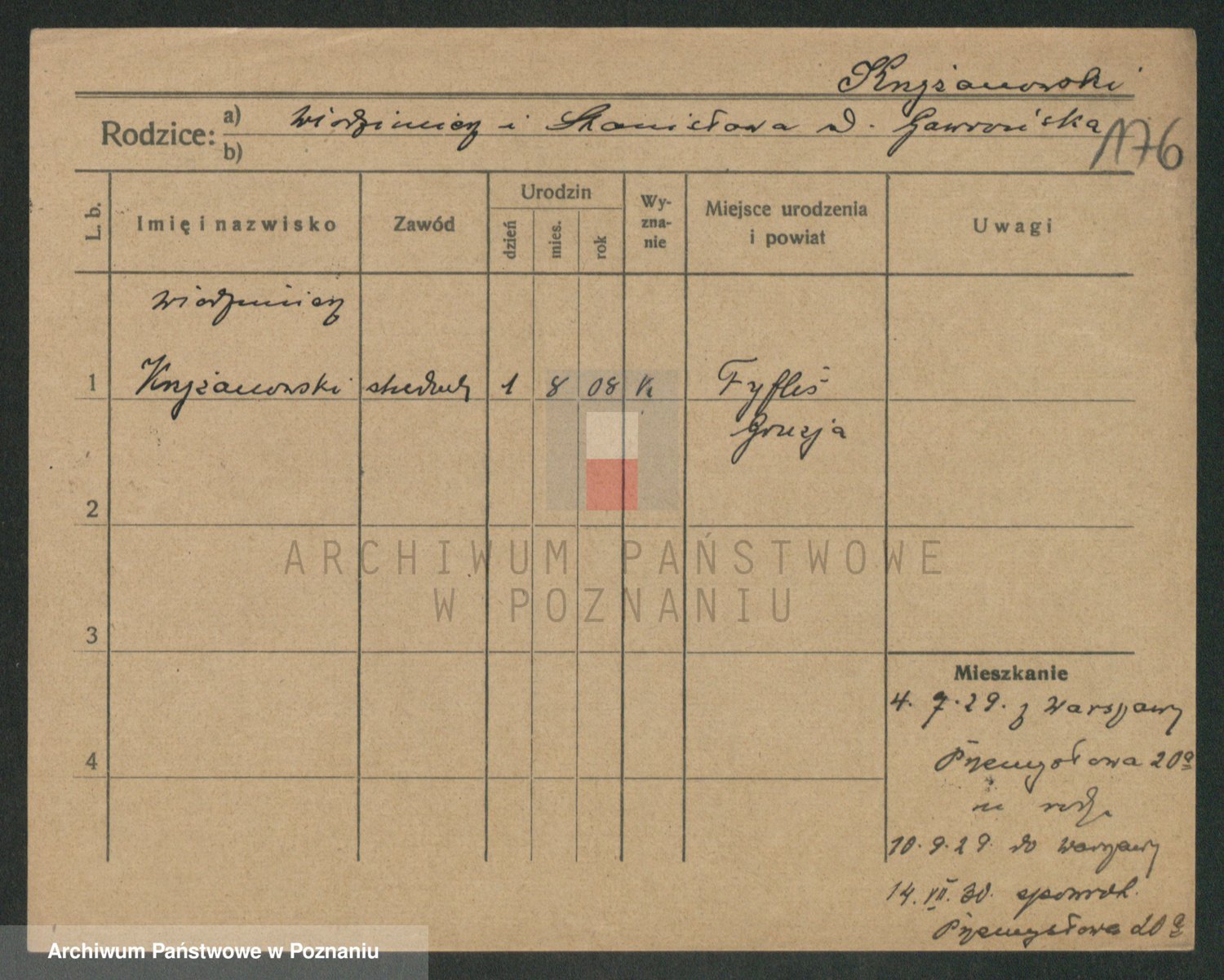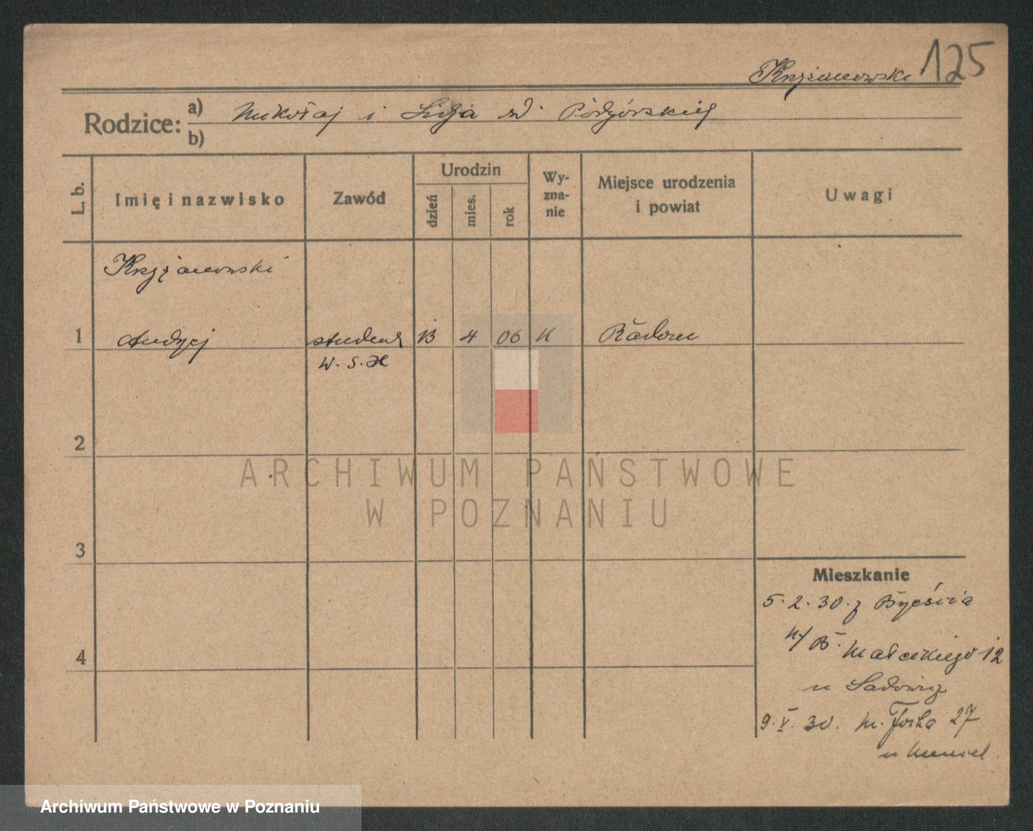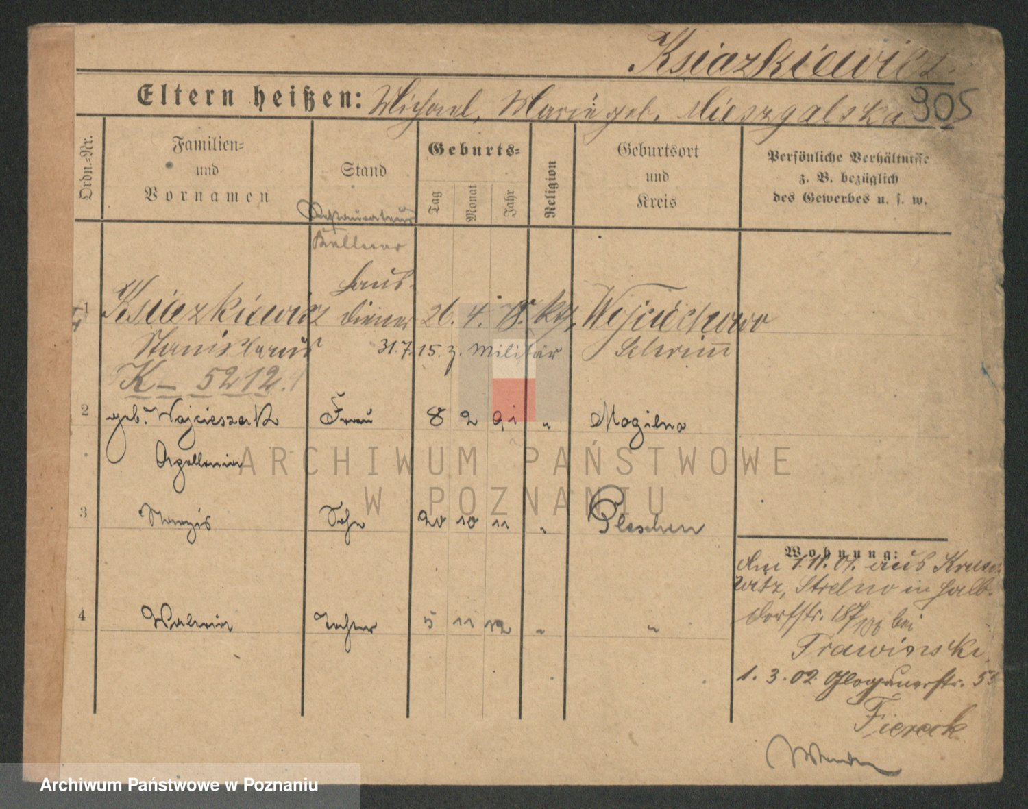 Podgląd karty osobowej dostępny jest po kliknięciu na nazwisko lub ikonkę karty. Można dokonywać powiększenia (ikony na górze) lub przechodzić między kolejnymi skanami (strzałki po bokach).