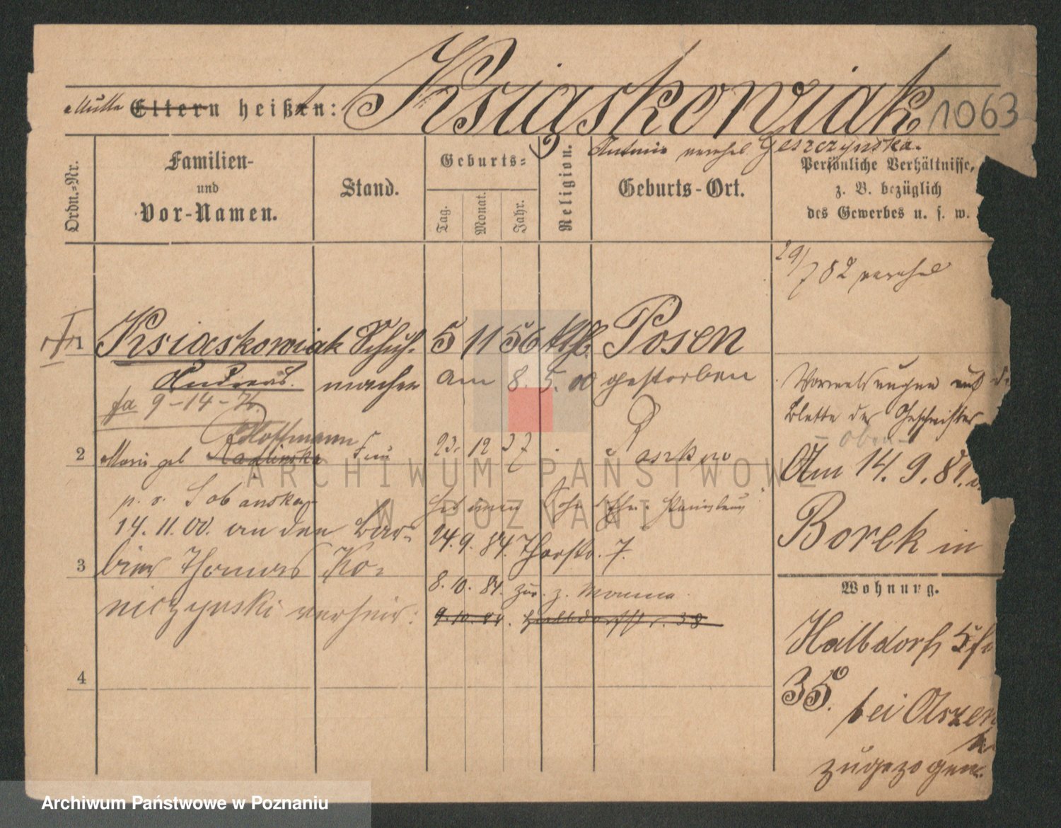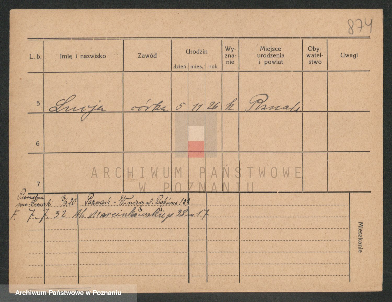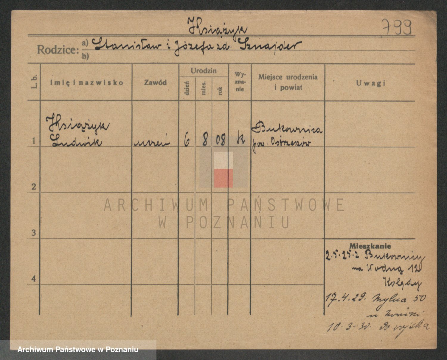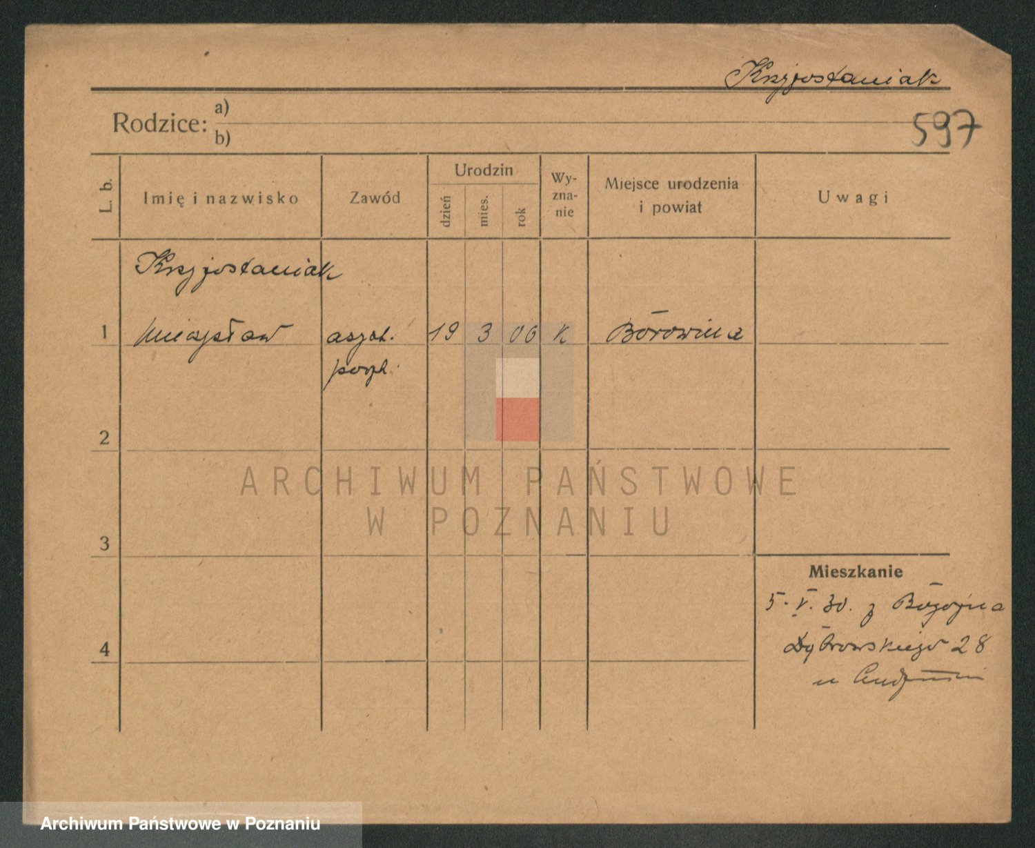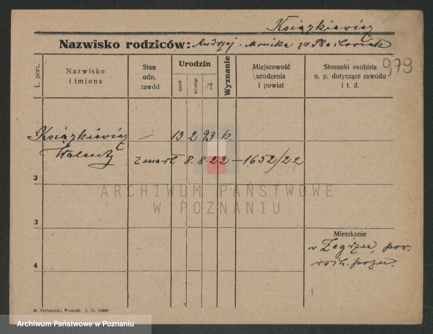 Podgląd karty osobowej dostępny jest po kliknięciu na nazwisko lub ikonkę karty. Można dokonywać powiększenia (ikony na górze) lub przechodzić między kolejnymi skanami (strzałki po bokach).