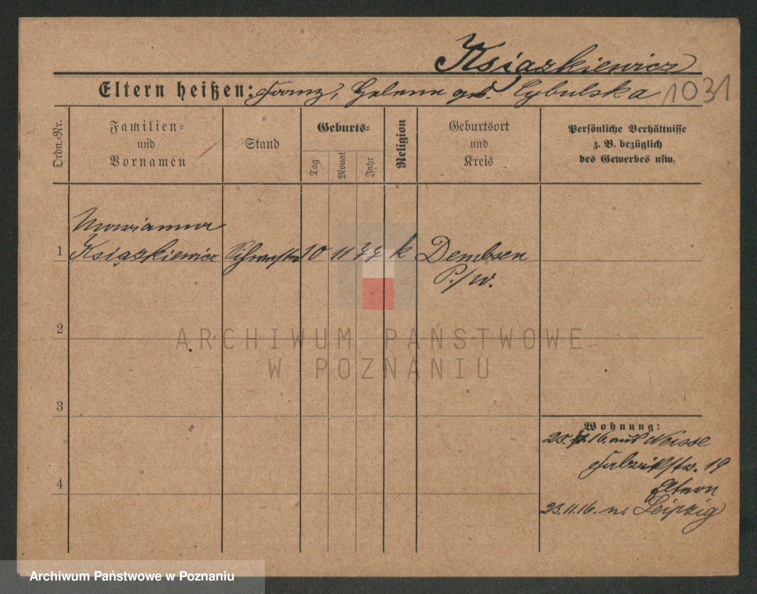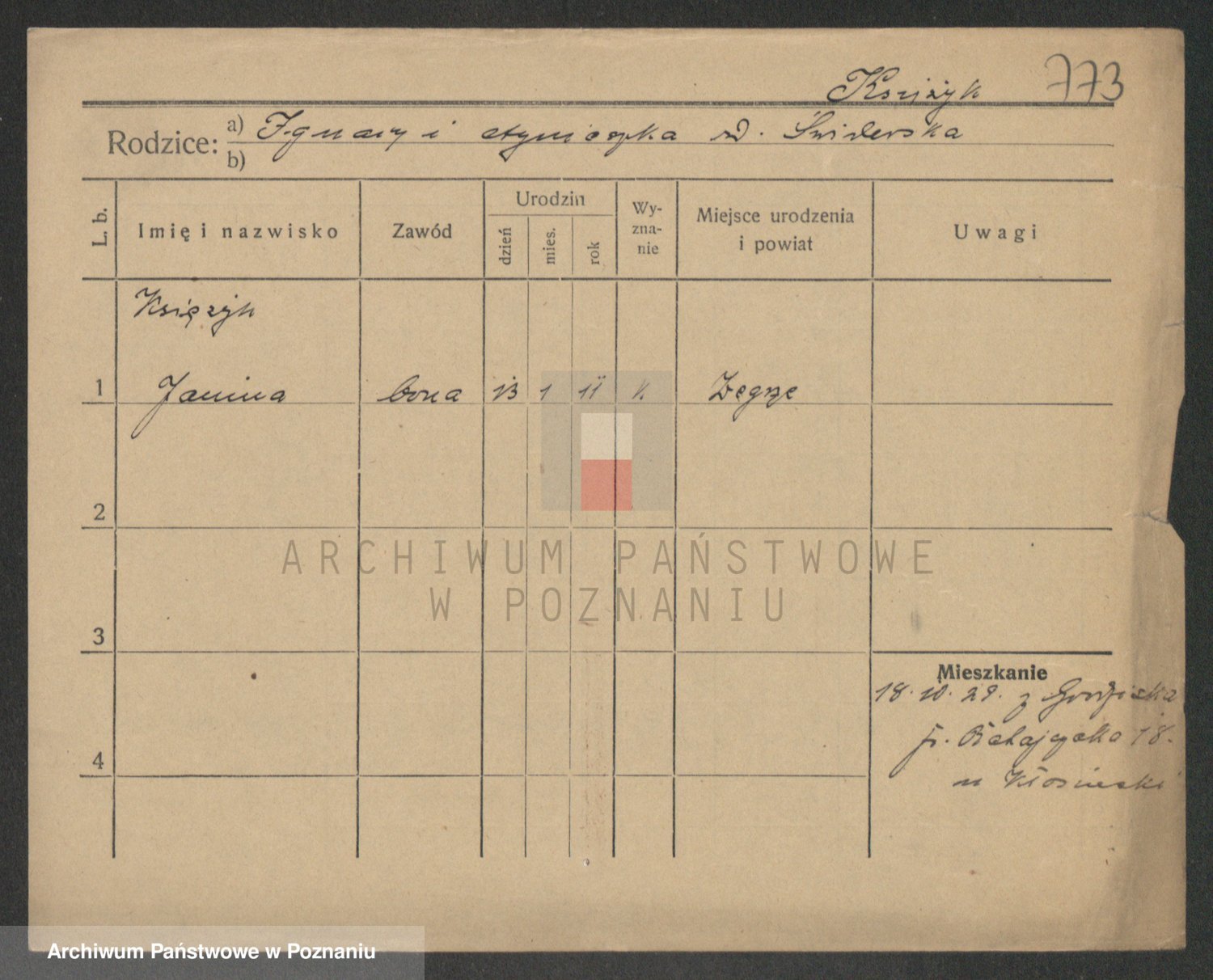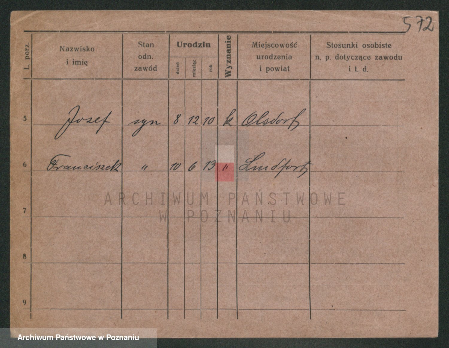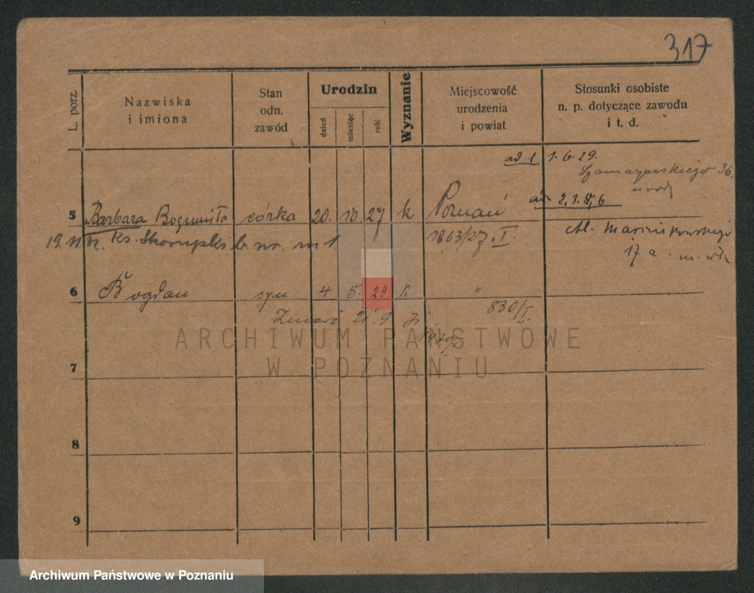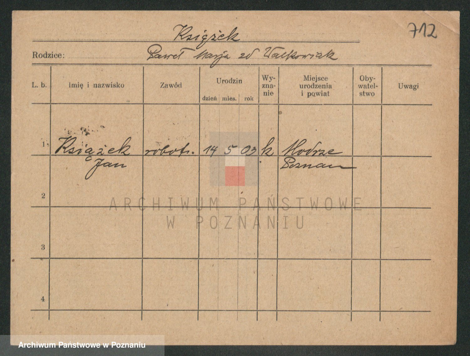 Podgląd karty osobowej dostępny jest po kliknięciu na nazwisko lub ikonkę karty. Można dokonywać powiększenia (ikony na górze) lub przechodzić między kolejnymi skanami (strzałki po bokach).