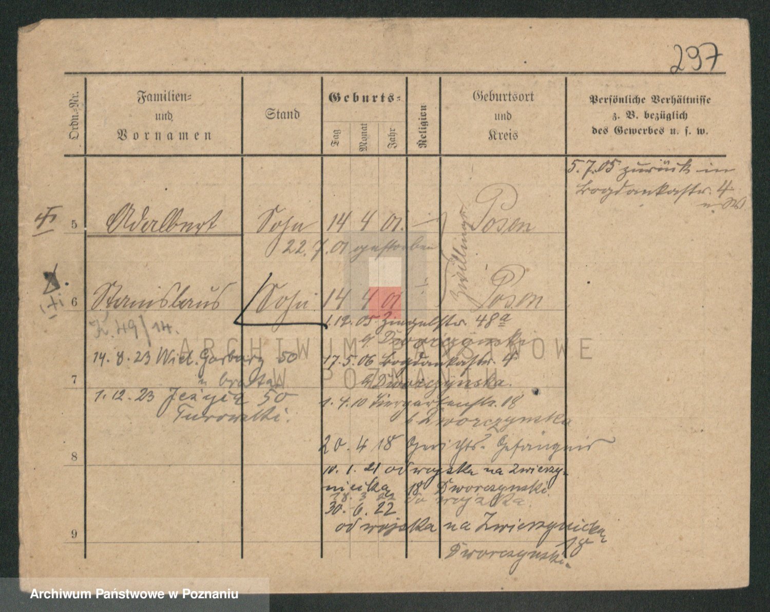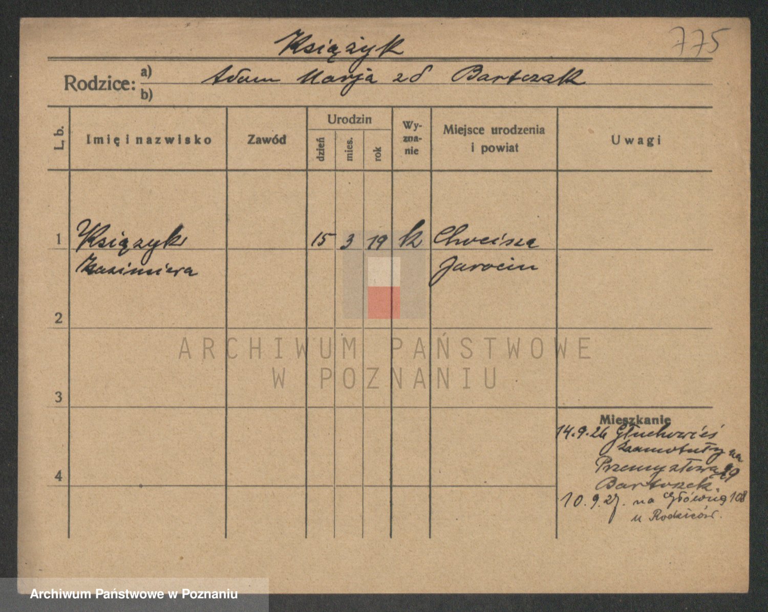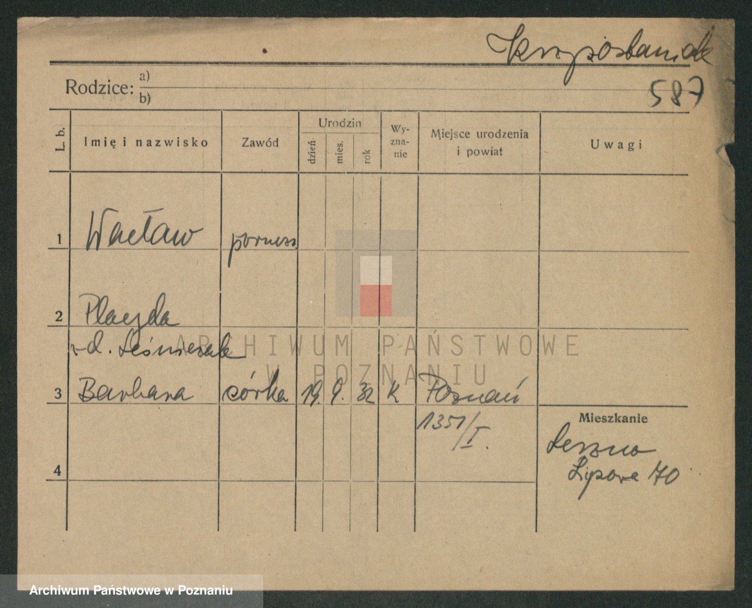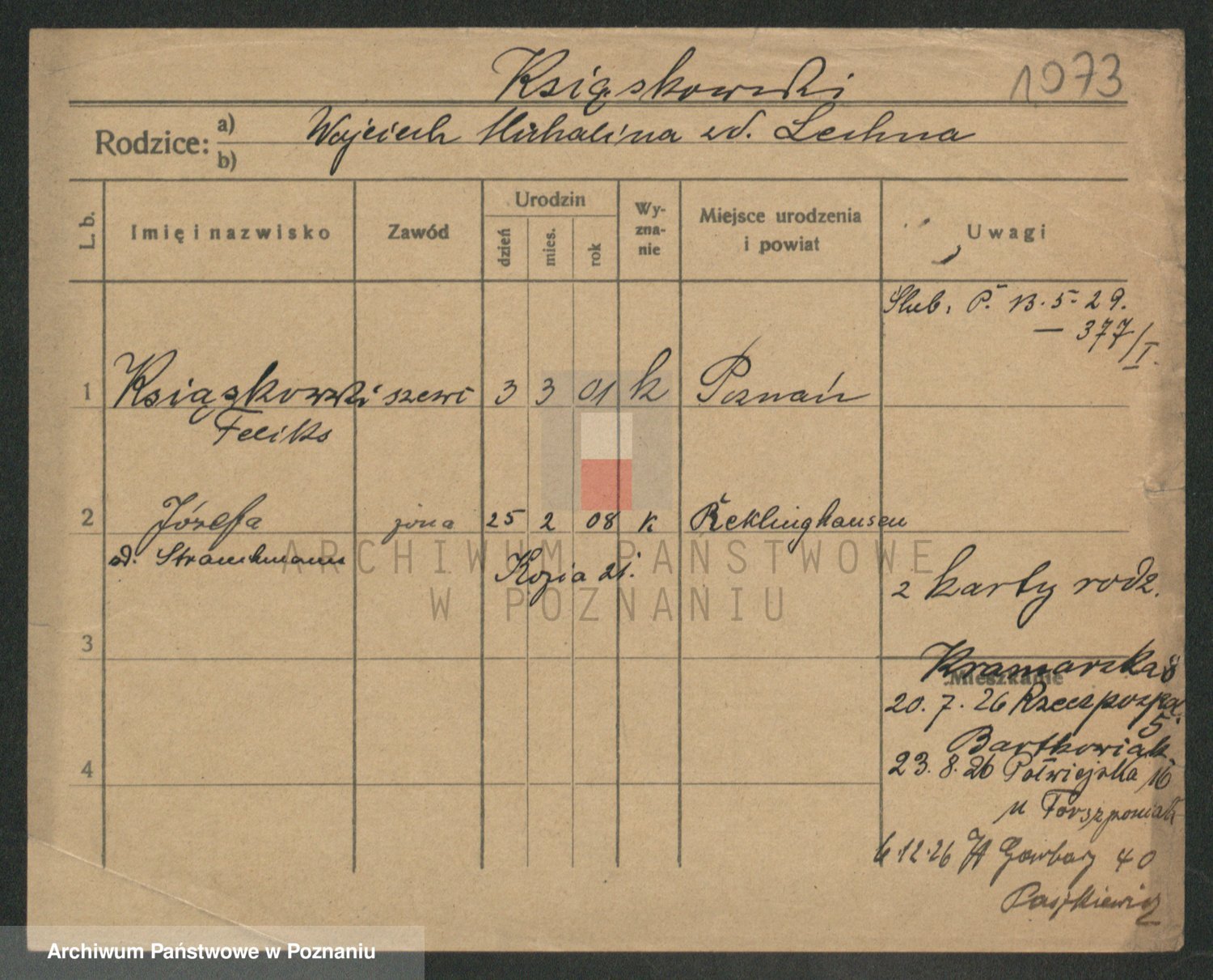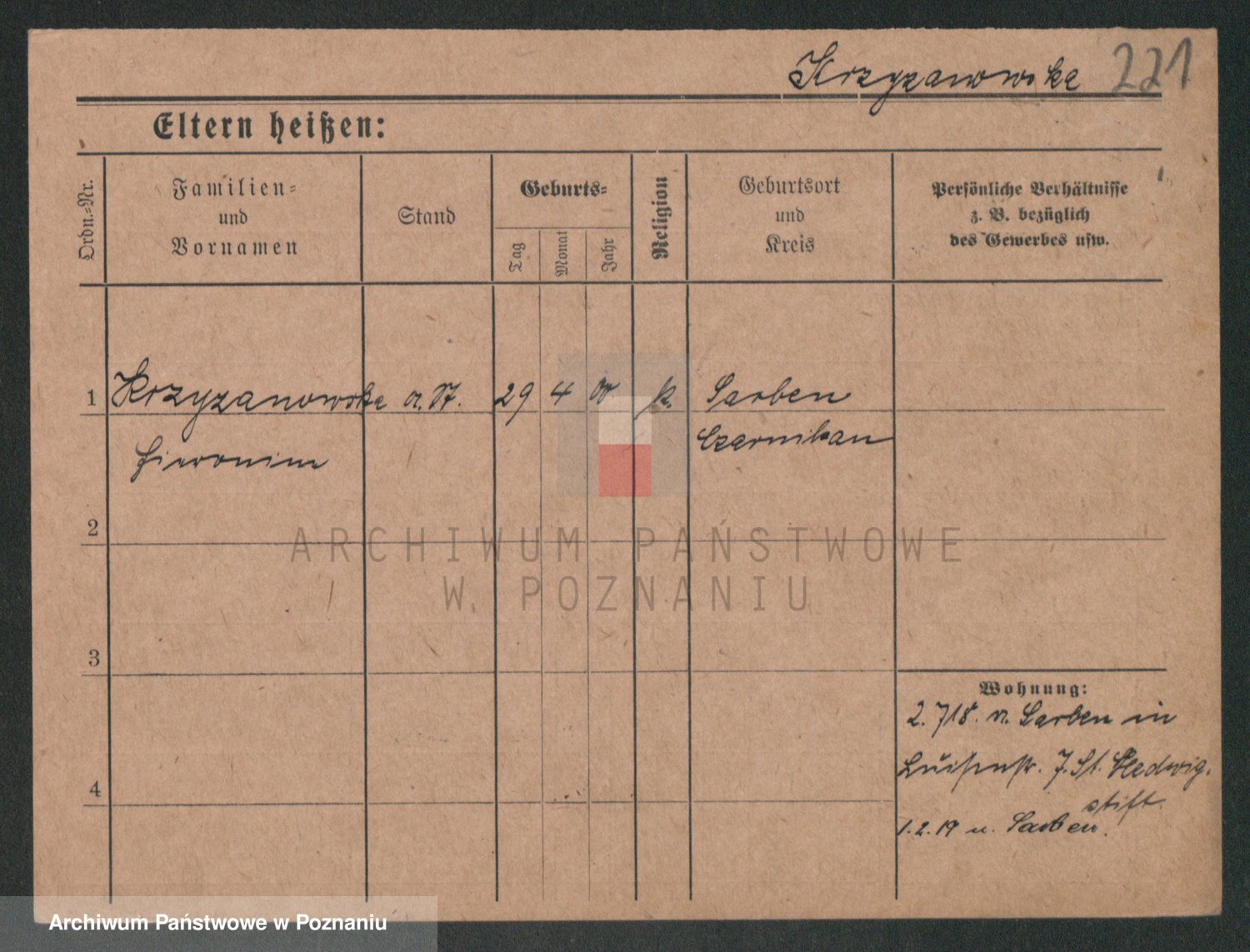 Podgląd karty osobowej dostępny jest po kliknięciu na nazwisko lub ikonkę karty. Można dokonywać powiększenia (ikony na górze) lub przechodzić między kolejnymi skanami (strzałki po bokach).