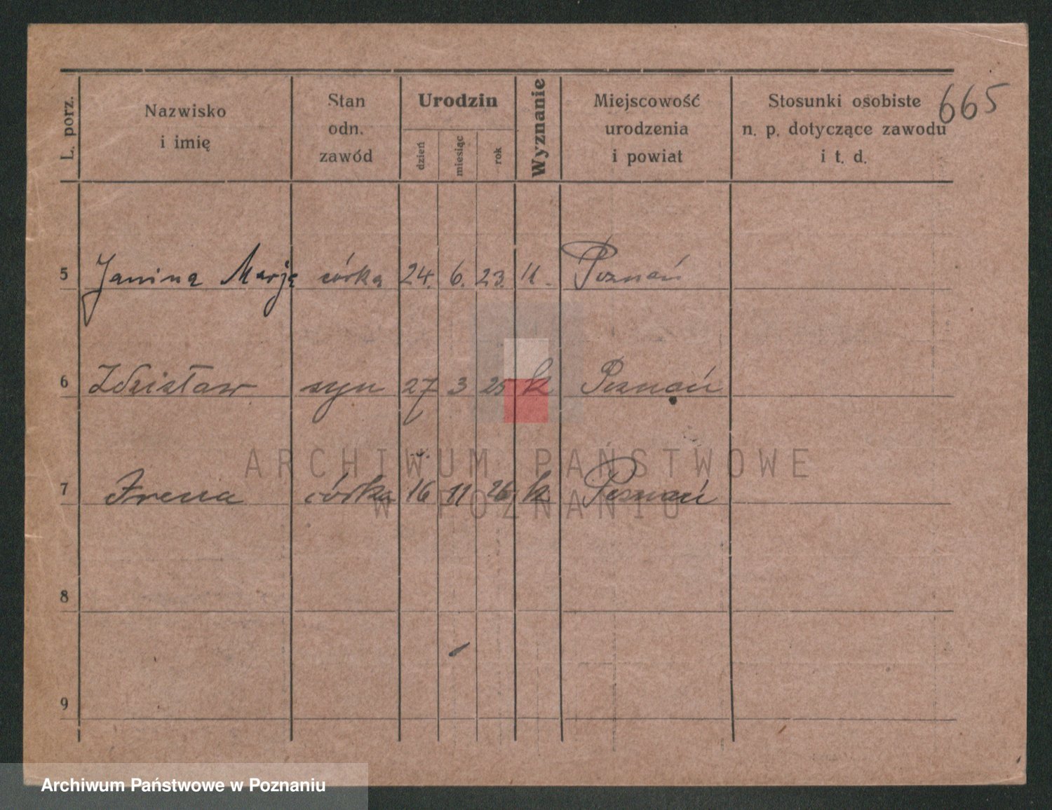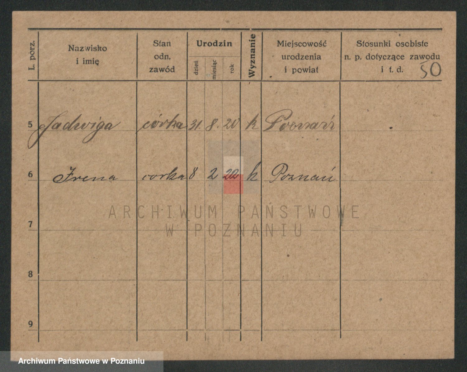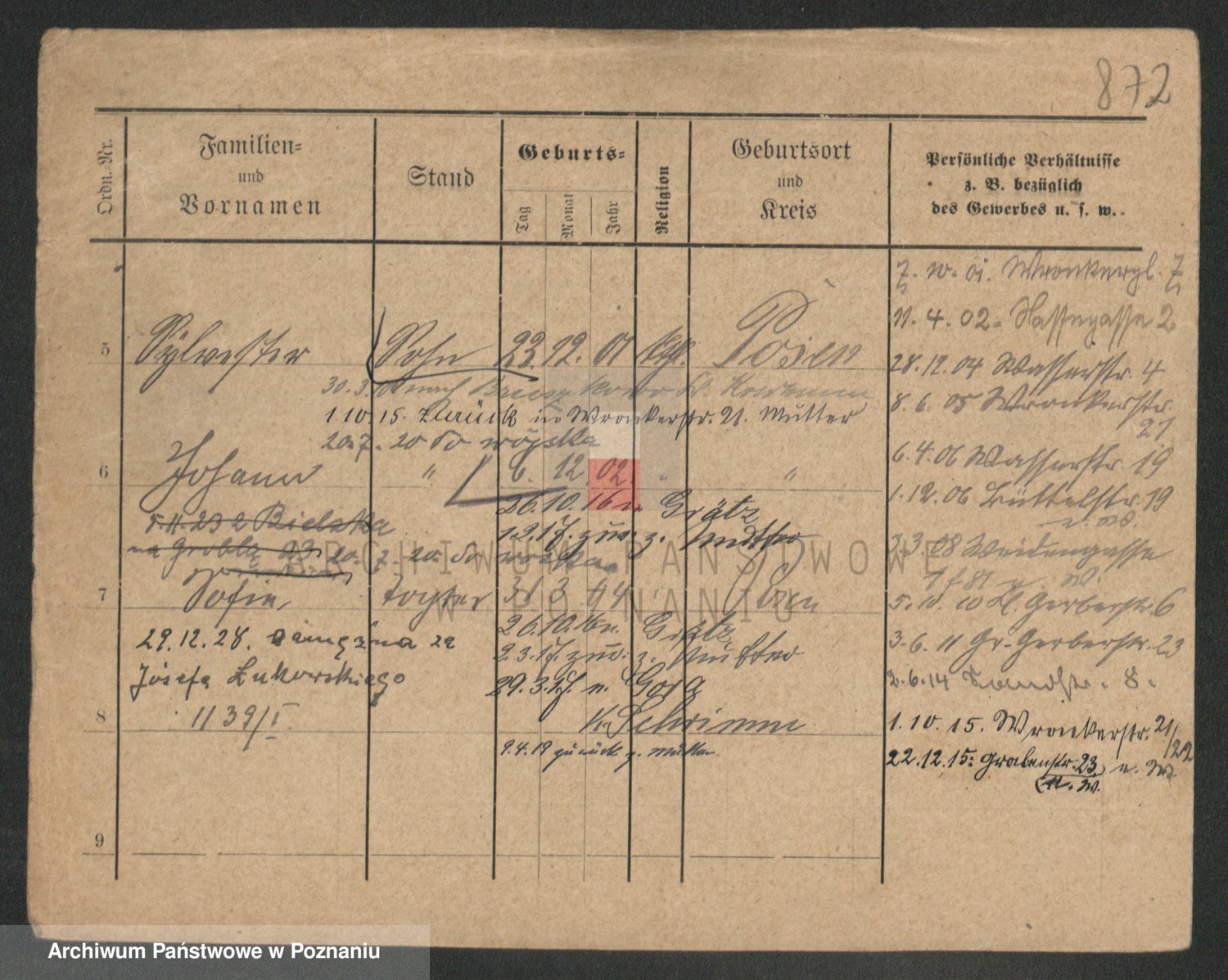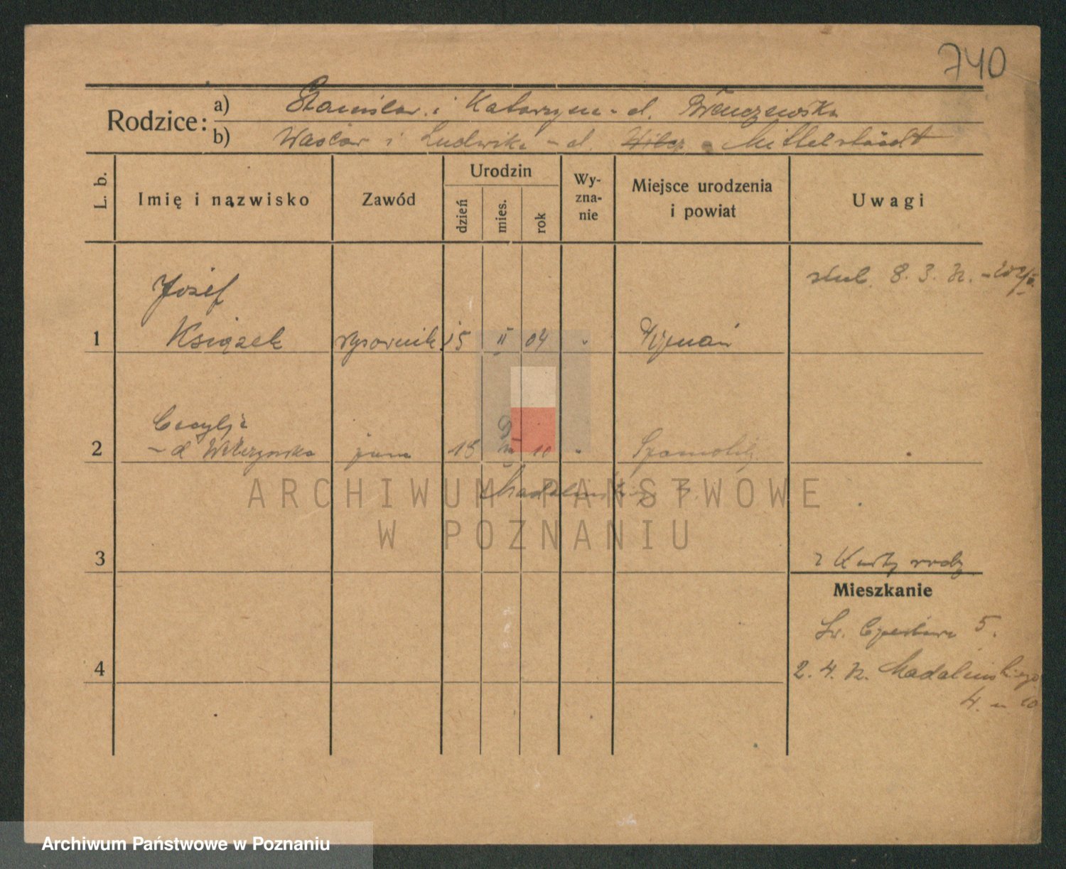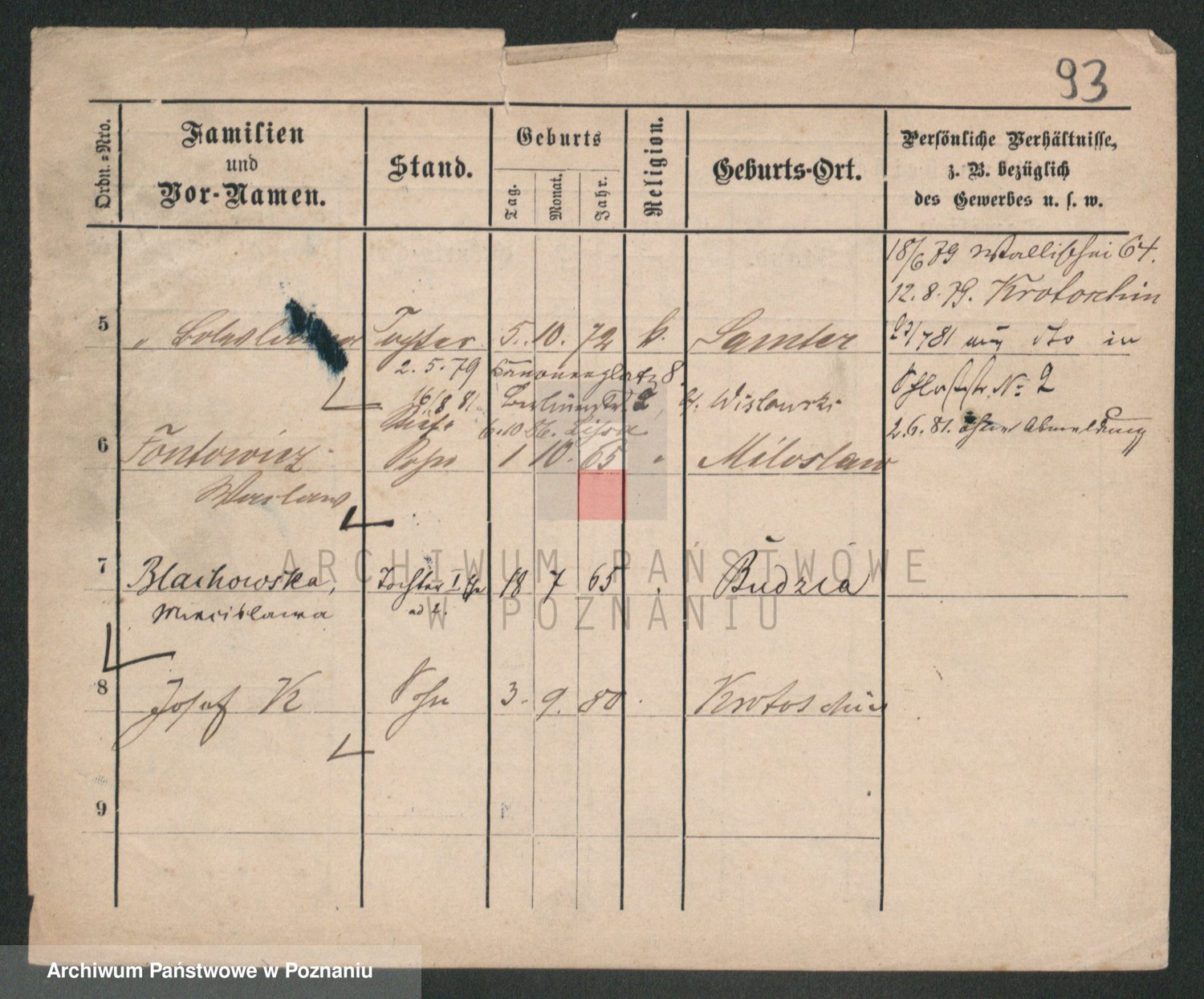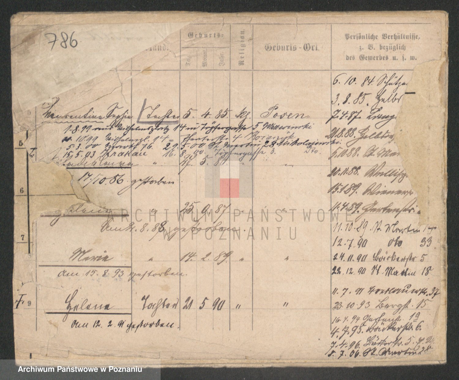 Podgląd karty osobowej dostępny jest po kliknięciu na nazwisko lub ikonkę karty. Można dokonywać powiększenia (ikony na górze) lub przechodzić między kolejnymi skanami (strzałki po bokach).
