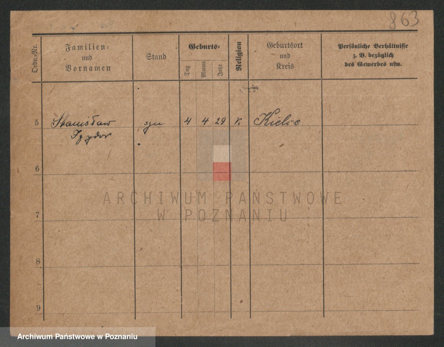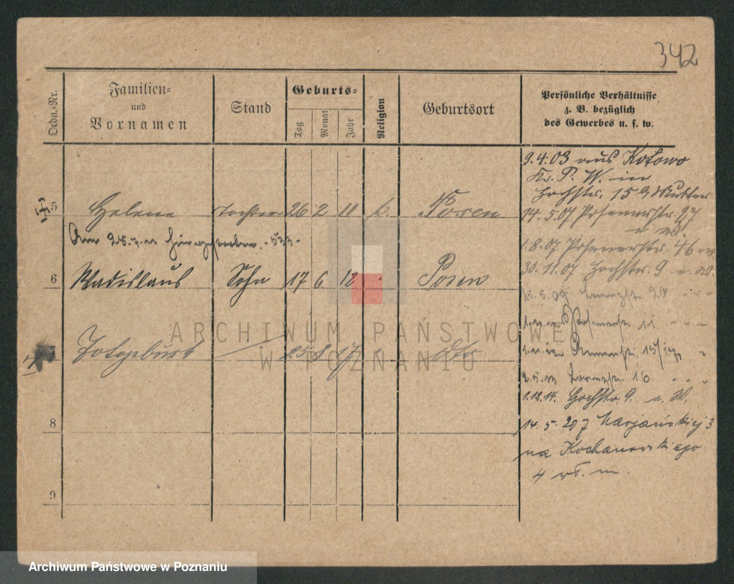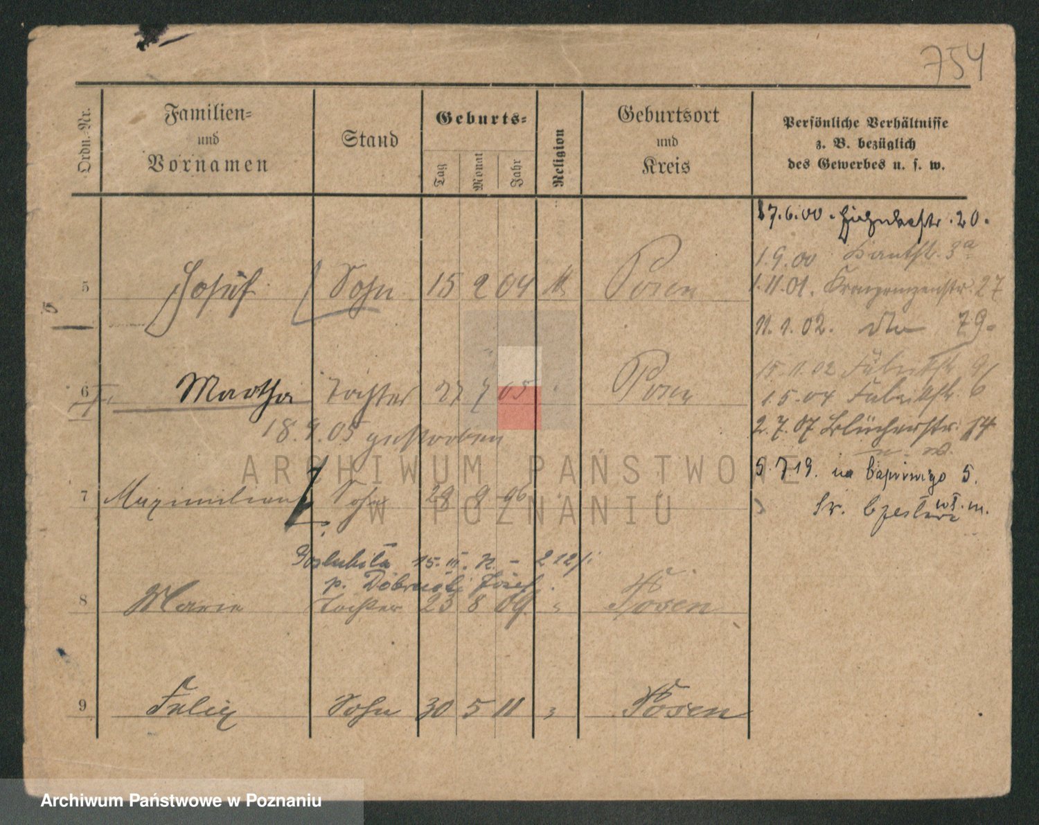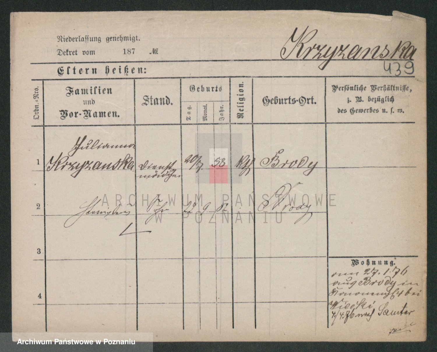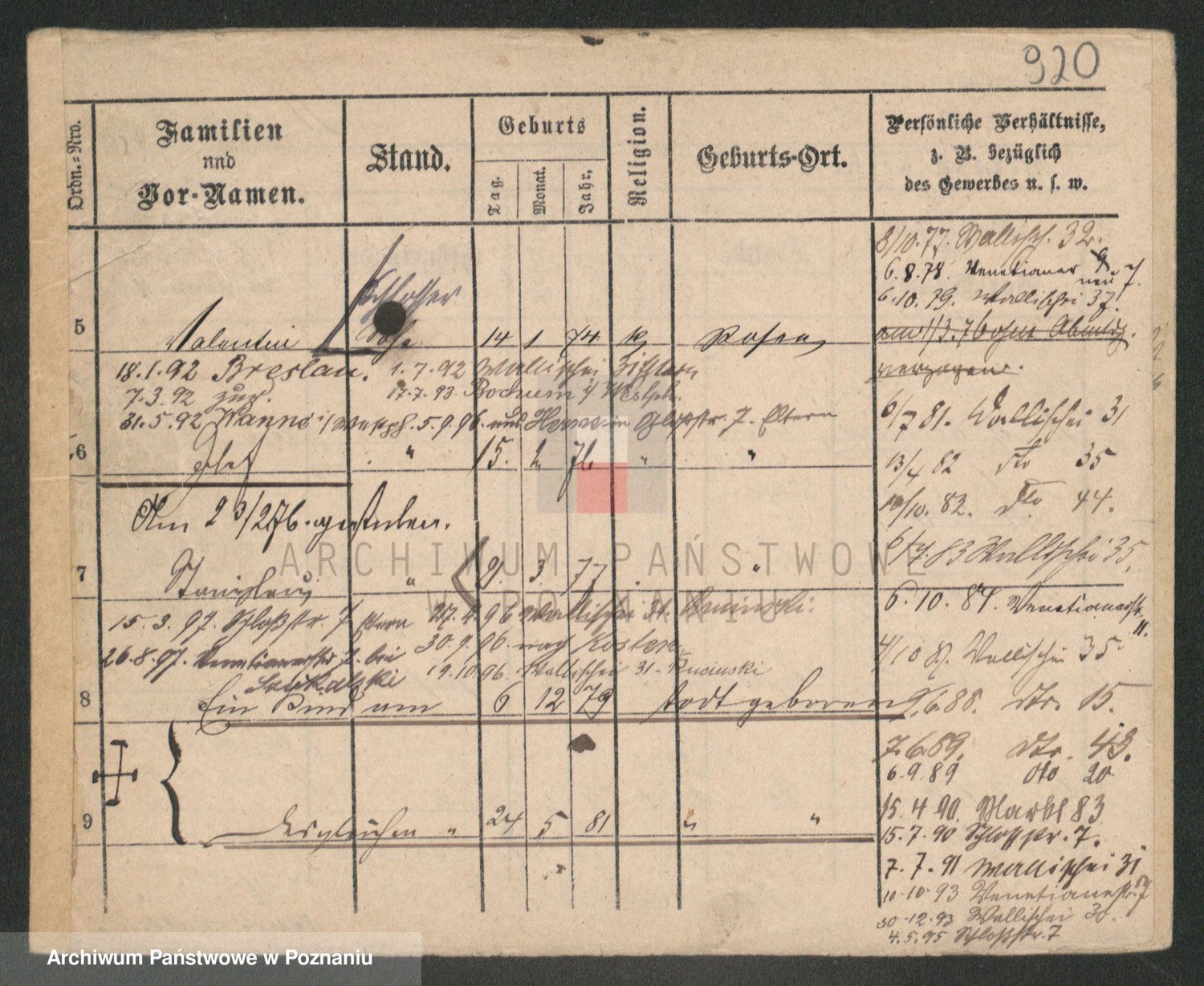 Podgląd karty osobowej dostępny jest po kliknięciu na nazwisko lub ikonkę karty. Można dokonywać powiększenia (ikony na górze) lub przechodzić między kolejnymi skanami (strzałki po bokach).