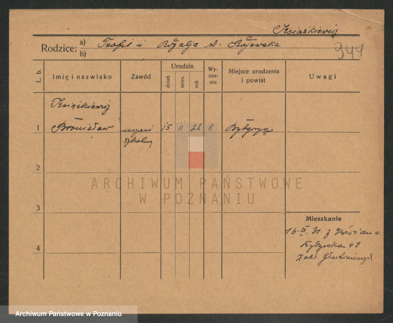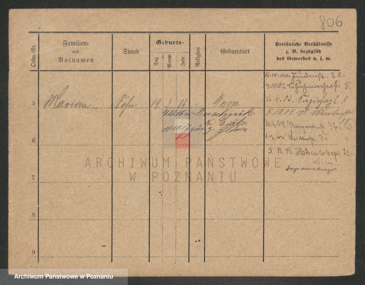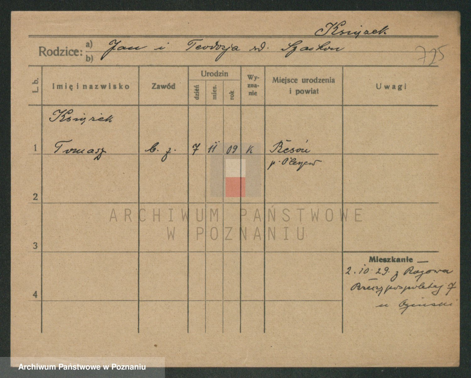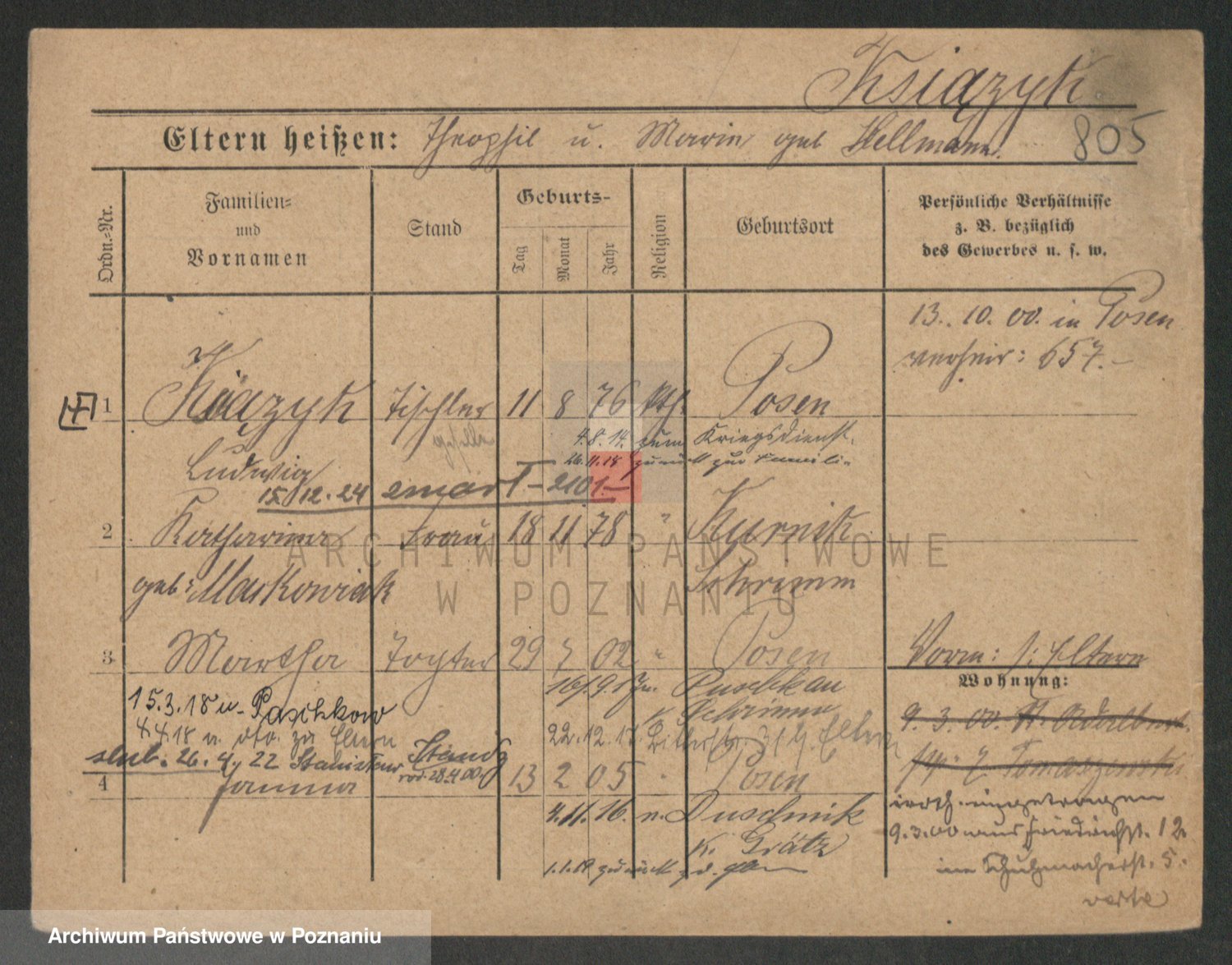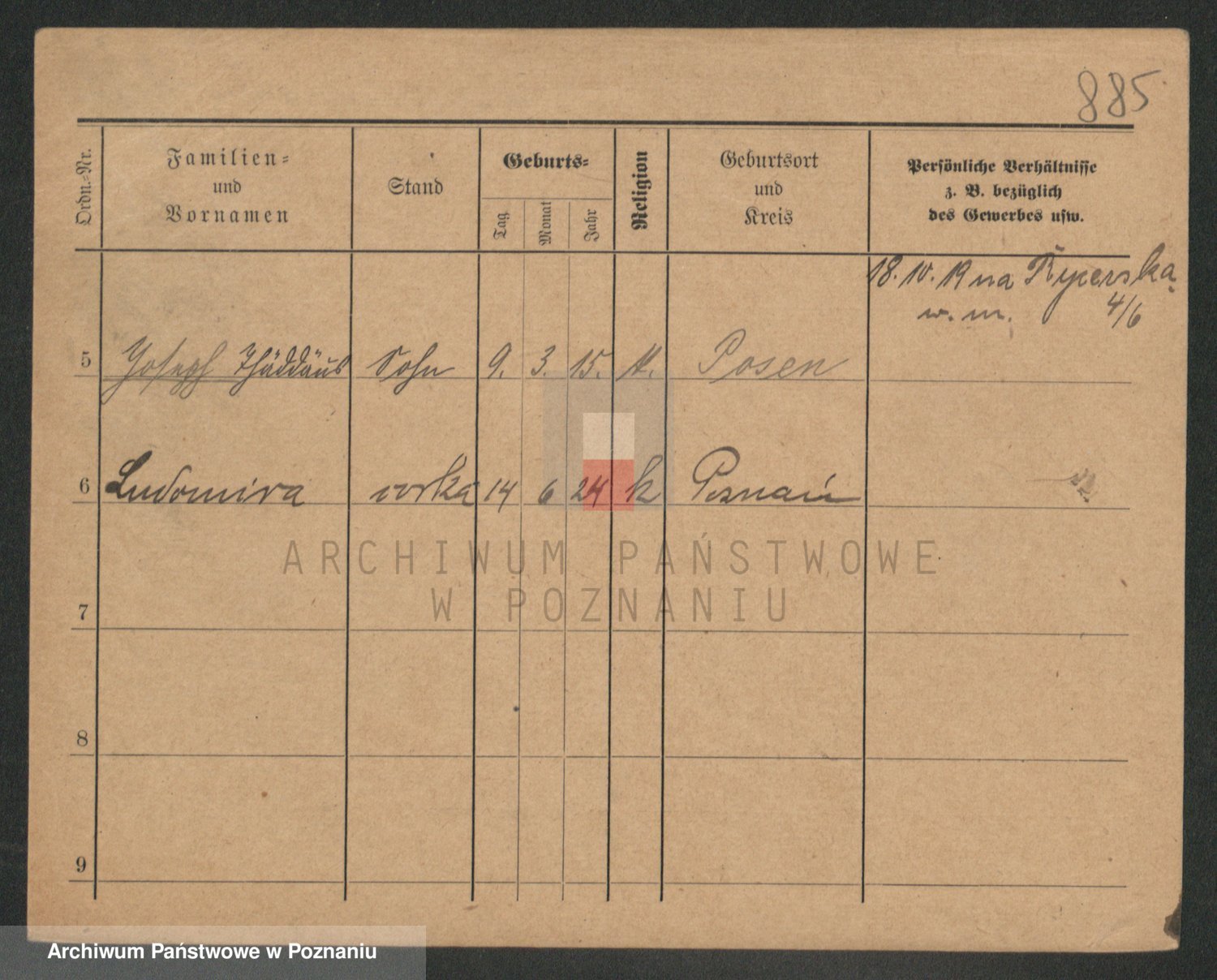 Podgląd karty osobowej dostępny jest po kliknięciu na nazwisko lub ikonkę karty. Można dokonywać powiększenia (ikony na górze) lub przechodzić między kolejnymi skanami (strzałki po bokach).