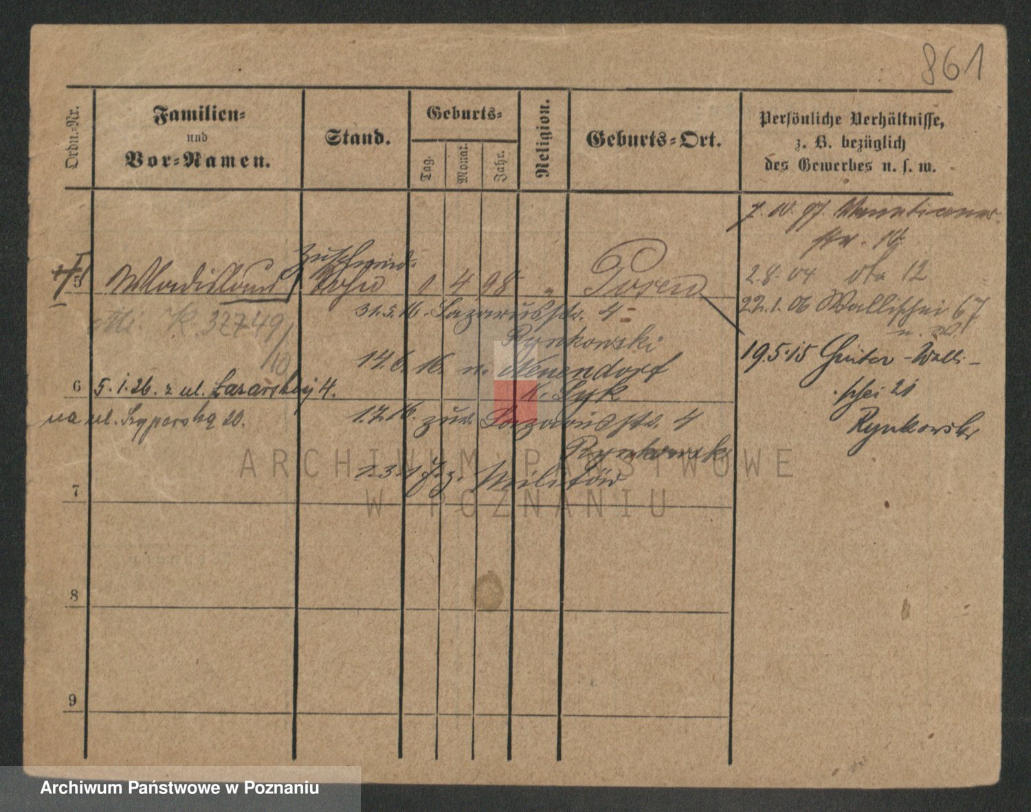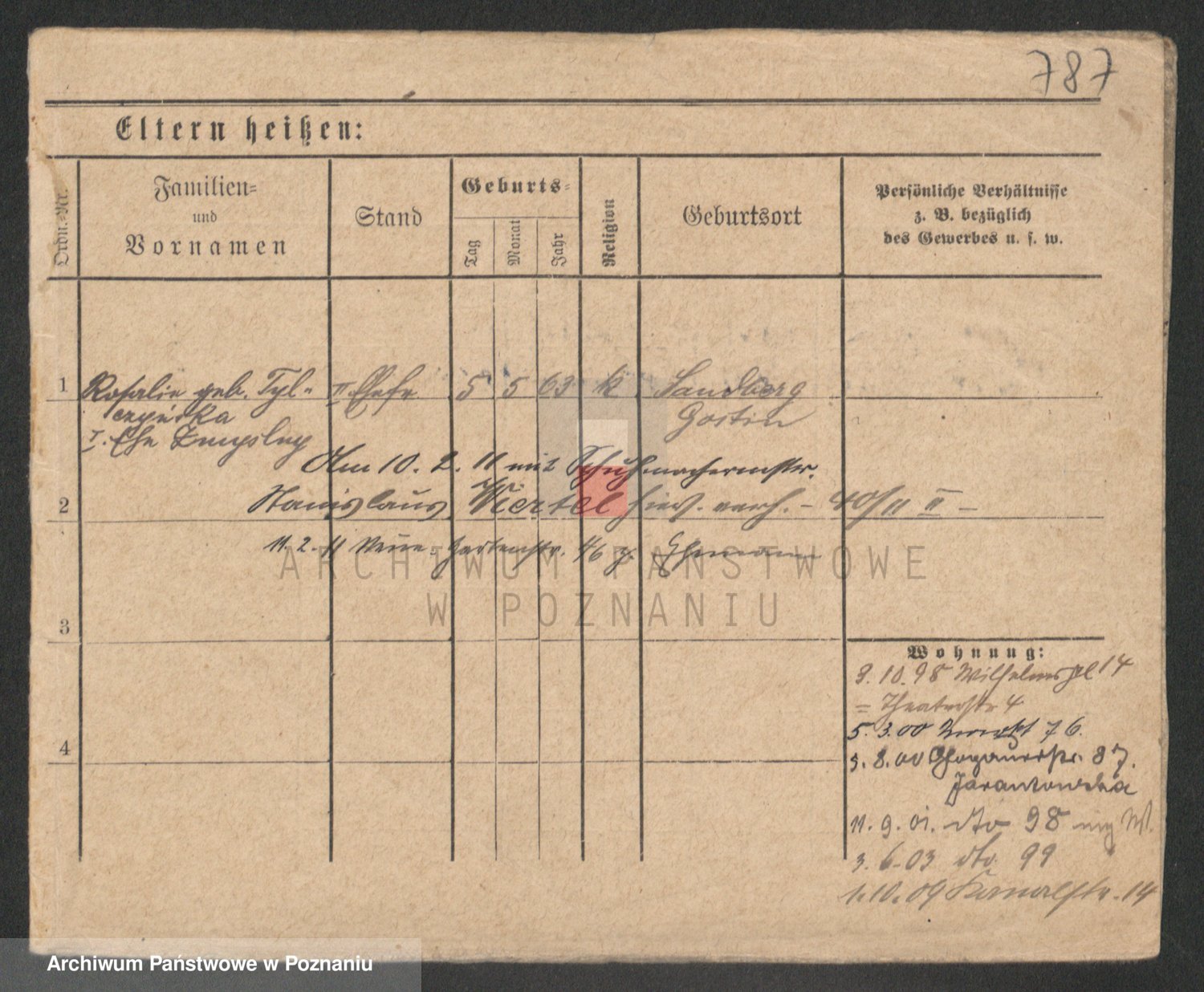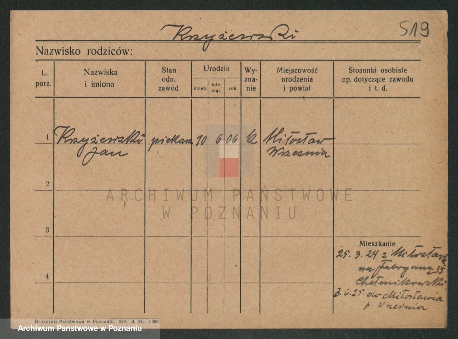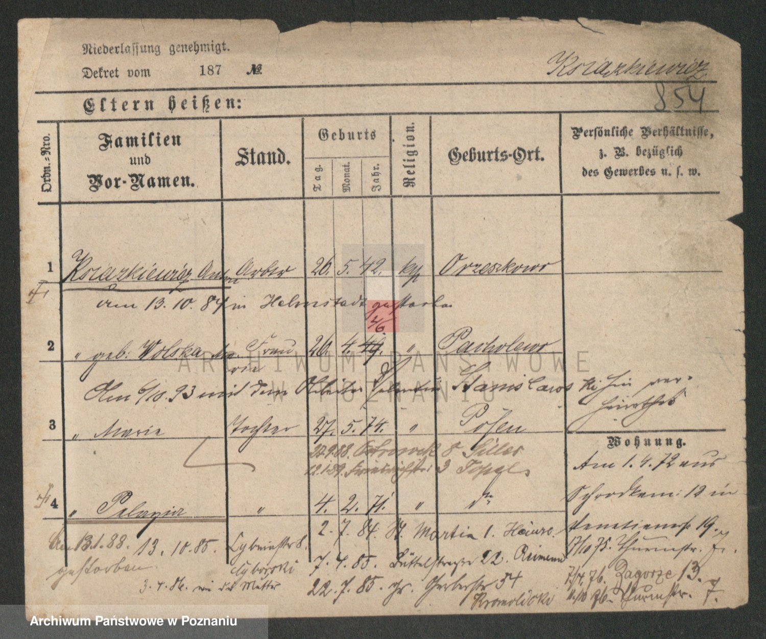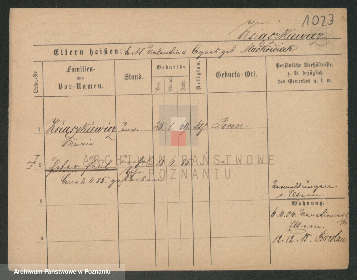 Podgląd karty osobowej dostępny jest po kliknięciu na nazwisko lub ikonkę karty. Można dokonywać powiększenia (ikony na górze) lub przechodzić między kolejnymi skanami (strzałki po bokach).