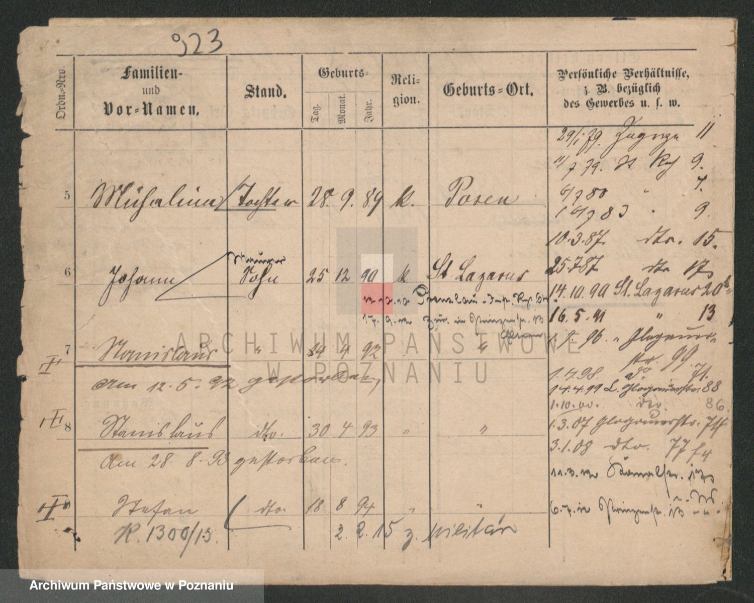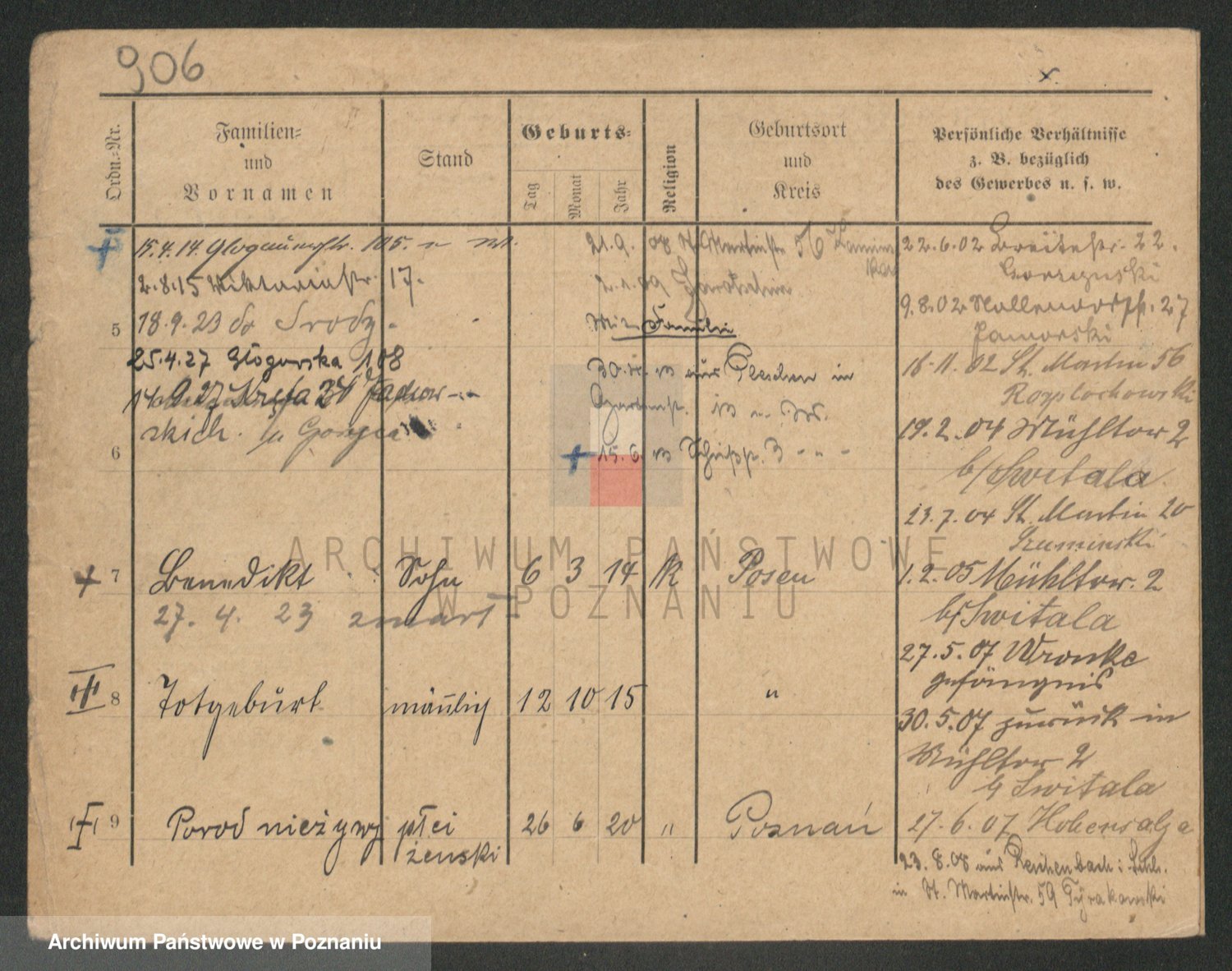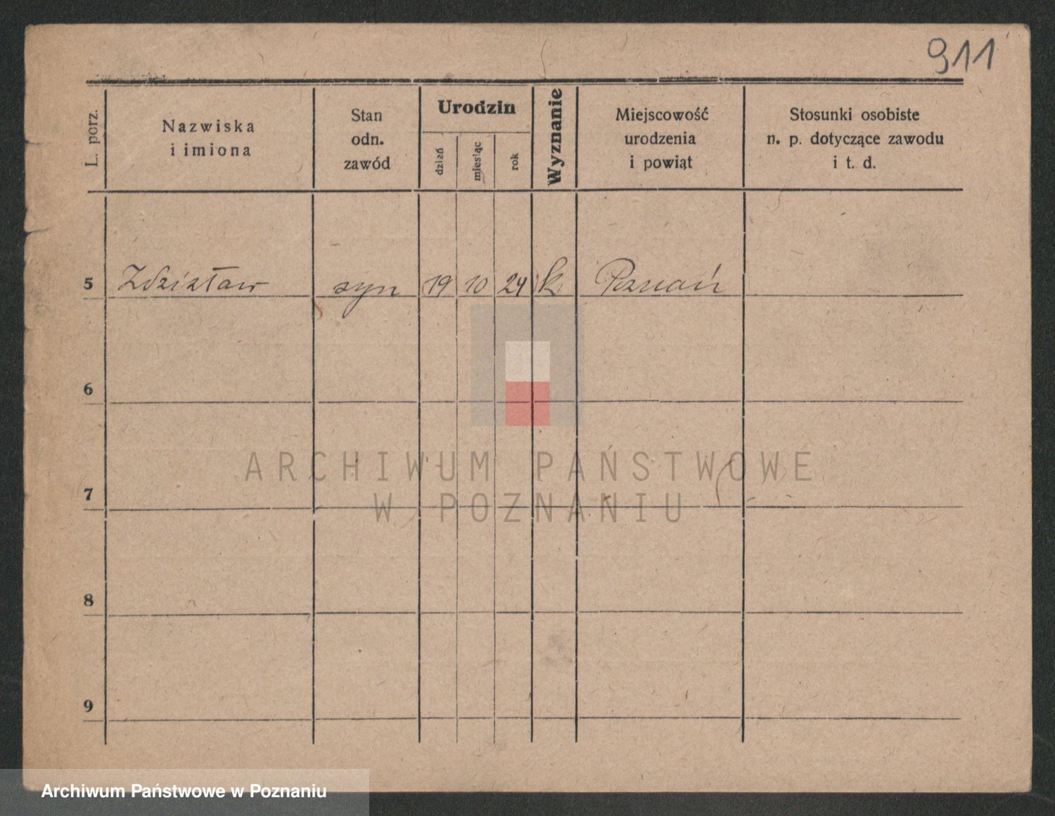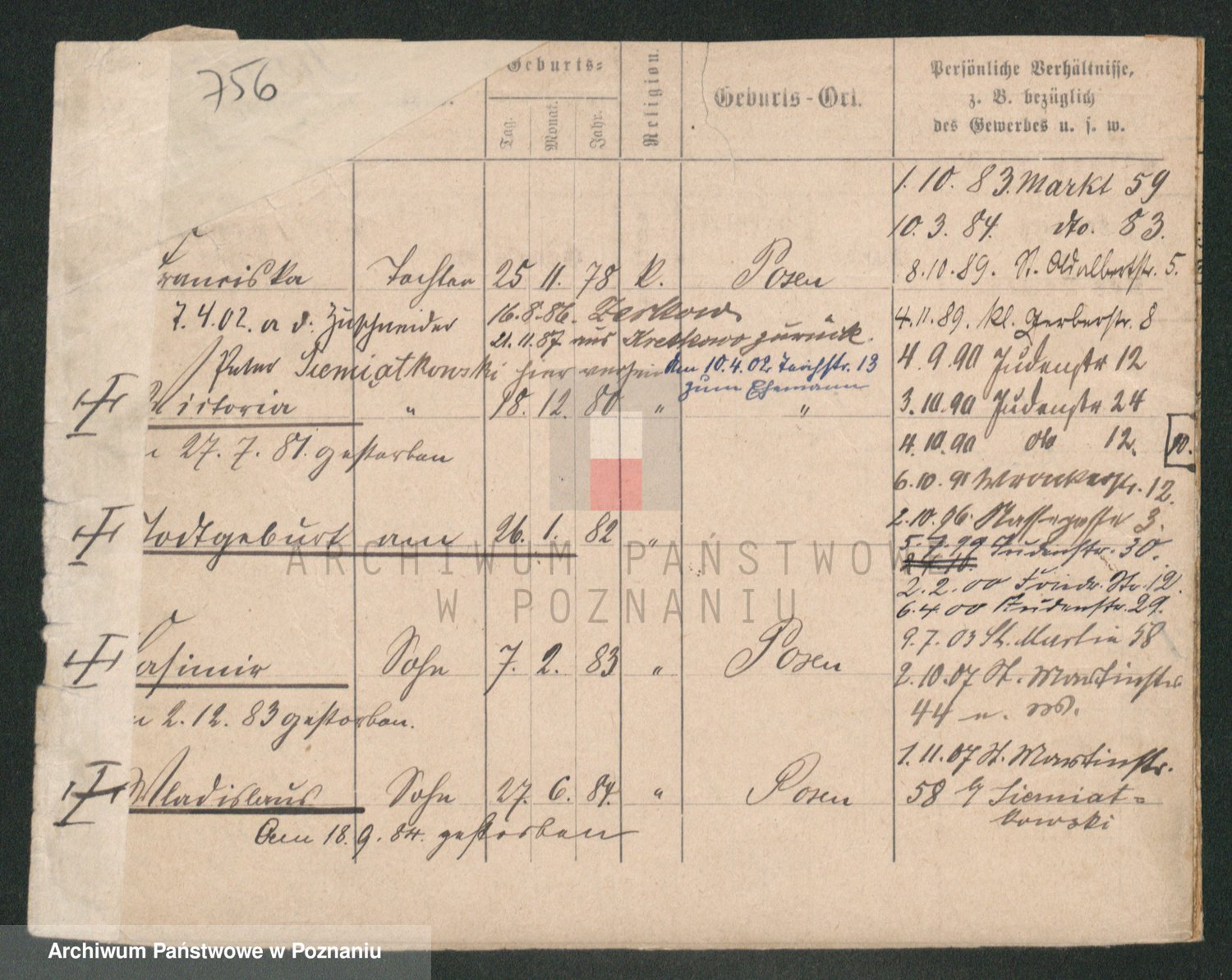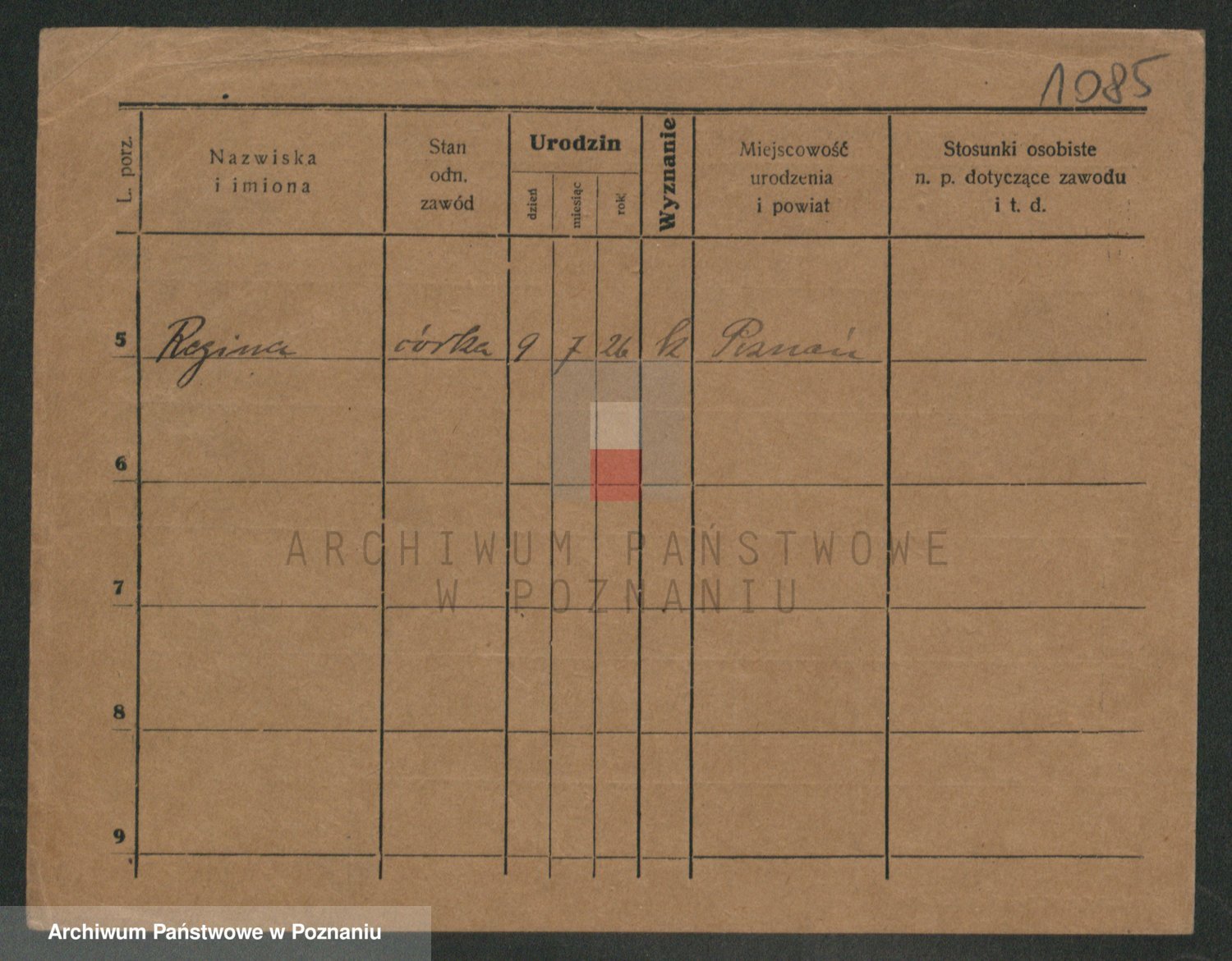 Podgląd karty osobowej dostępny jest po kliknięciu na nazwisko lub ikonkę karty. Można dokonywać powiększenia (ikony na górze) lub przechodzić między kolejnymi skanami (strzałki po bokach).