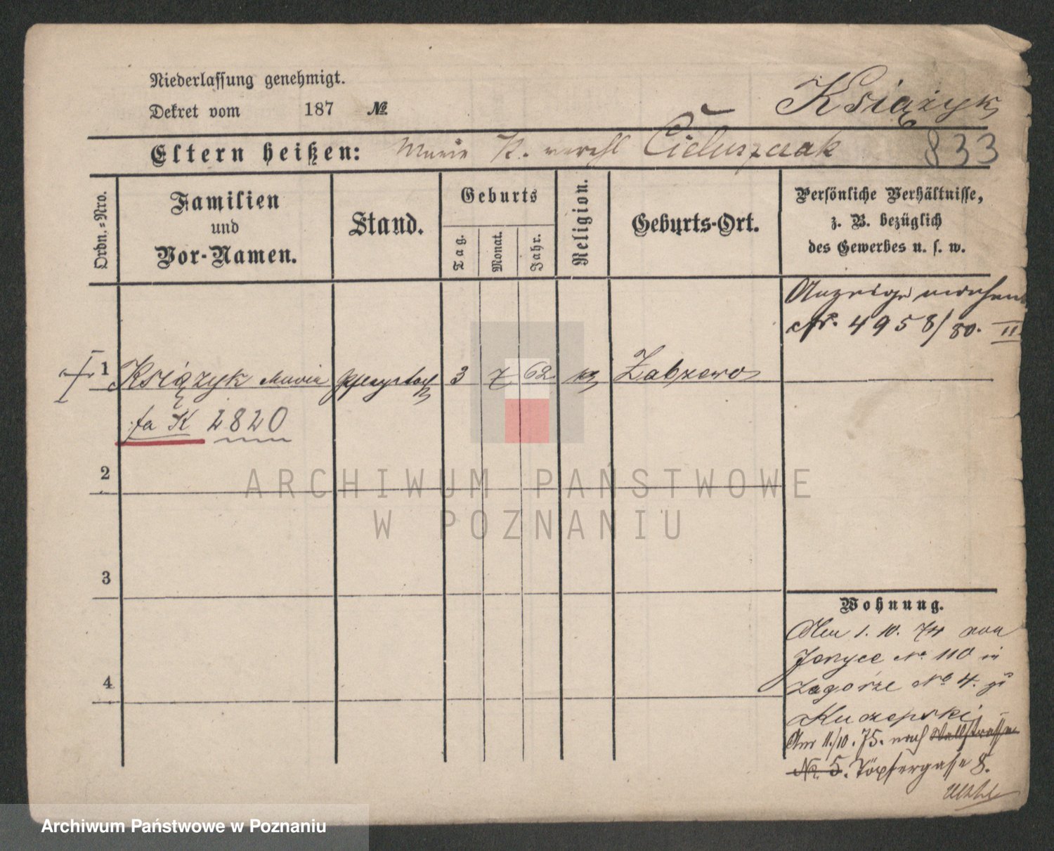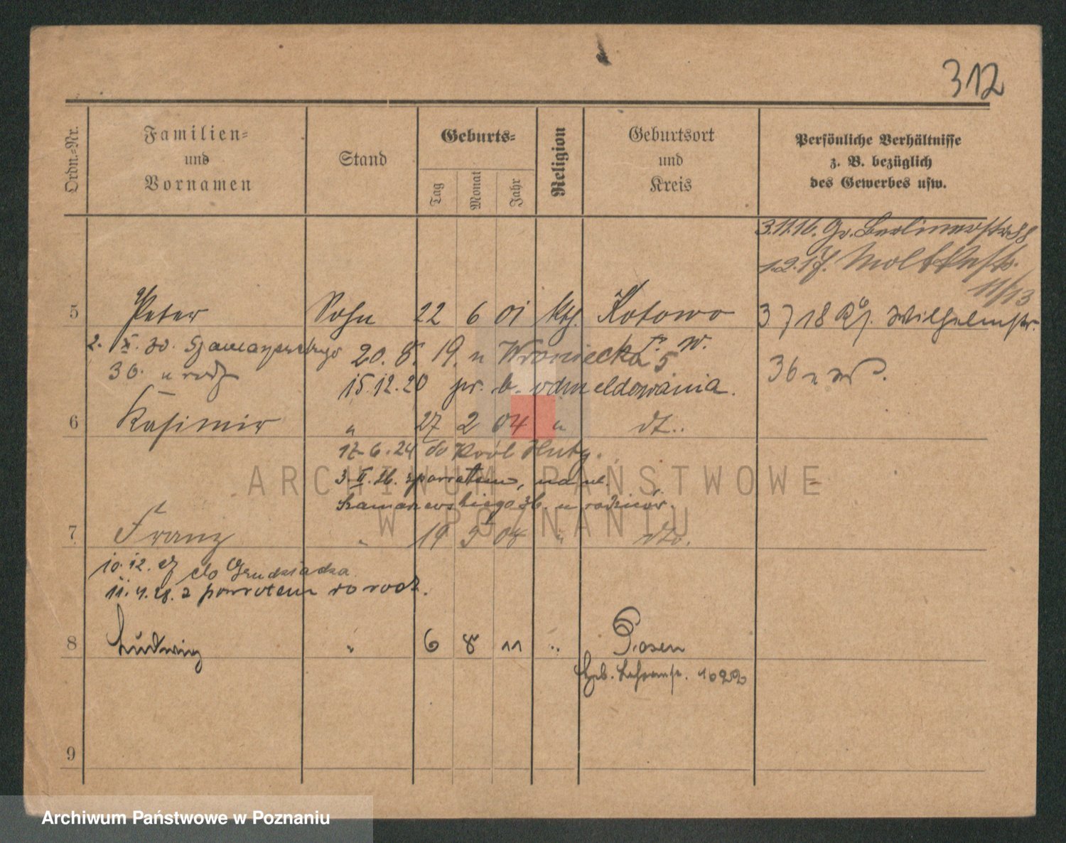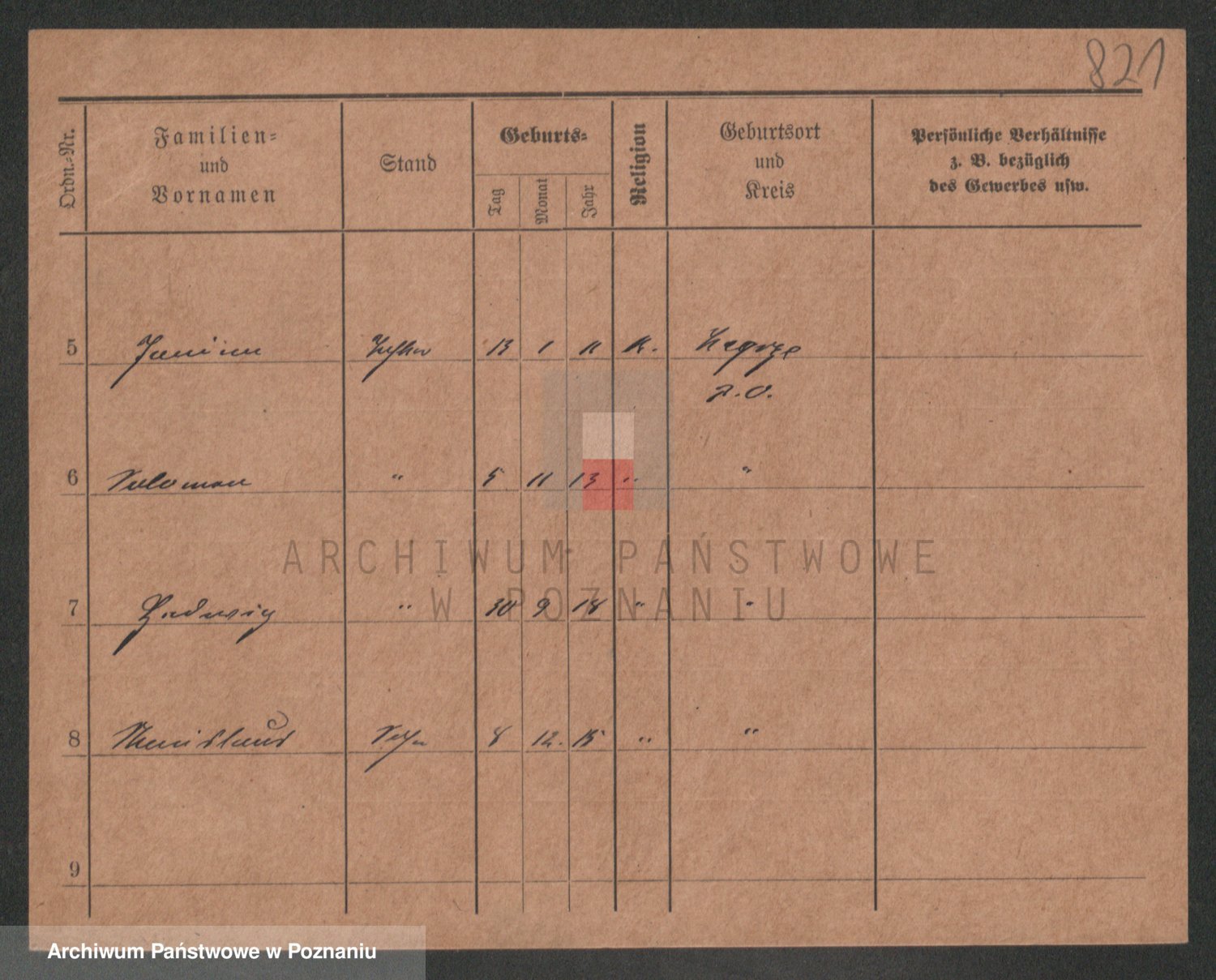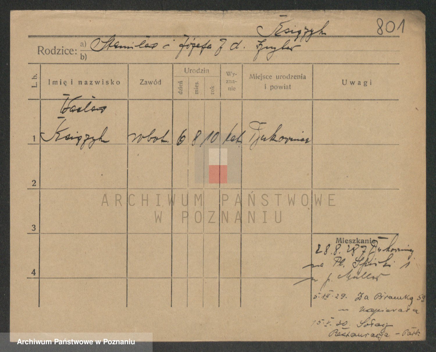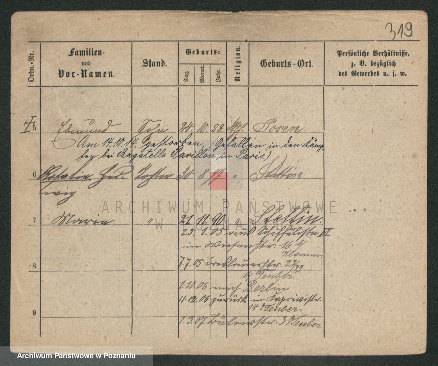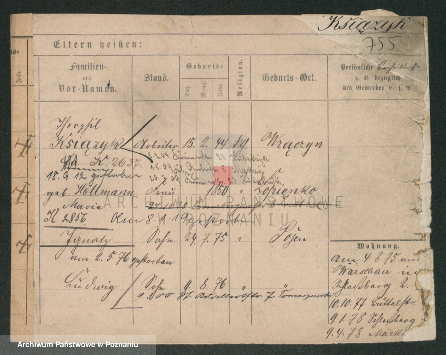 Podgląd karty osobowej dostępny jest po kliknięciu na nazwisko lub ikonkę karty. Można dokonywać powiększenia (ikony na górze) lub przechodzić między kolejnymi skanami (strzałki po bokach).