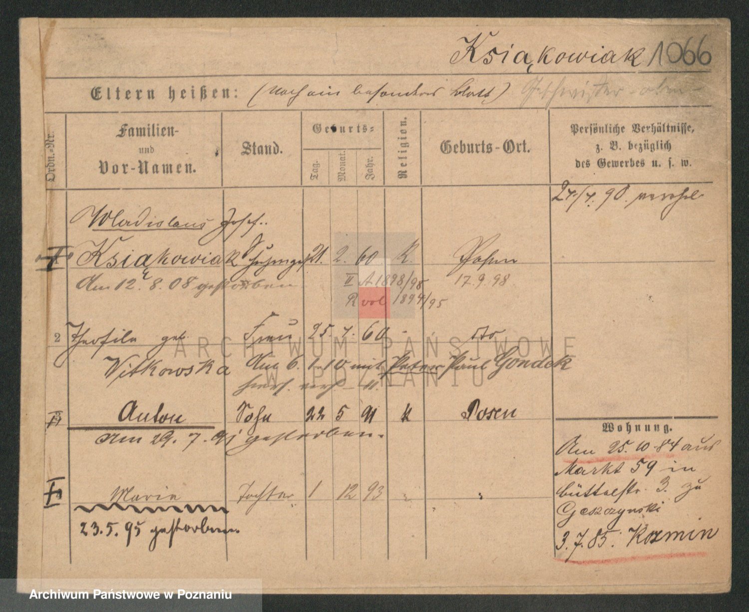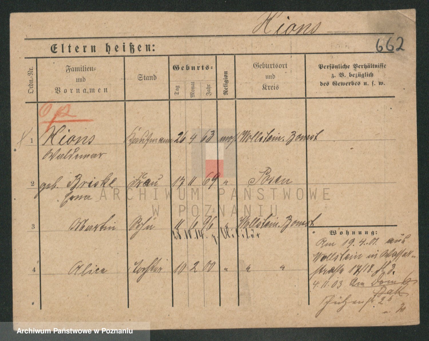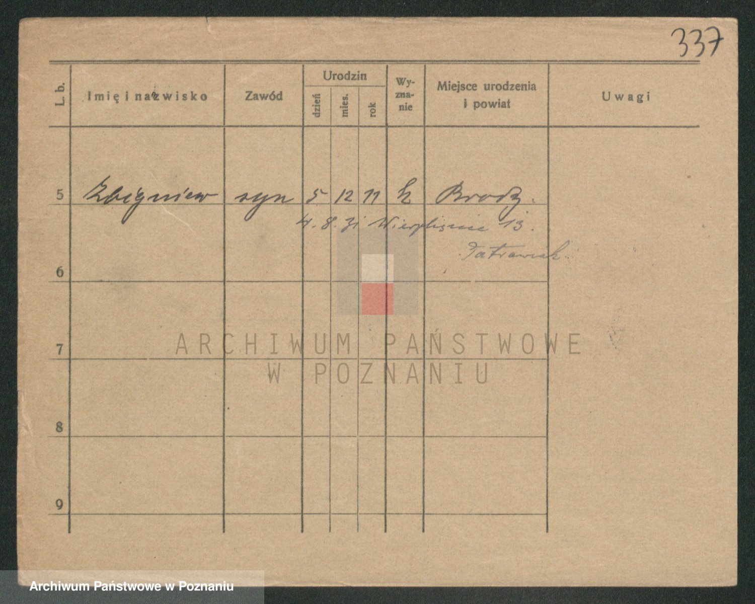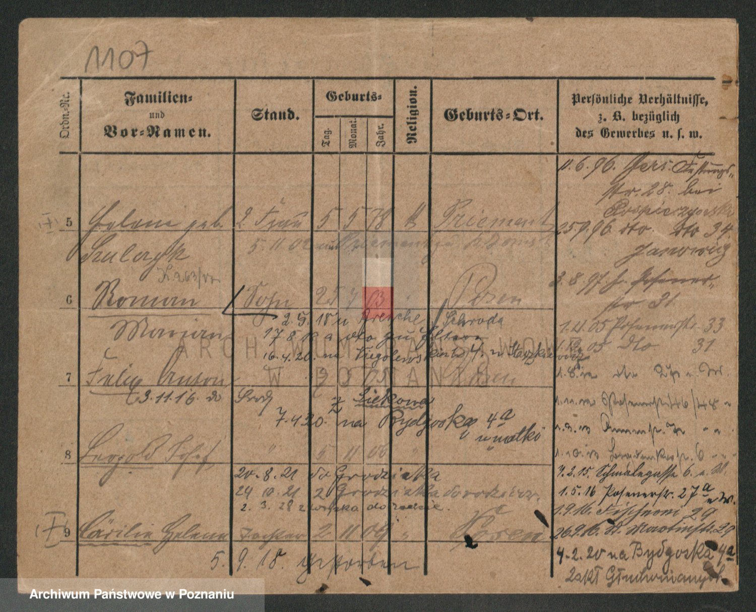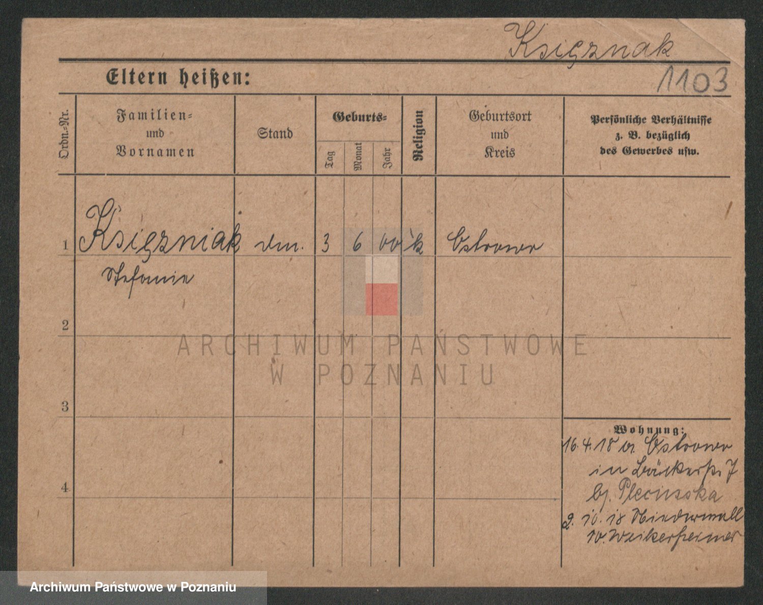 Podgląd karty osobowej dostępny jest po kliknięciu na nazwisko lub ikonkę karty. Można dokonywać powiększenia (ikony na górze) lub przechodzić między kolejnymi skanami (strzałki po bokach).