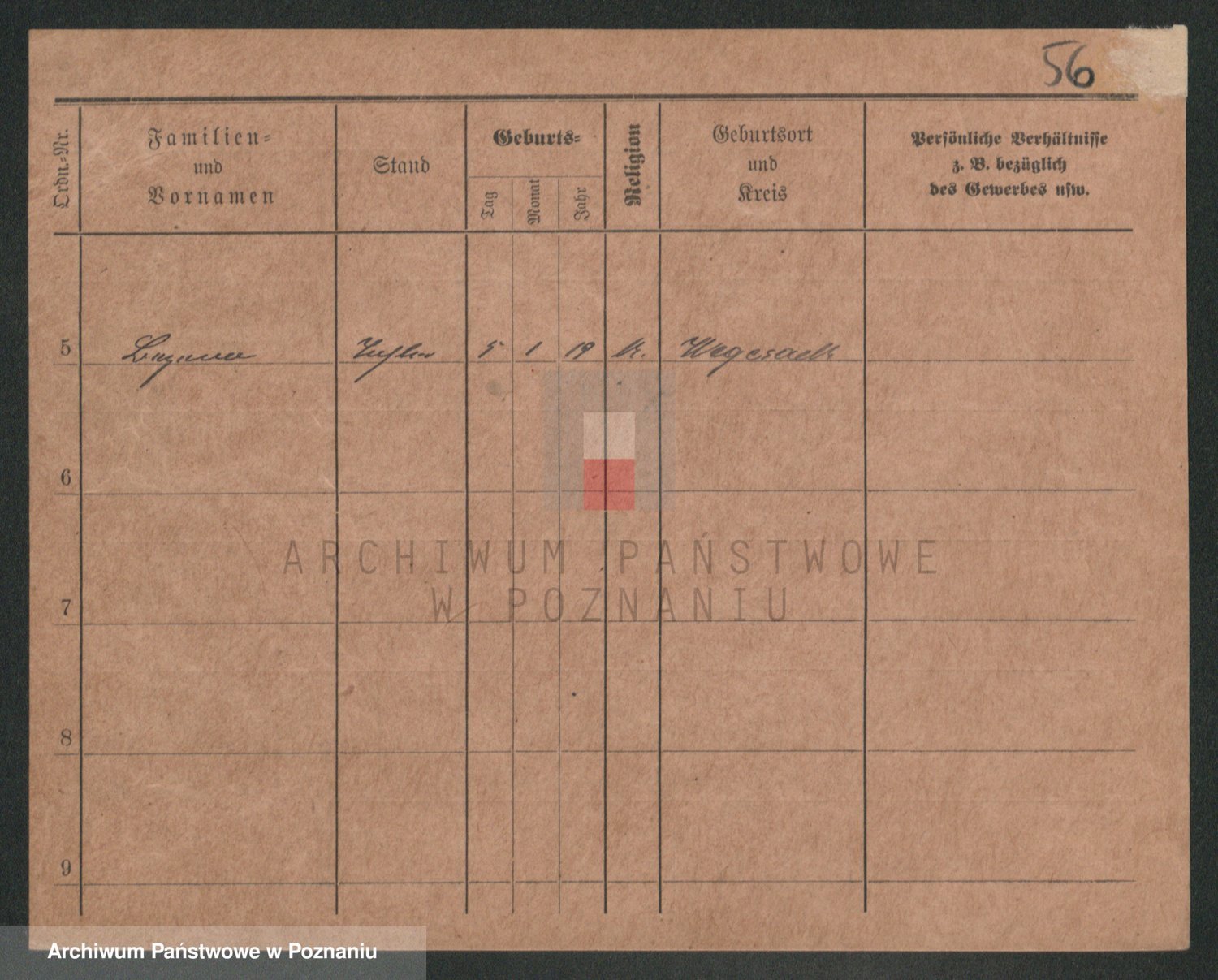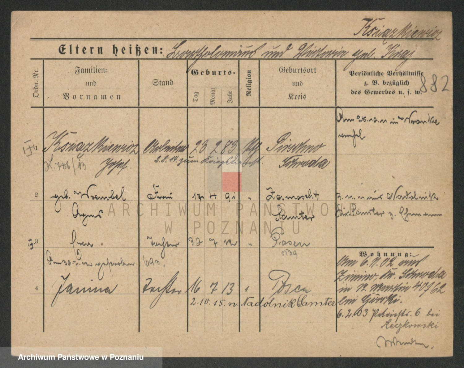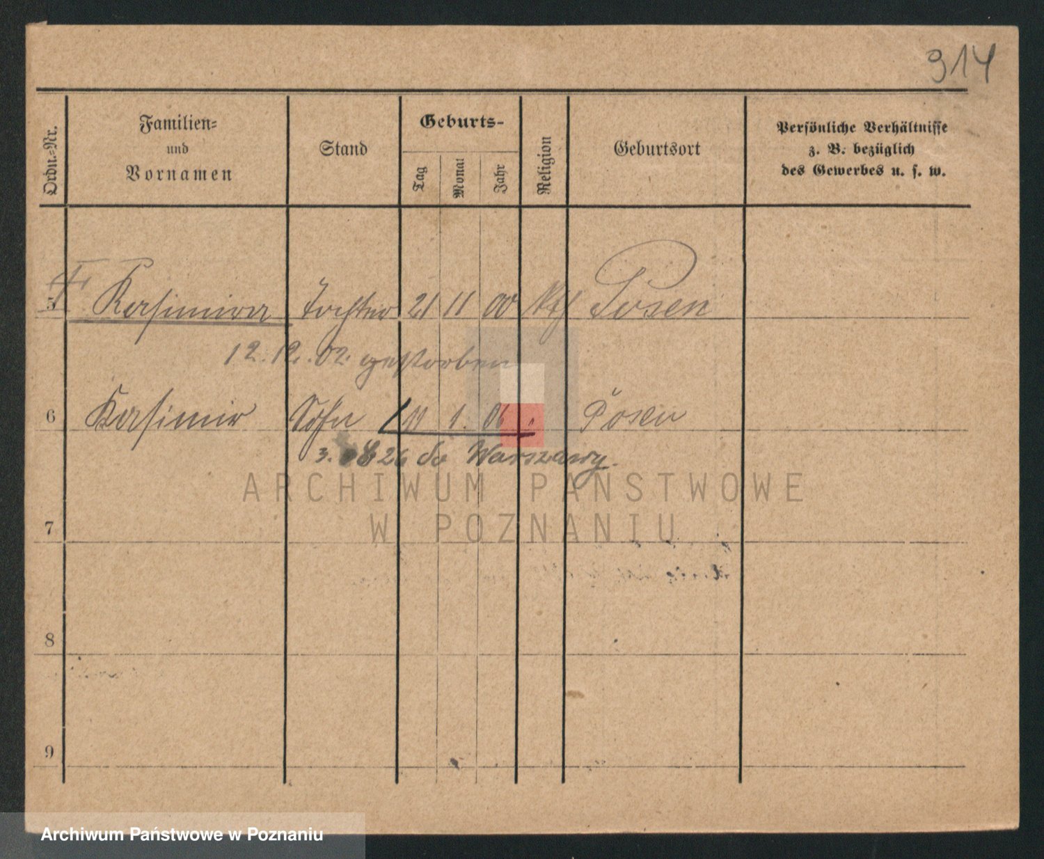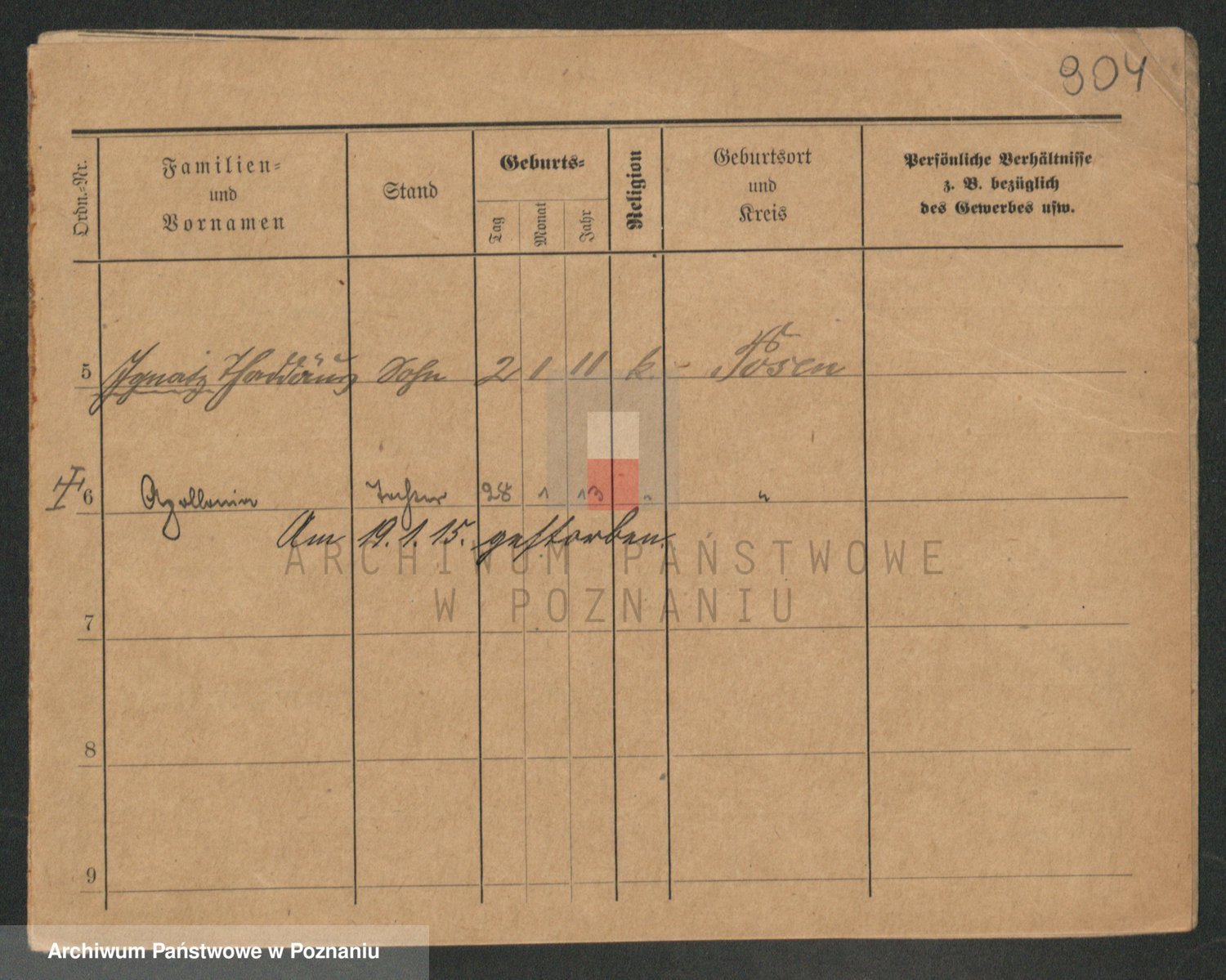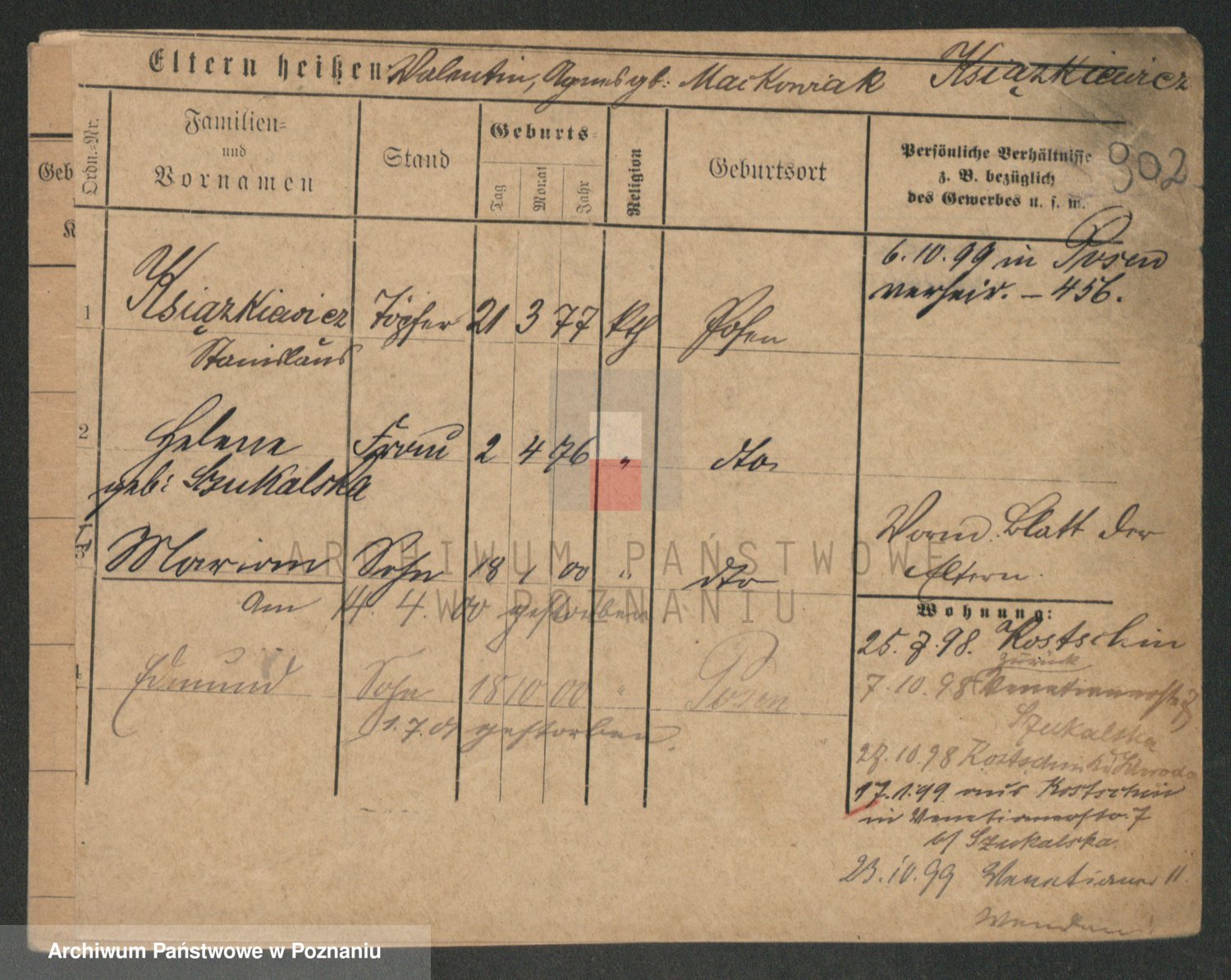 Podgląd karty osobowej dostępny jest po kliknięciu na nazwisko lub ikonkę karty. Można dokonywać powiększenia (ikony na górze) lub przechodzić między kolejnymi skanami (strzałki po bokach).