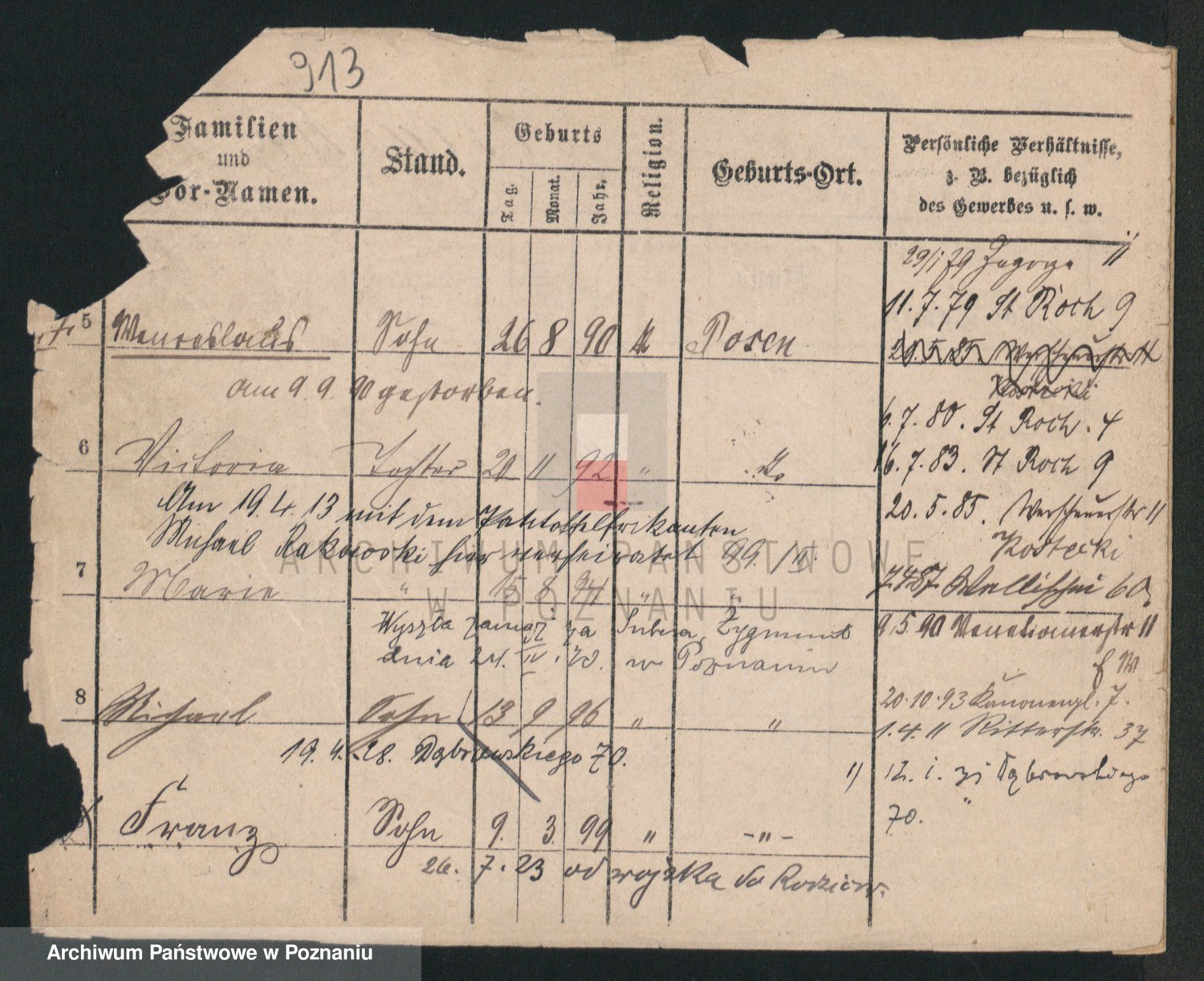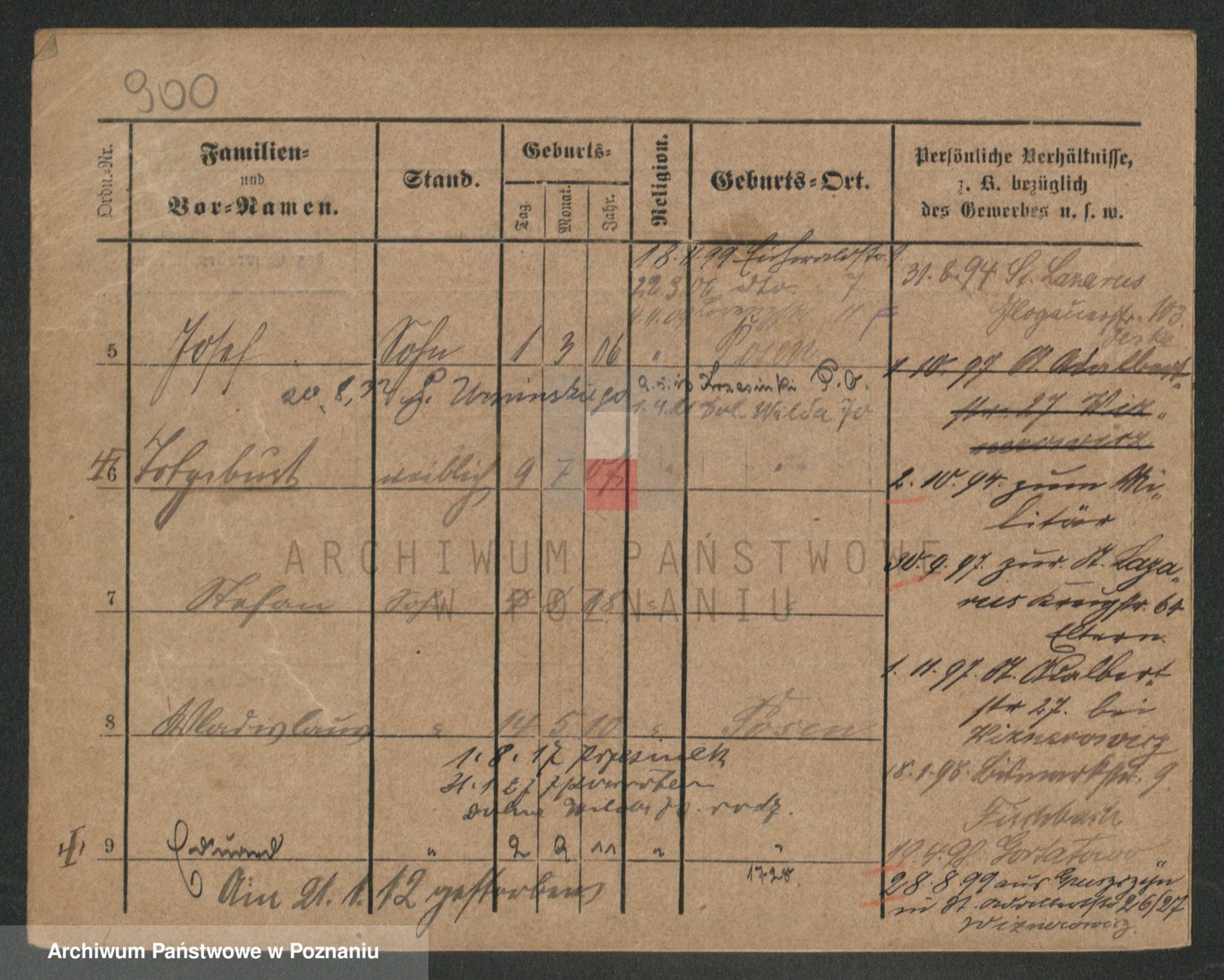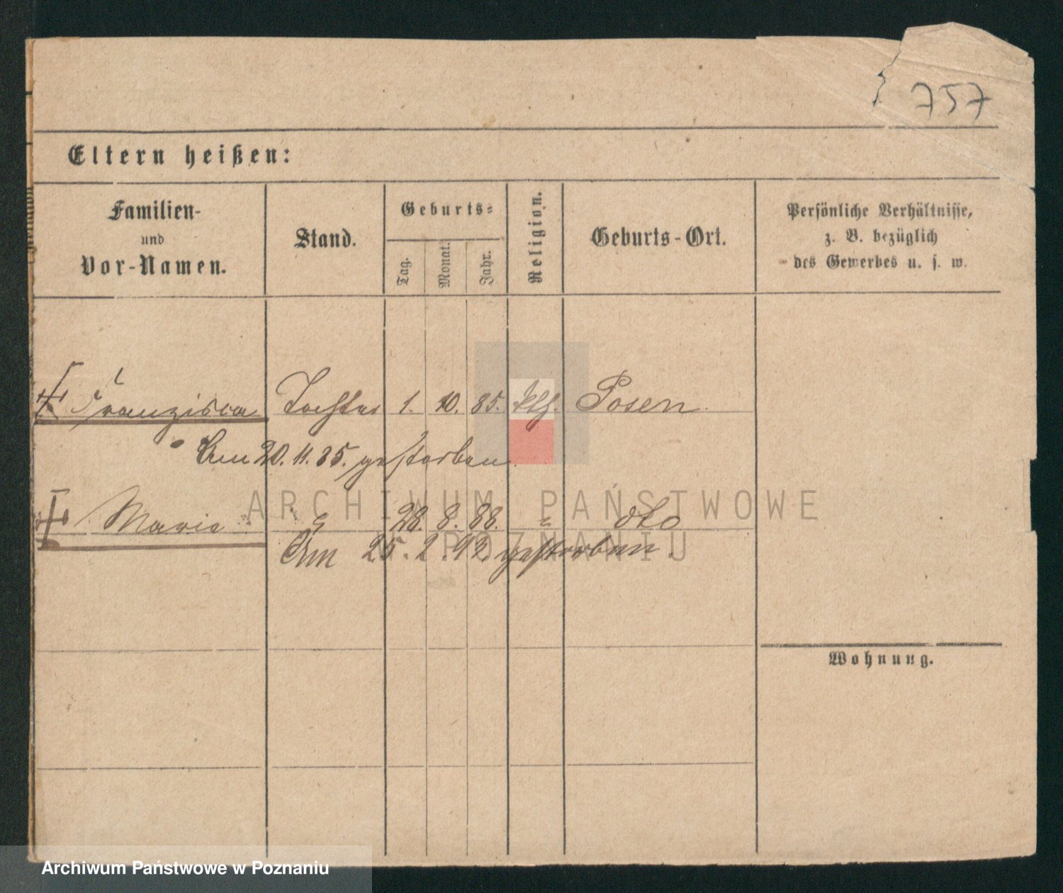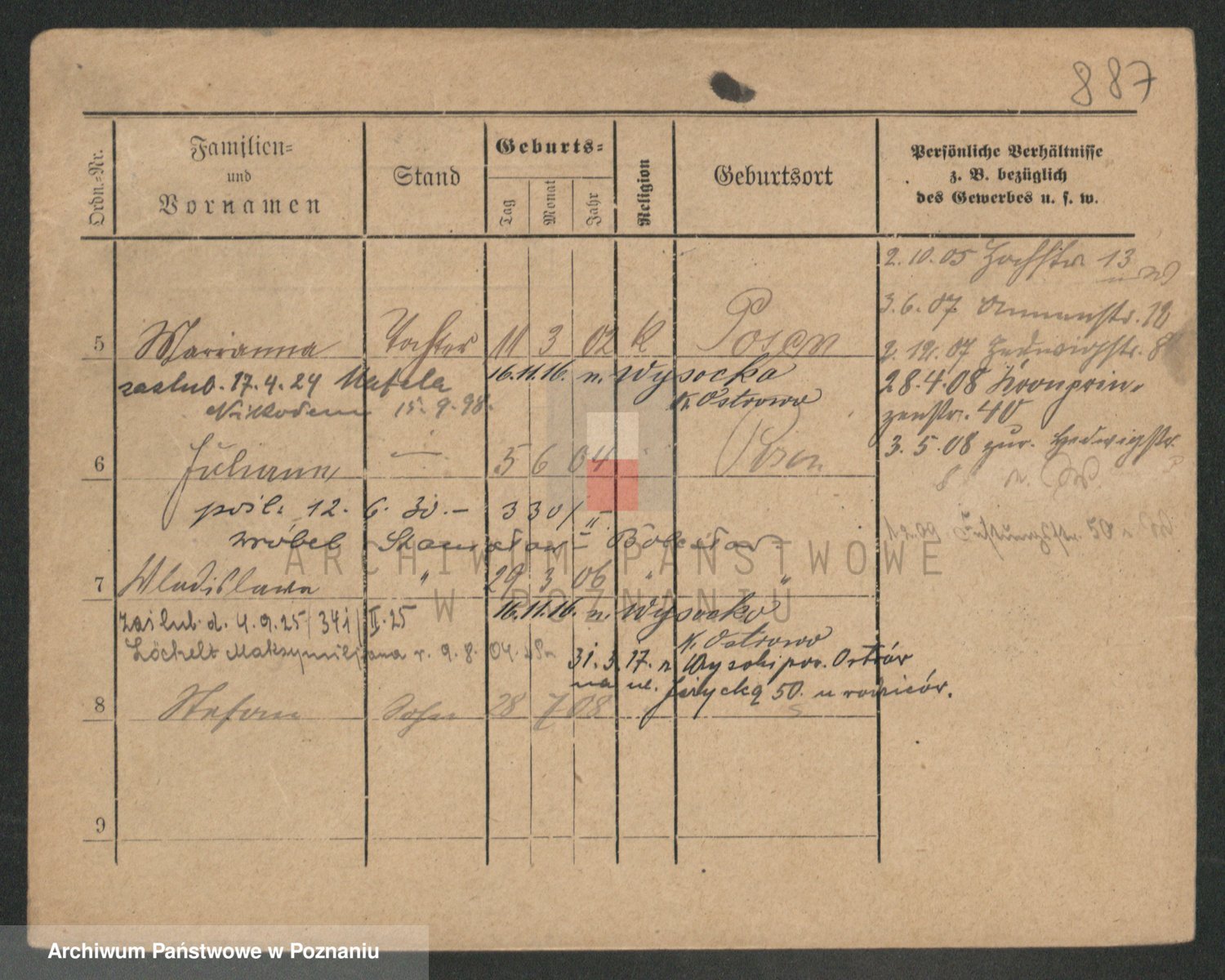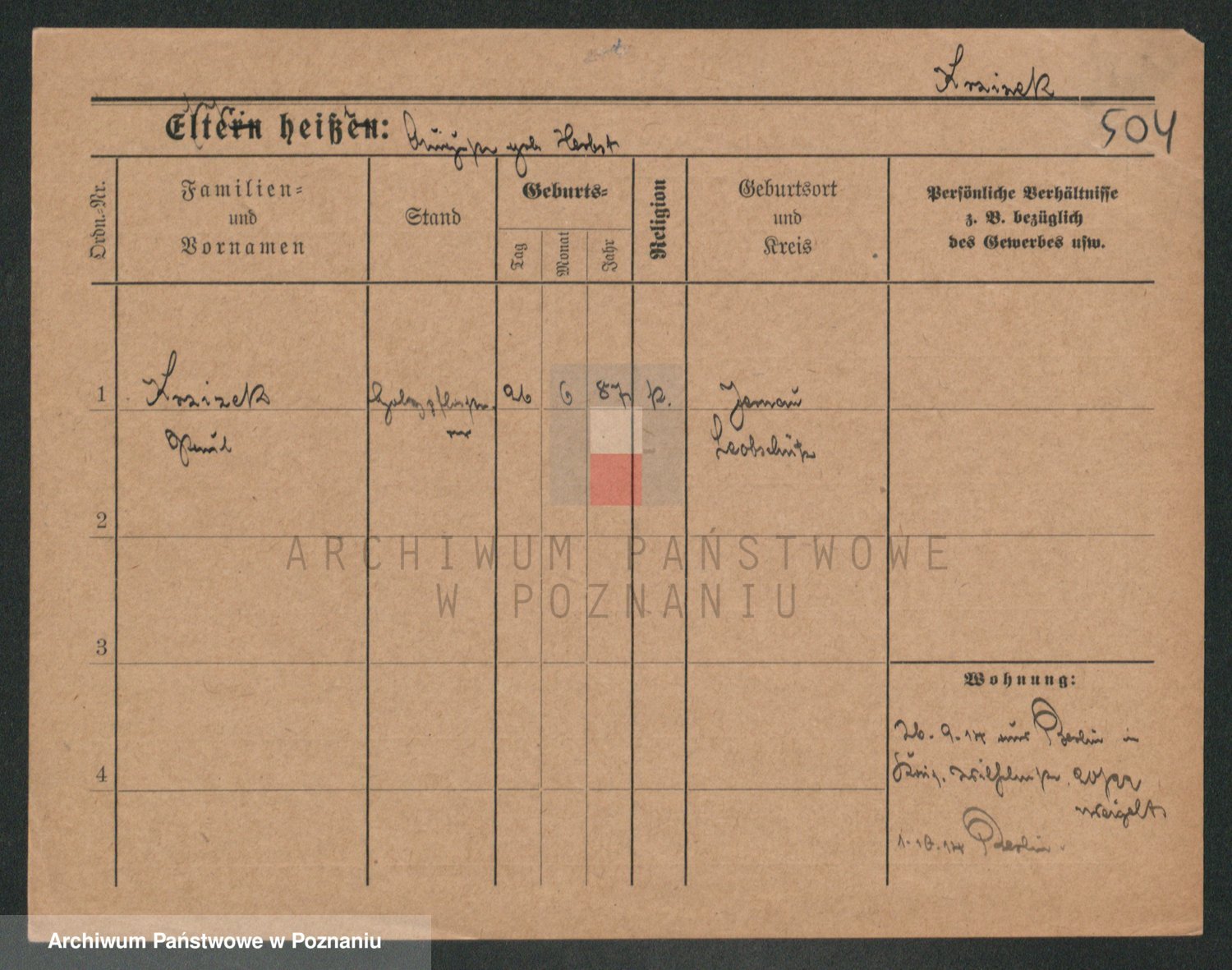 Podgląd karty osobowej dostępny jest po kliknięciu na nazwisko lub ikonkę karty. Można dokonywać powiększenia (ikony na górze) lub przechodzić między kolejnymi skanami (strzałki po bokach).