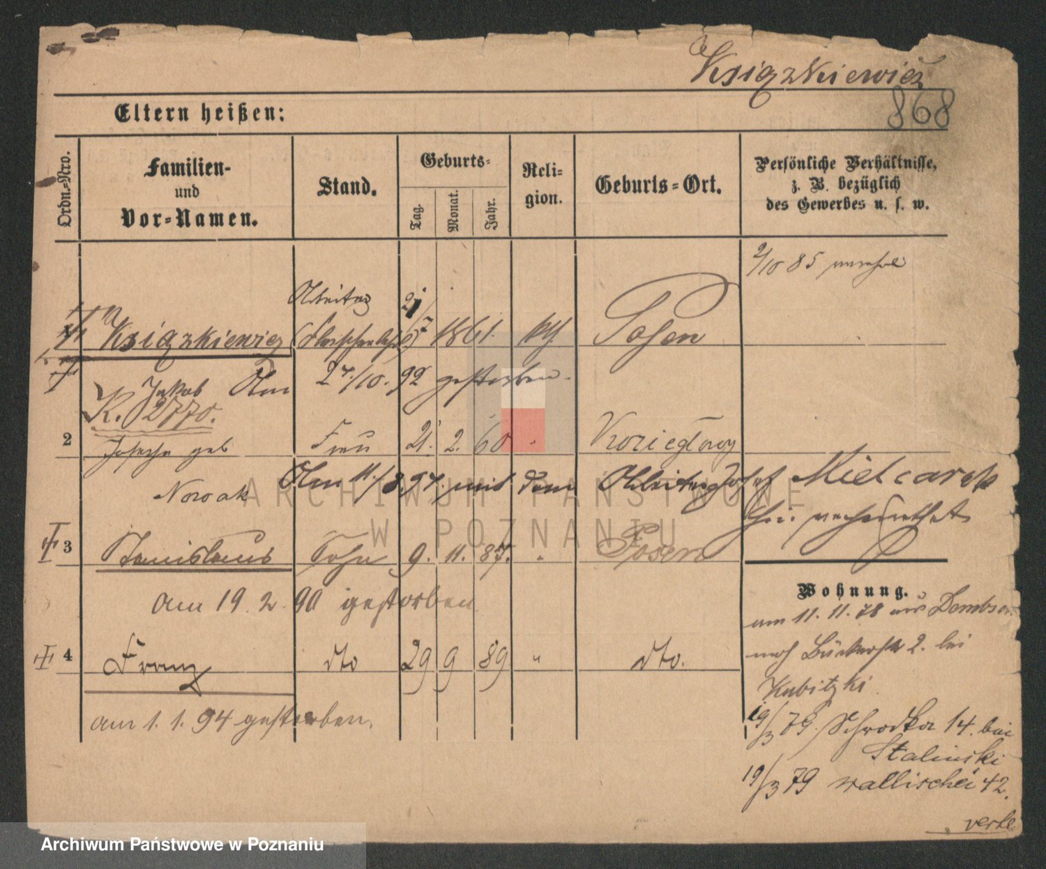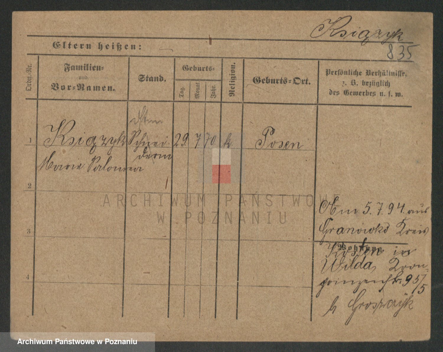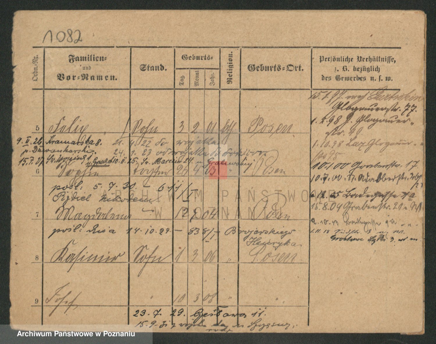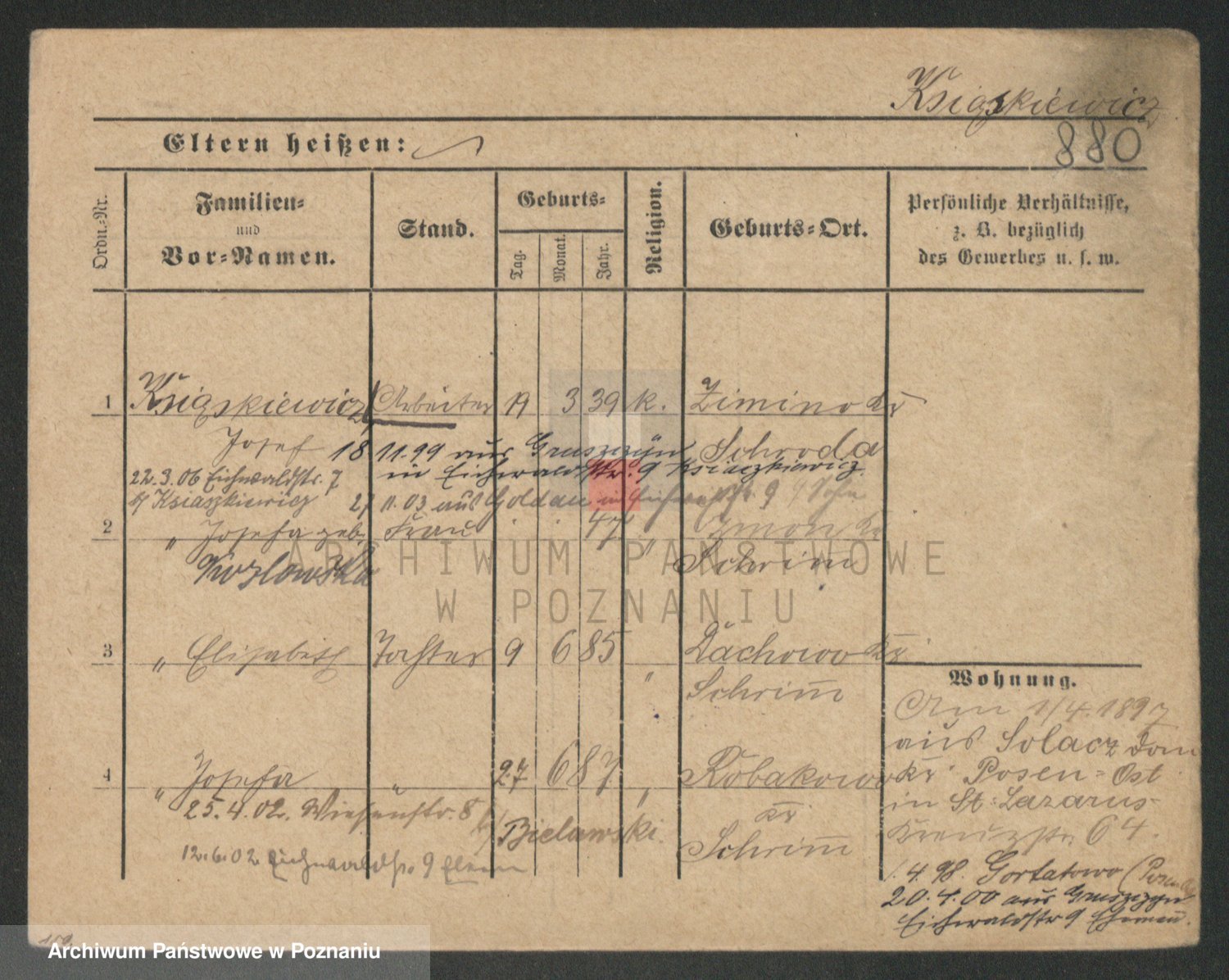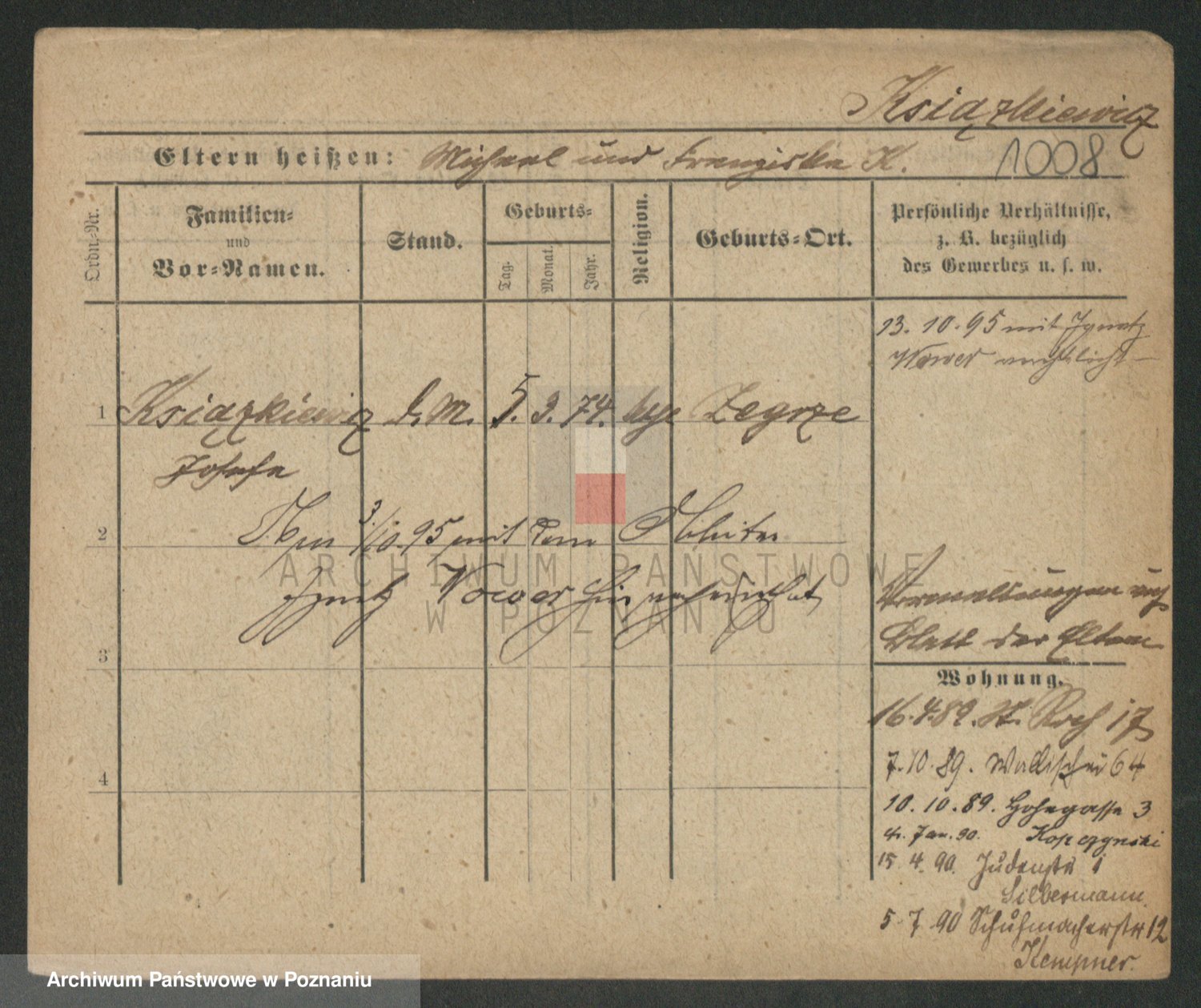 Podgląd karty osobowej dostępny jest po kliknięciu na nazwisko lub ikonkę karty. Można dokonywać powiększenia (ikony na górze) lub przechodzić między kolejnymi skanami (strzałki po bokach).