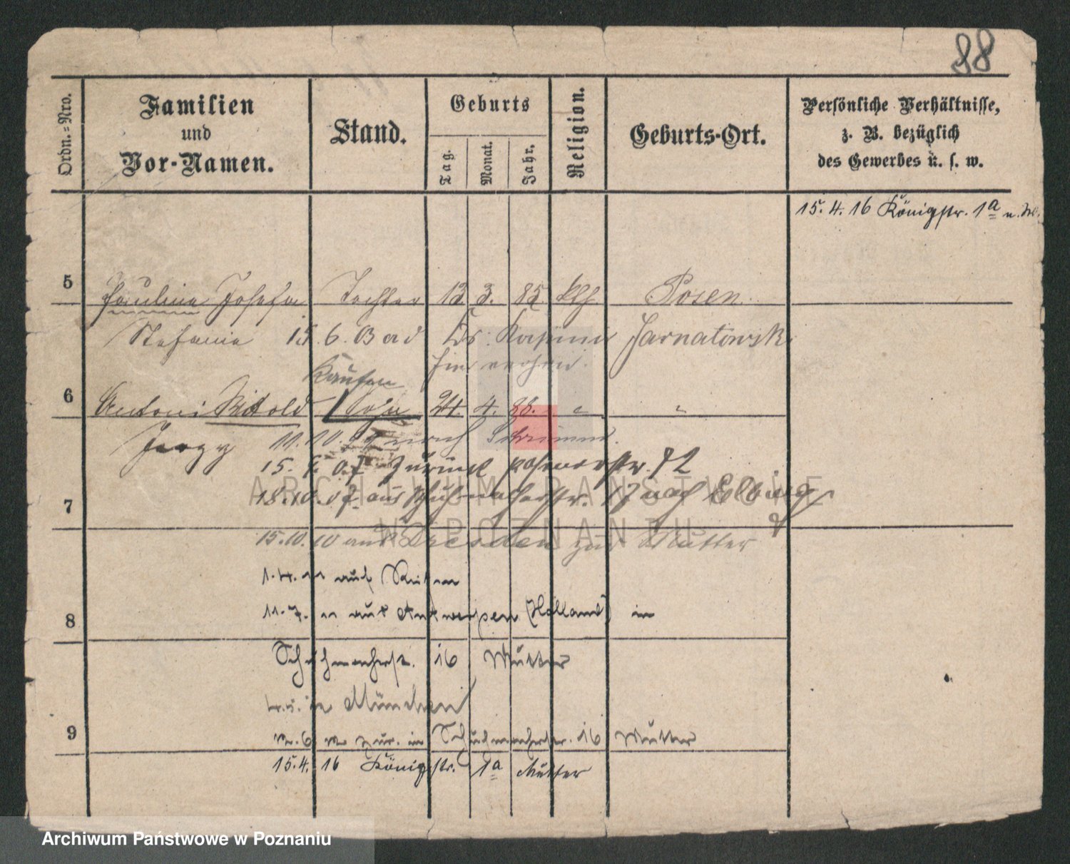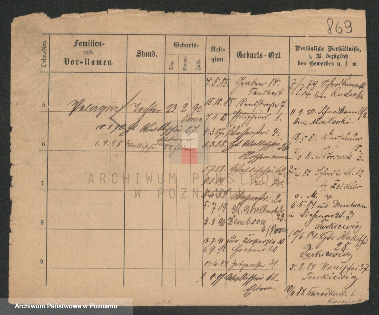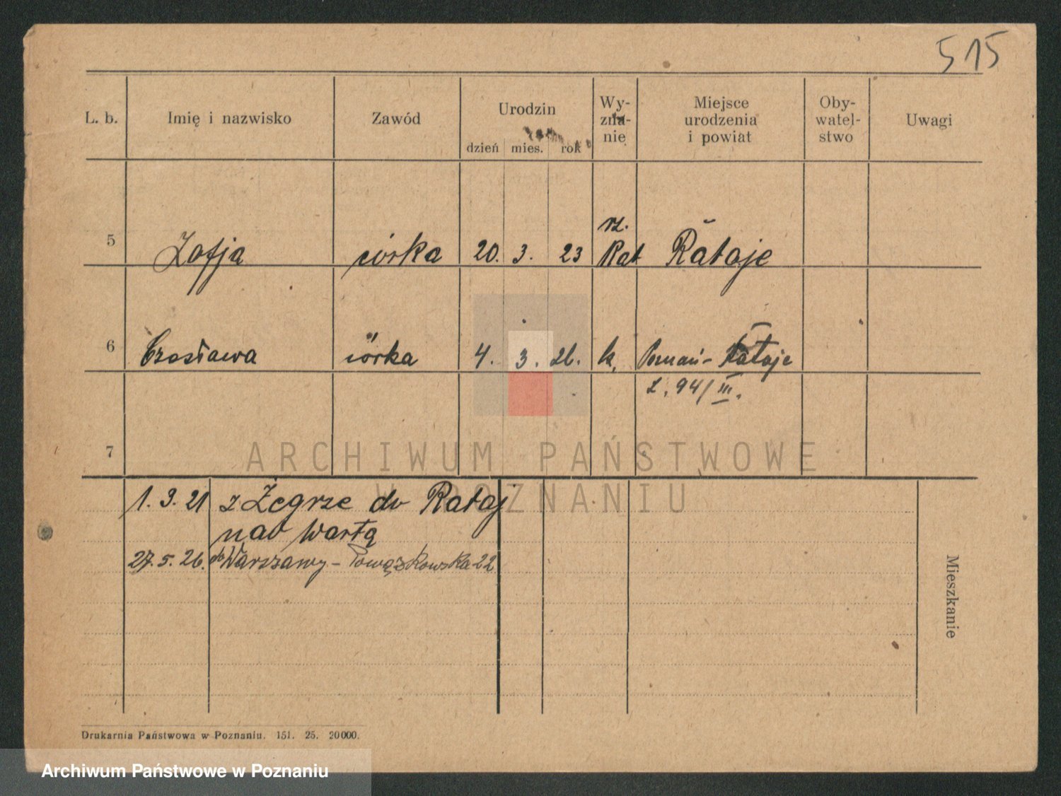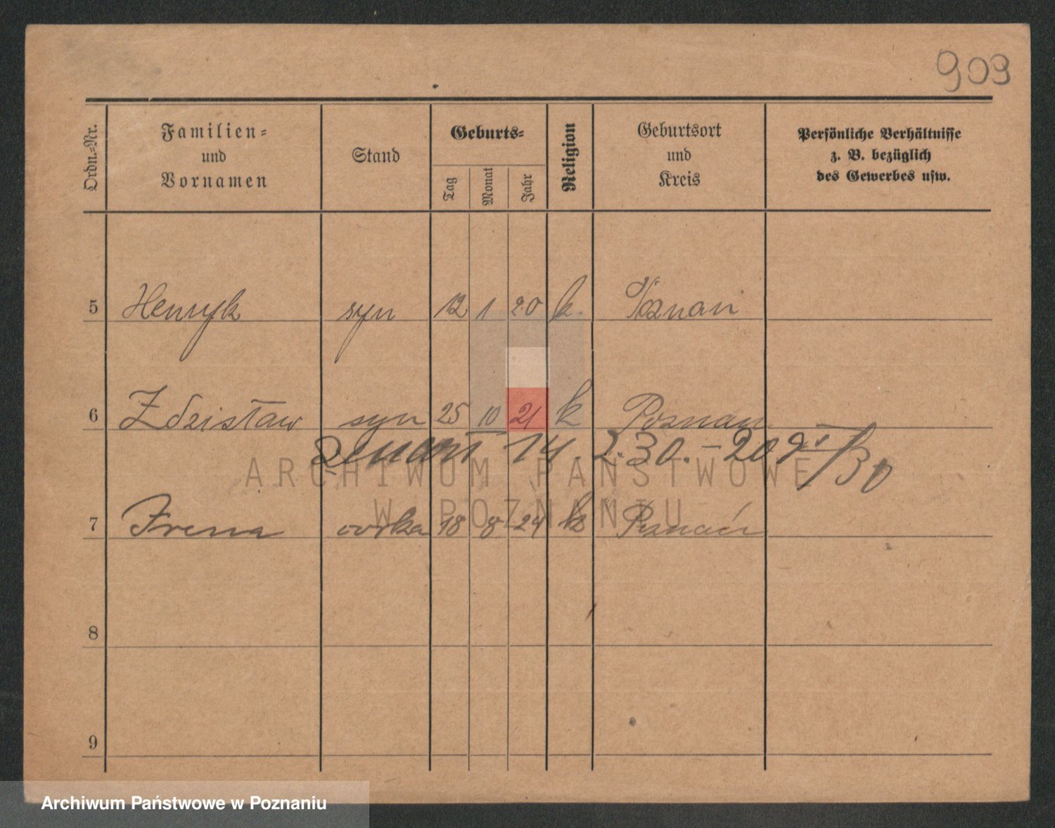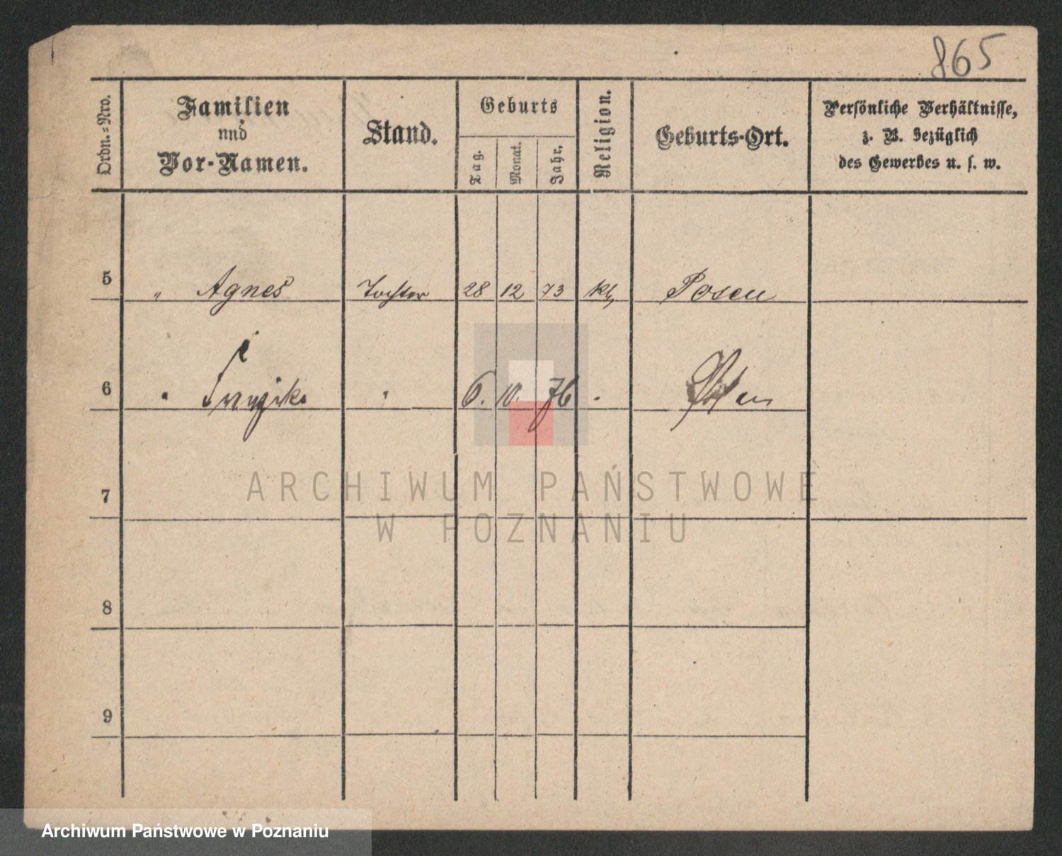 Podgląd karty osobowej dostępny jest po kliknięciu na nazwisko lub ikonkę karty. Można dokonywać powiększenia (ikony na górze) lub przechodzić między kolejnymi skanami (strzałki po bokach).