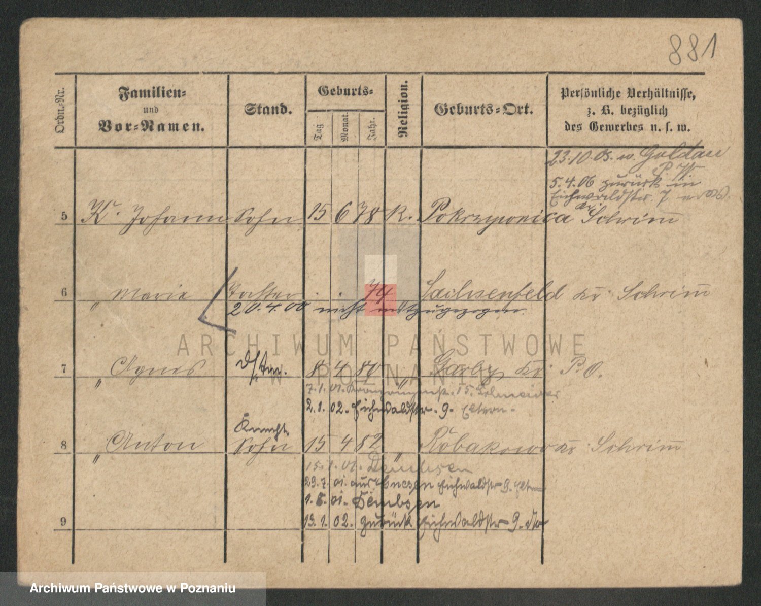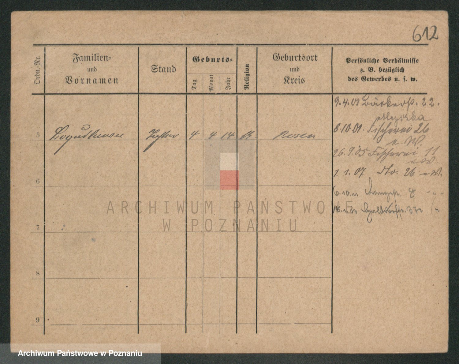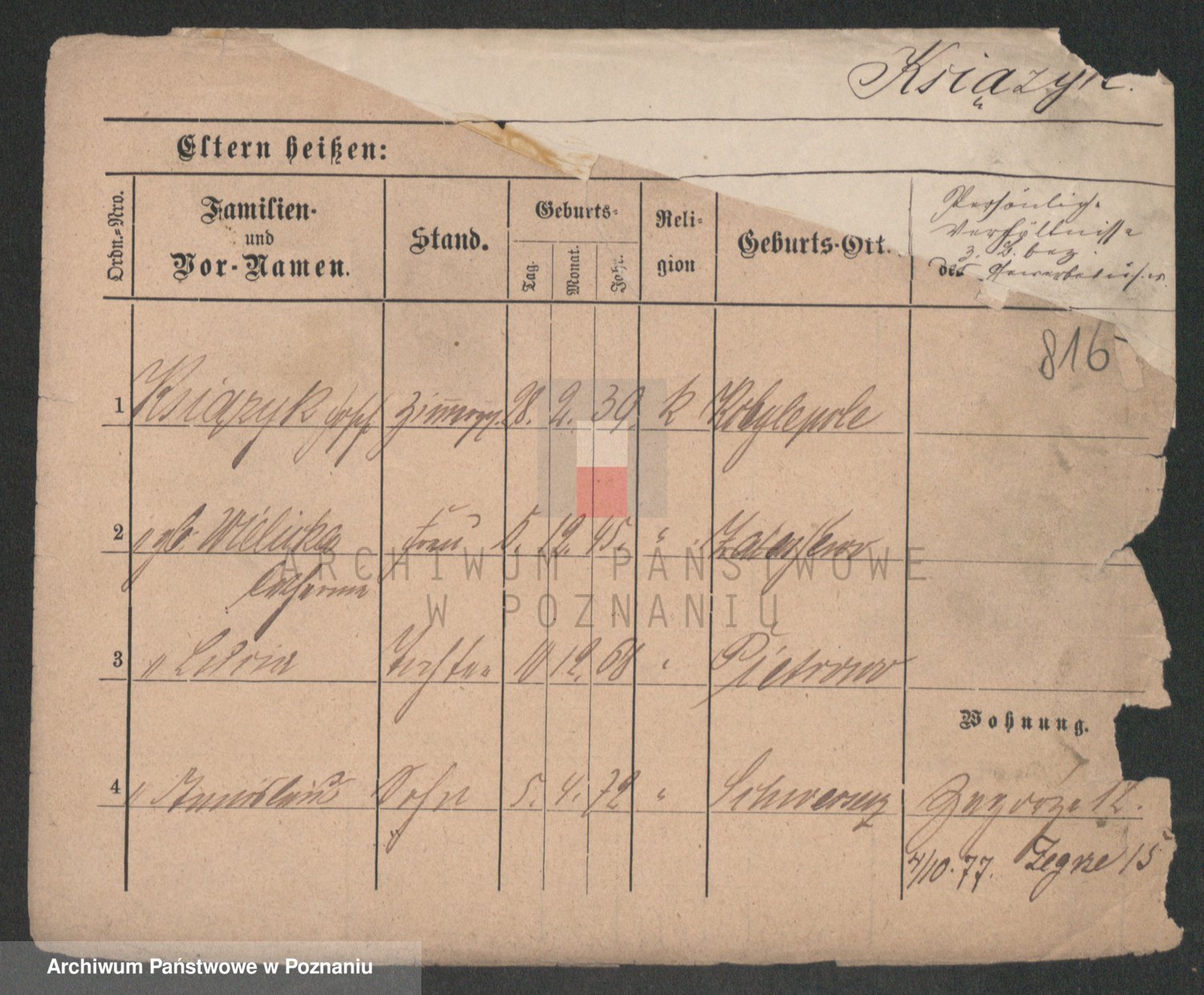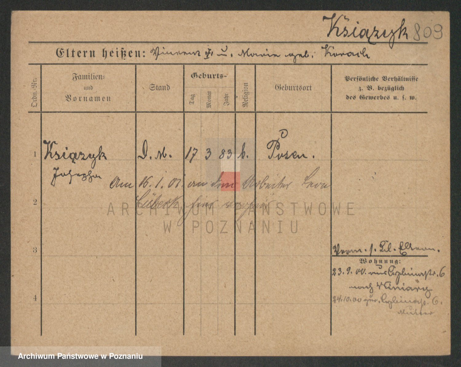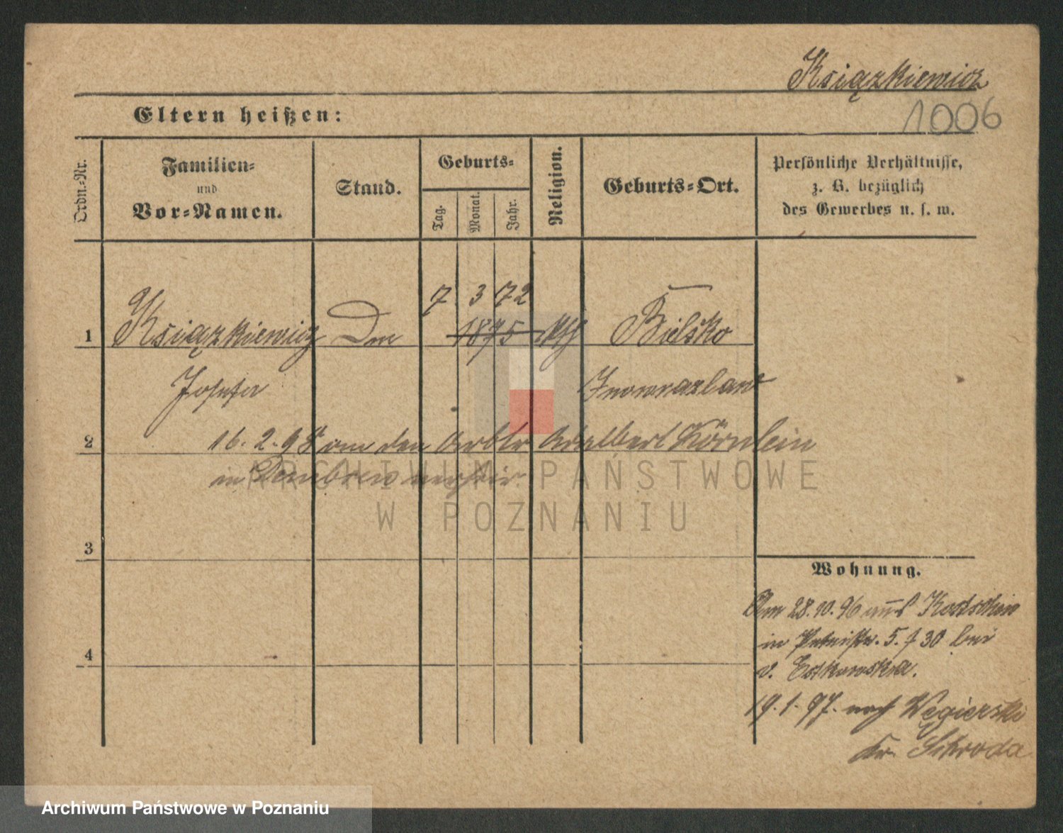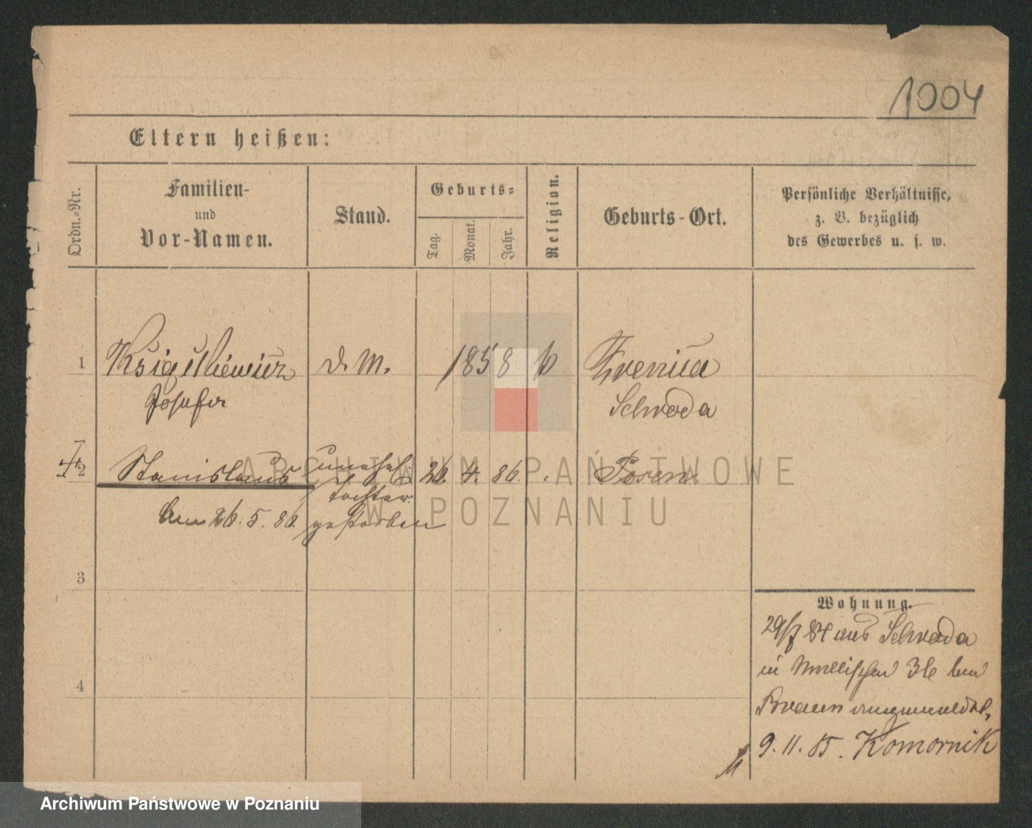 Podgląd karty osobowej dostępny jest po kliknięciu na nazwisko lub ikonkę karty. Można dokonywać powiększenia (ikony na górze) lub przechodzić między kolejnymi skanami (strzałki po bokach).