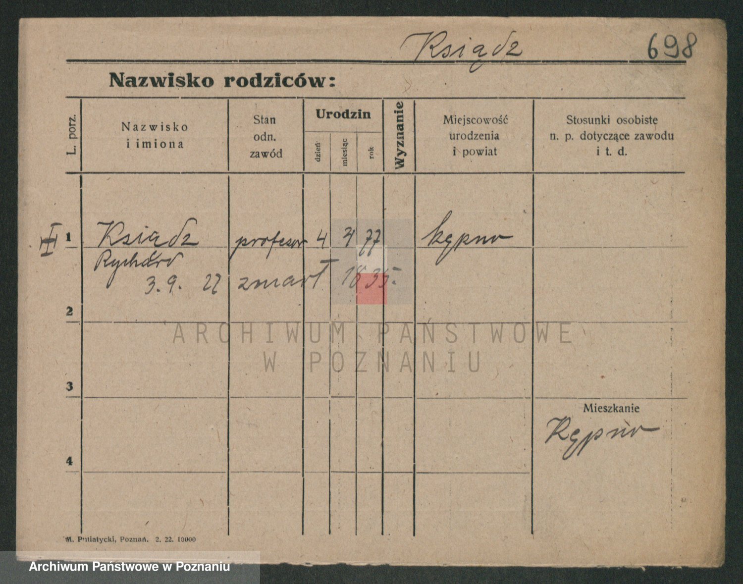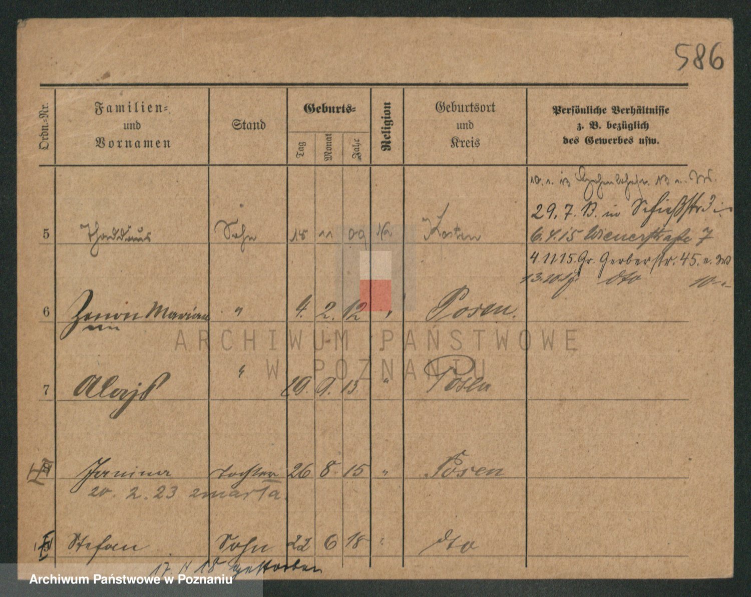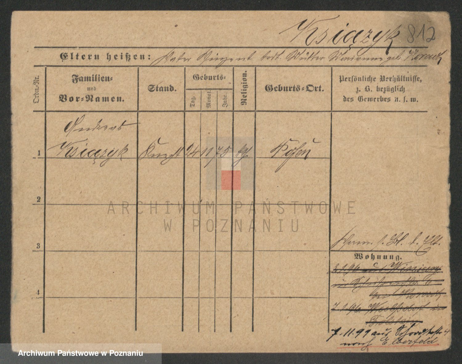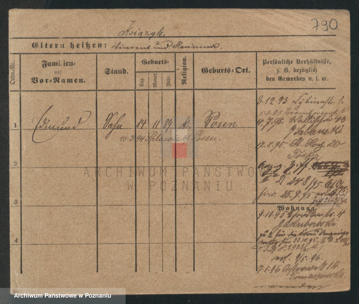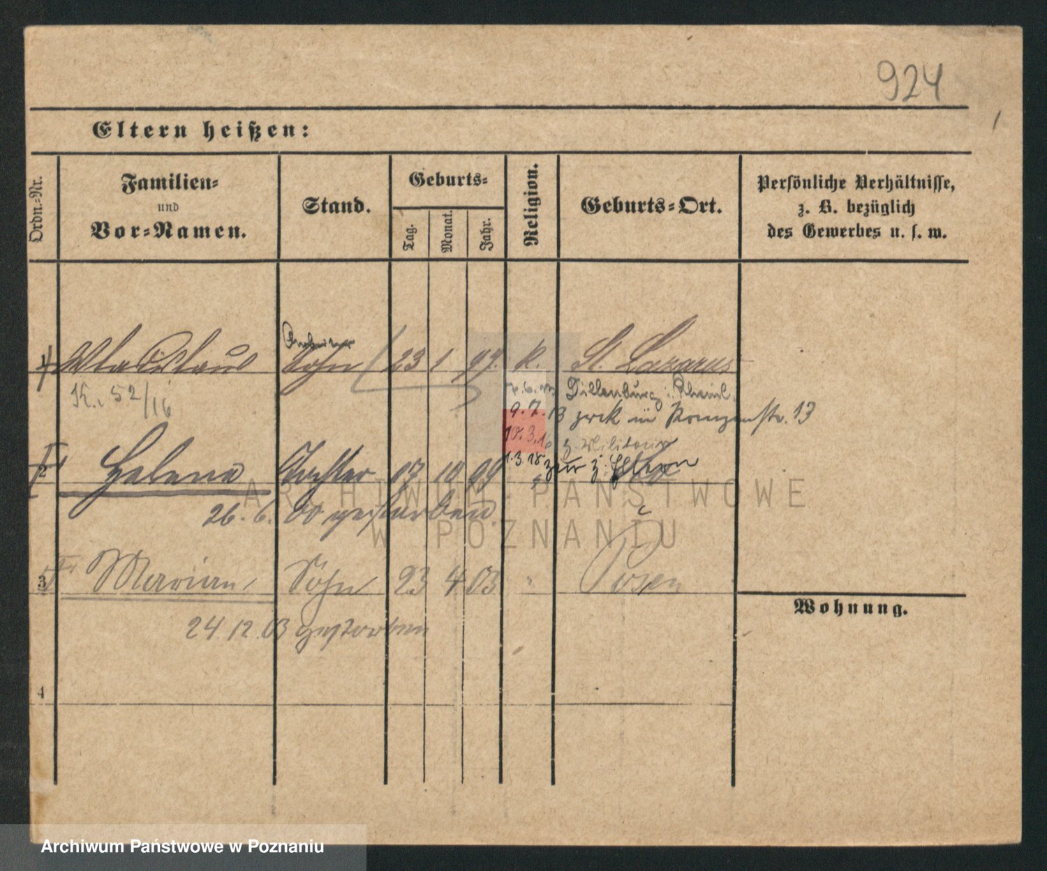 Podgląd karty osobowej dostępny jest po kliknięciu na nazwisko lub ikonkę karty. Można dokonywać powiększenia (ikony na górze) lub przechodzić między kolejnymi skanami (strzałki po bokach).
