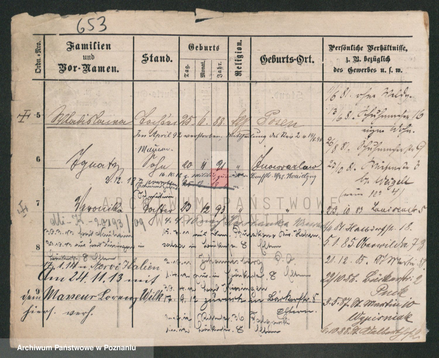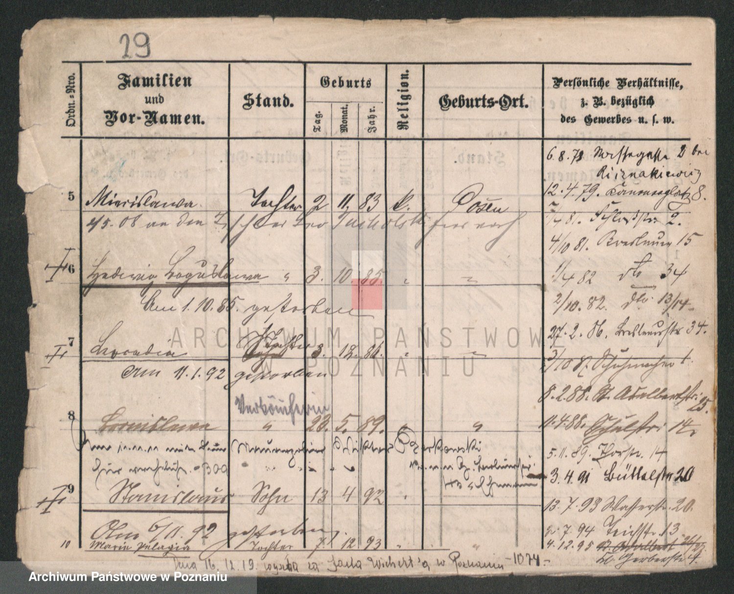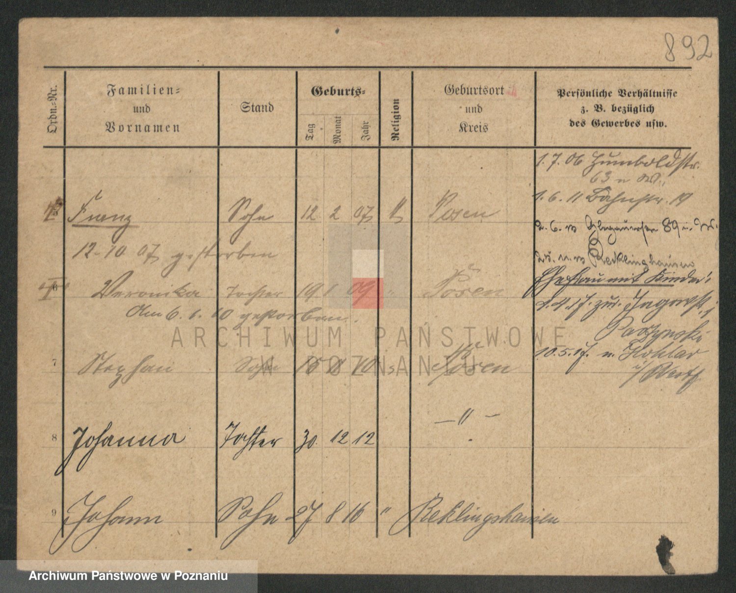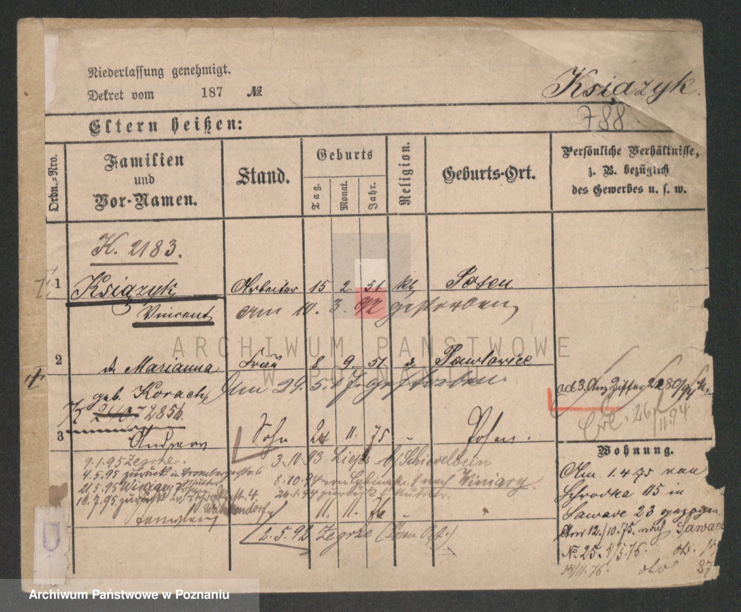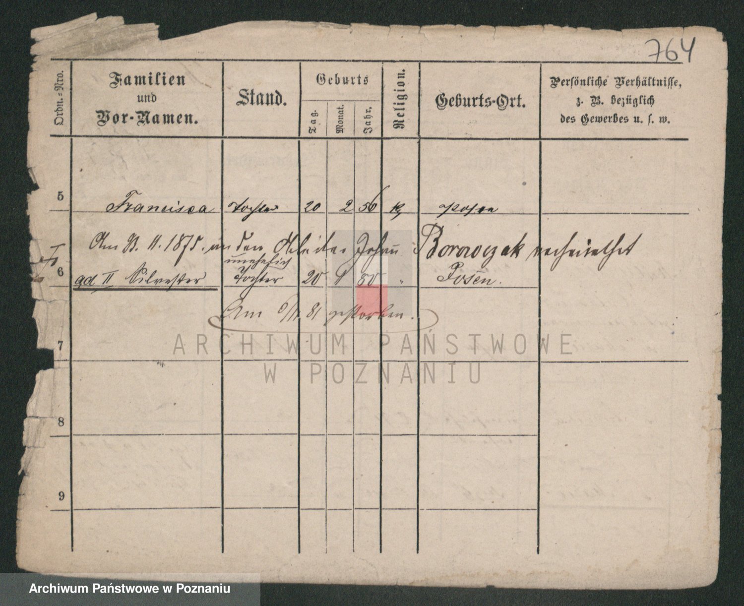 Podgląd karty osobowej dostępny jest po kliknięciu na nazwisko lub ikonkę karty. Można dokonywać powiększenia (ikony na górze) lub przechodzić między kolejnymi skanami (strzałki po bokach).