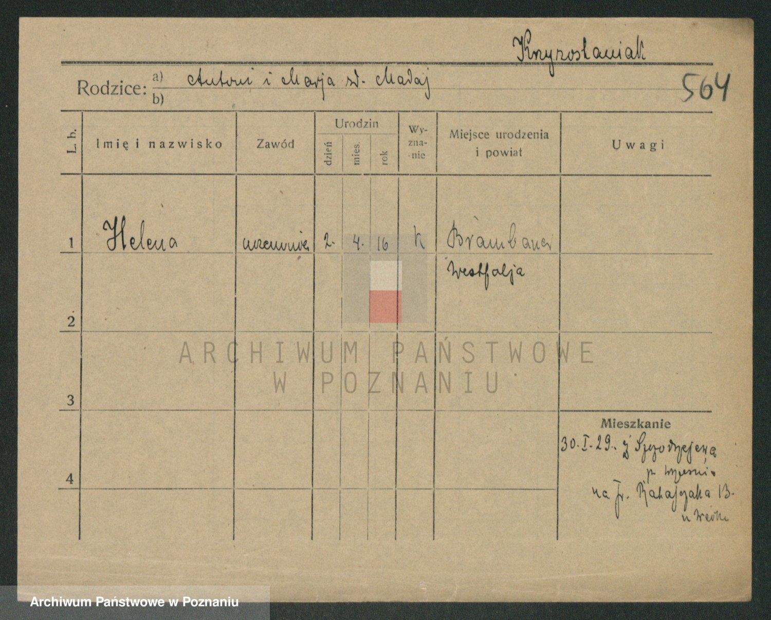 Krzyżanowski z d. Jachimowska, Helene