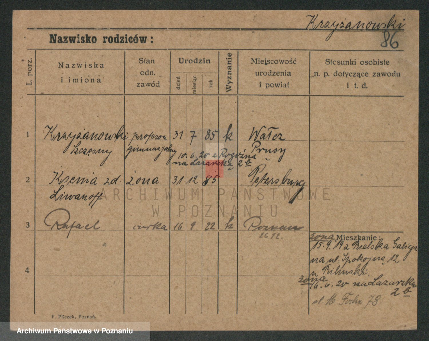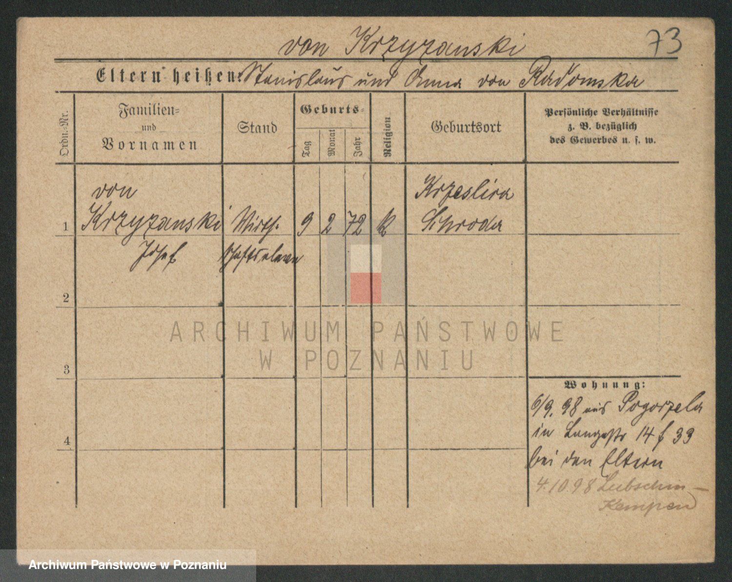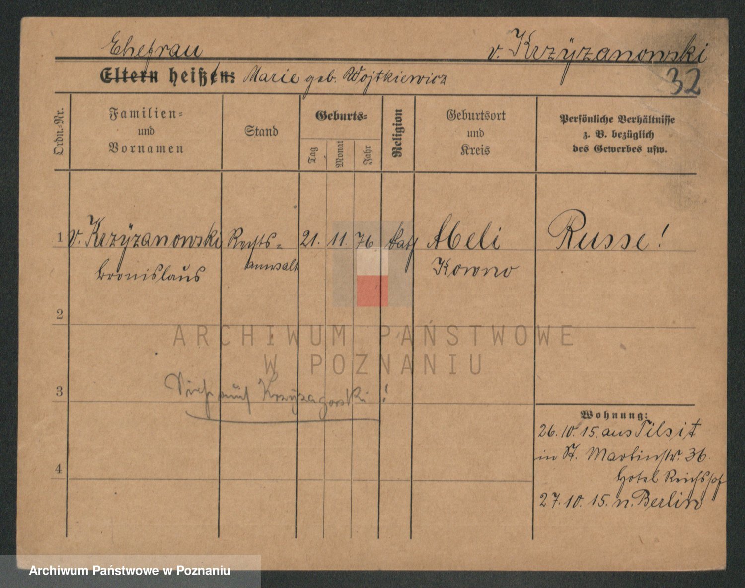 Krzyzanowski von, Bronislaus