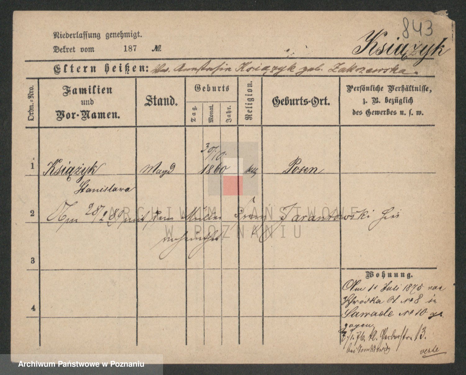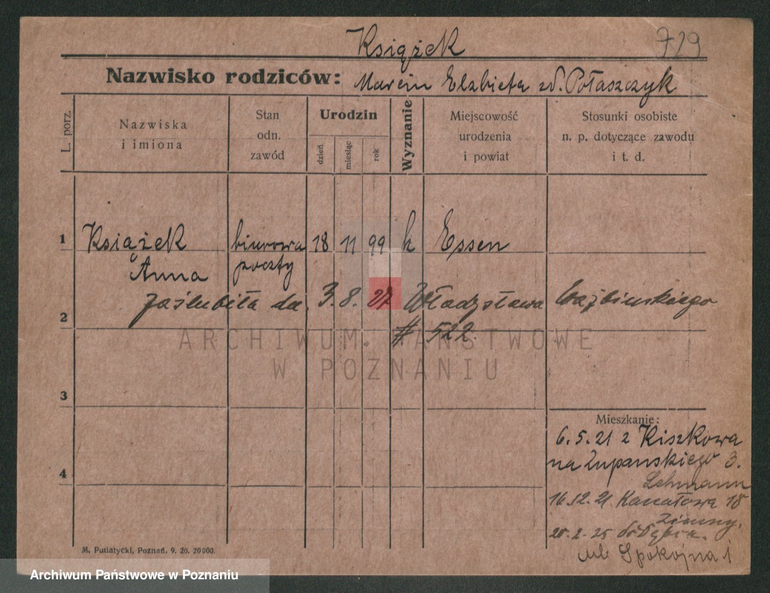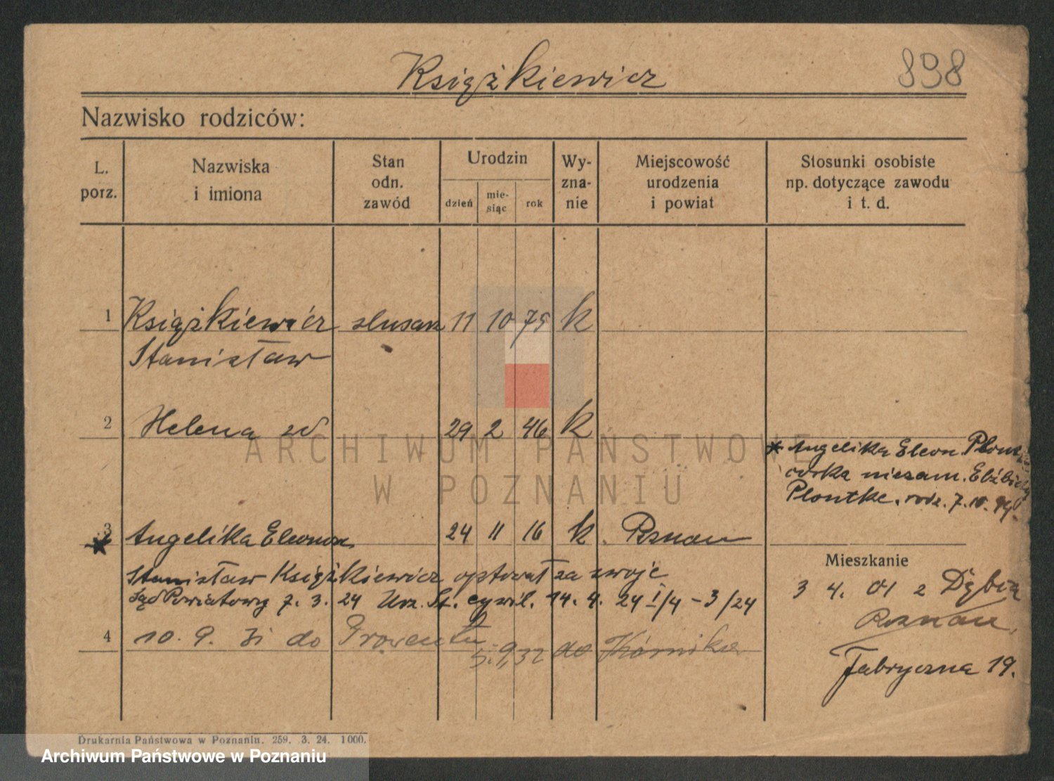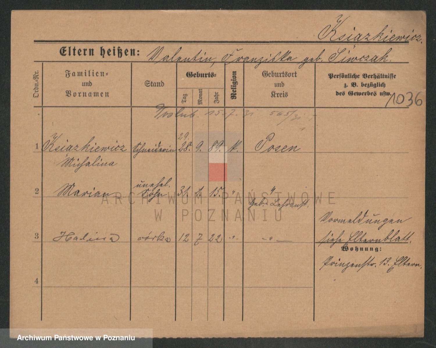 Ksiązniakiewicz z d. Poprawka, Karoline