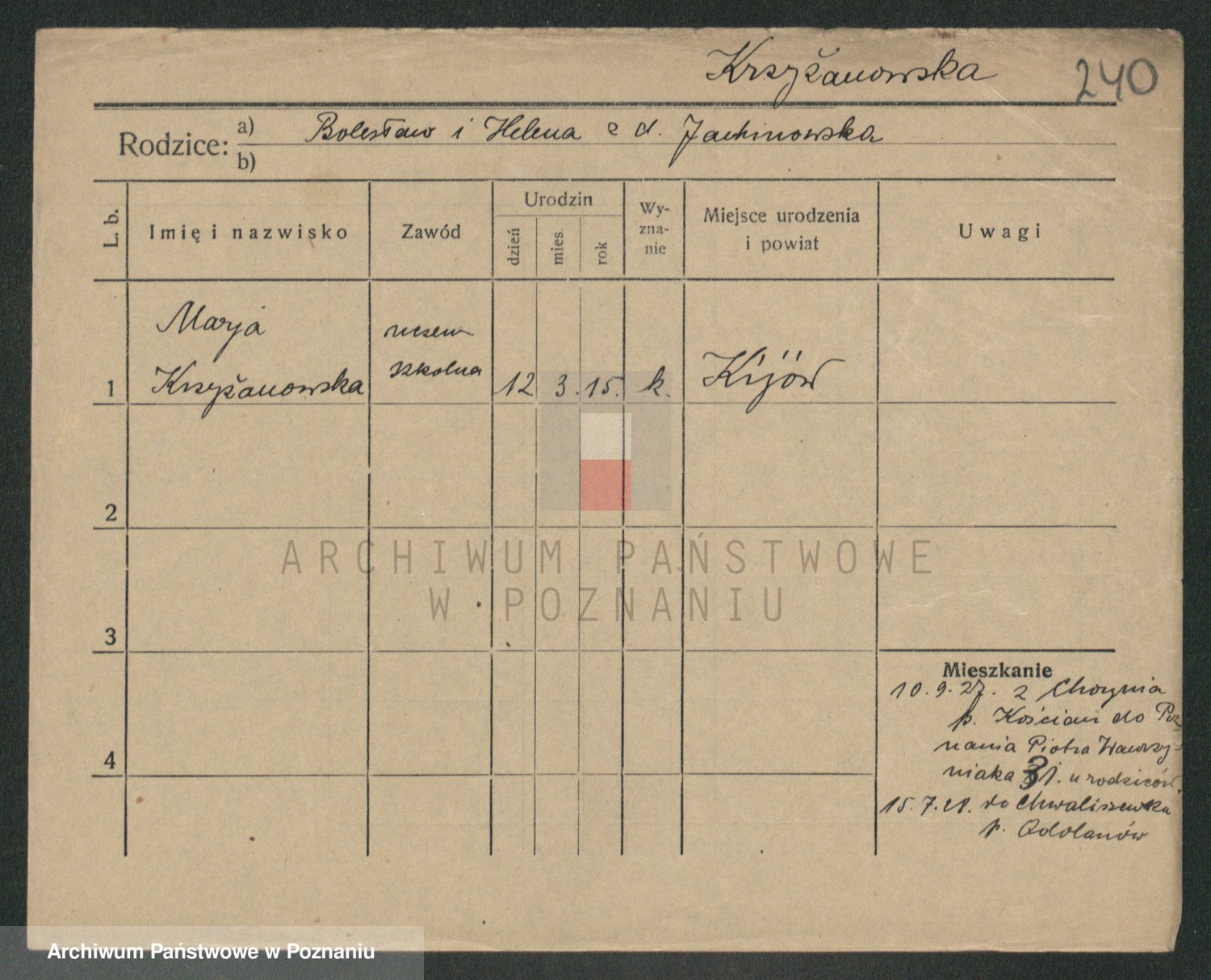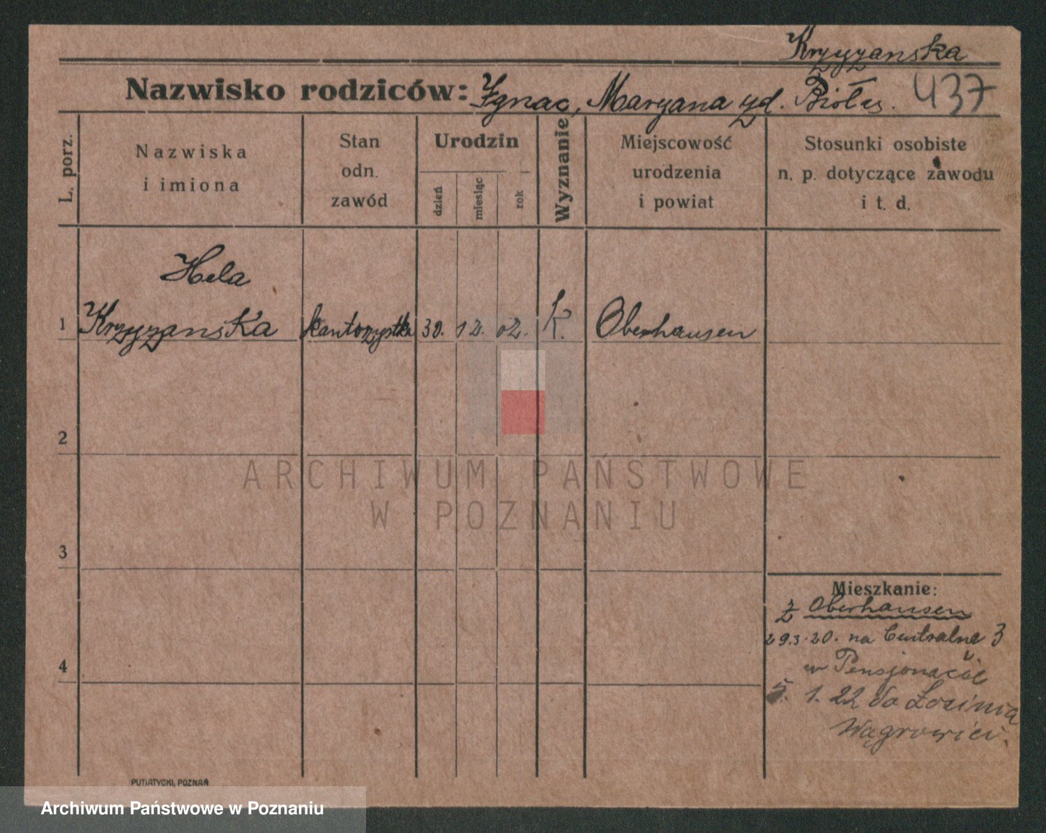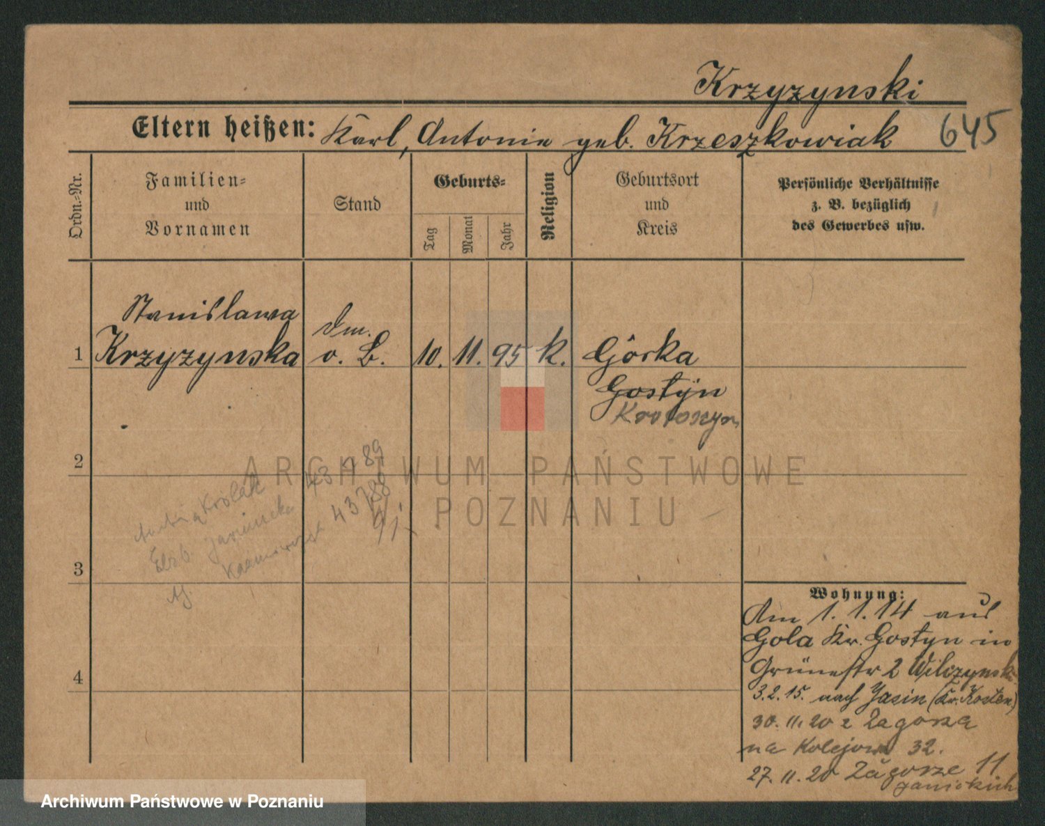 Krzyzanowski z d. Zwolinska, Helene