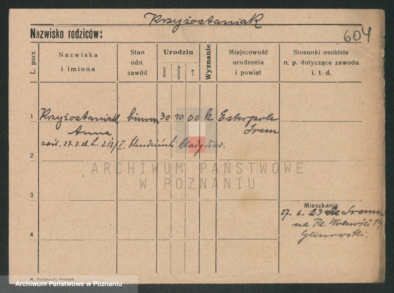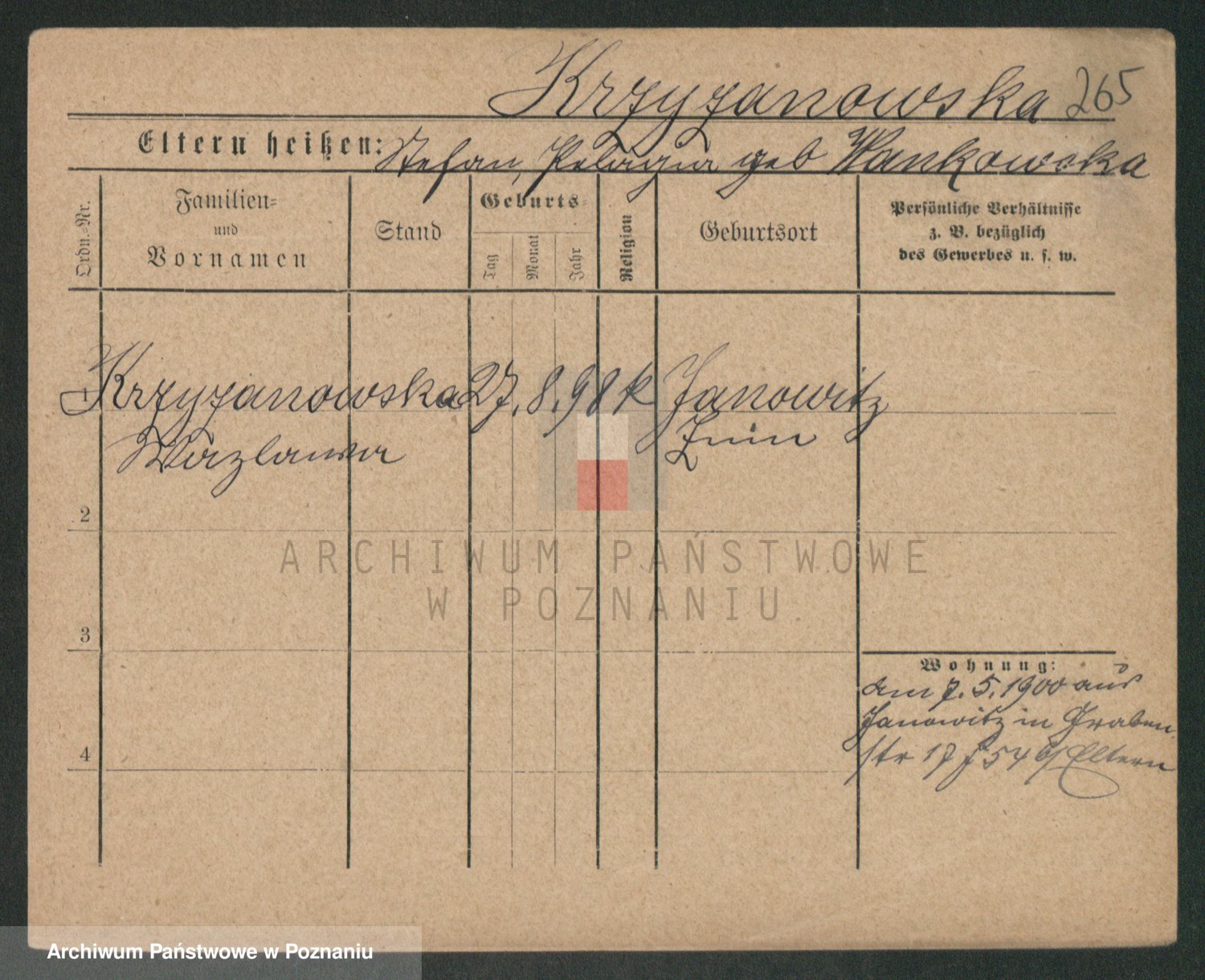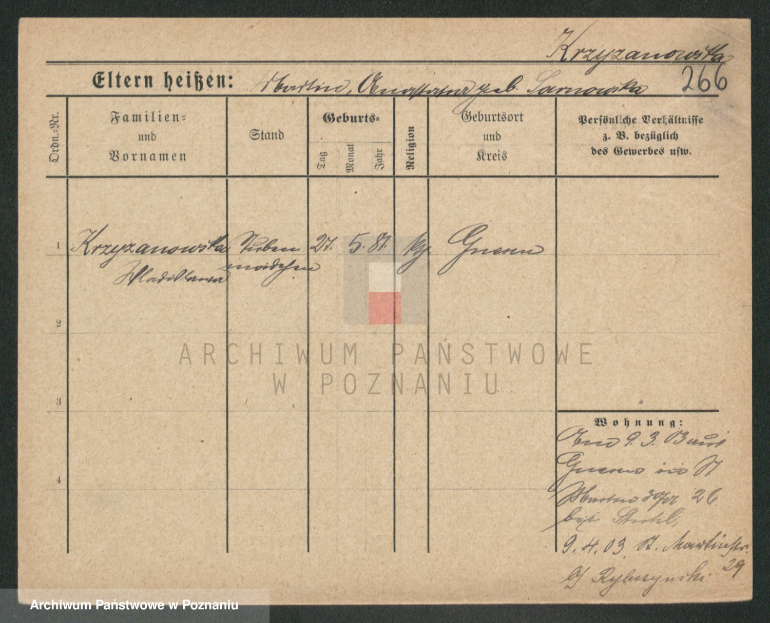 Krzyzanowski z d. Zwolinska, Helene