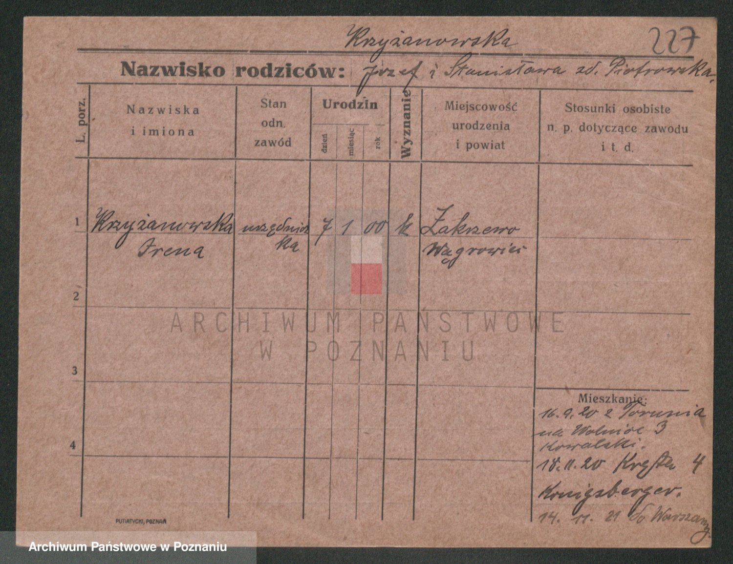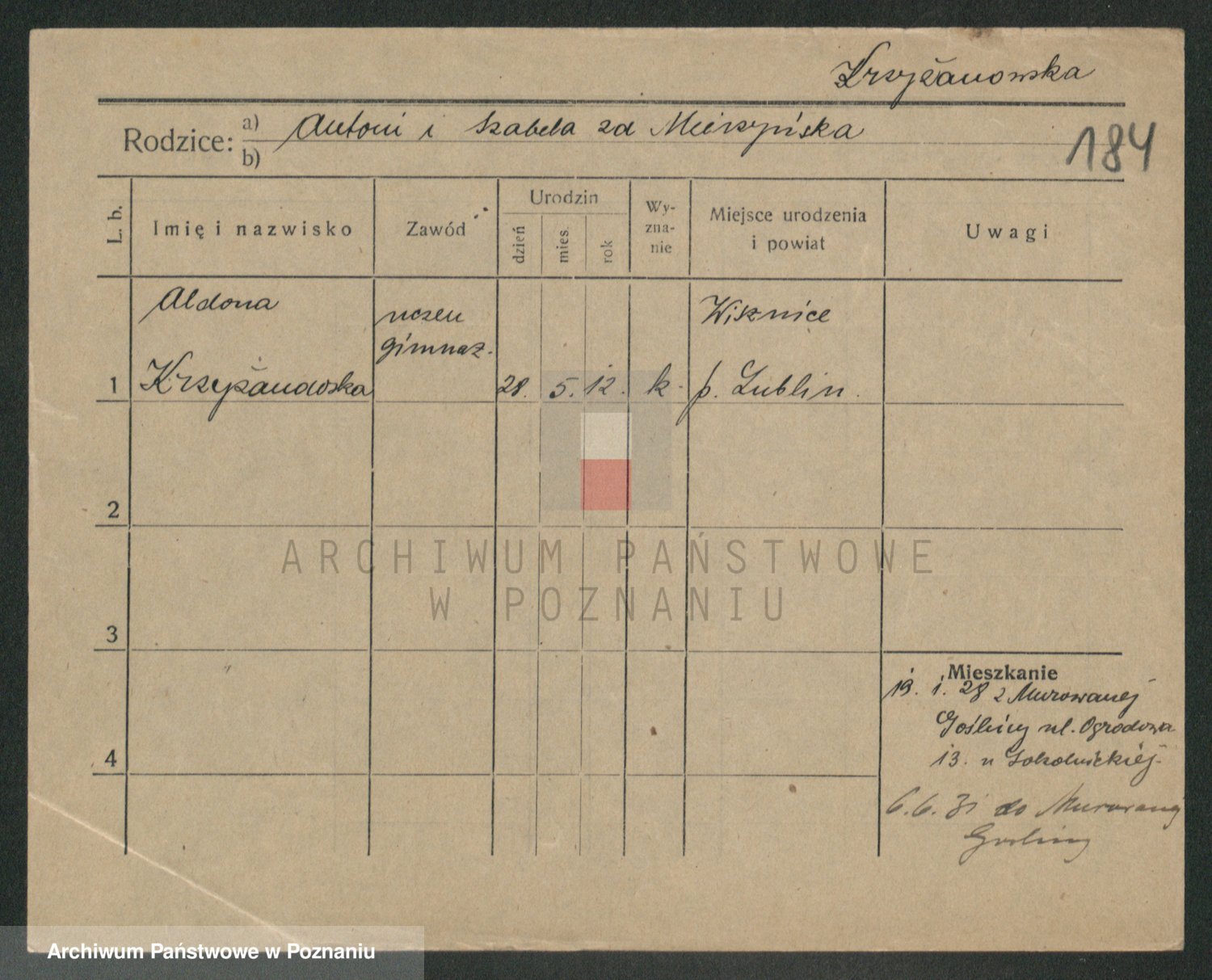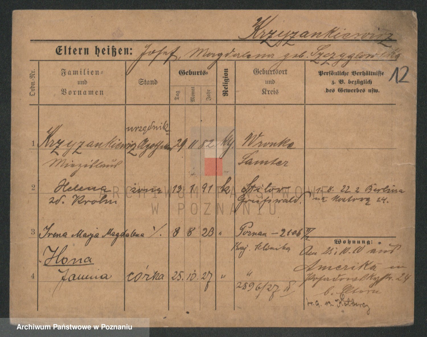 Krzyzankiewicz, Irena Marja Magdalena
