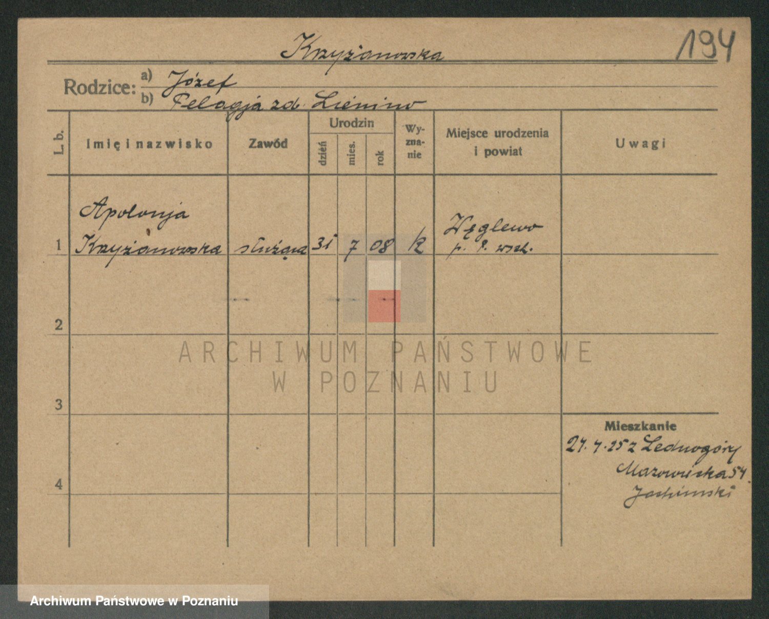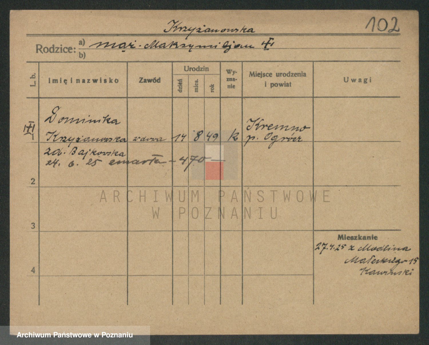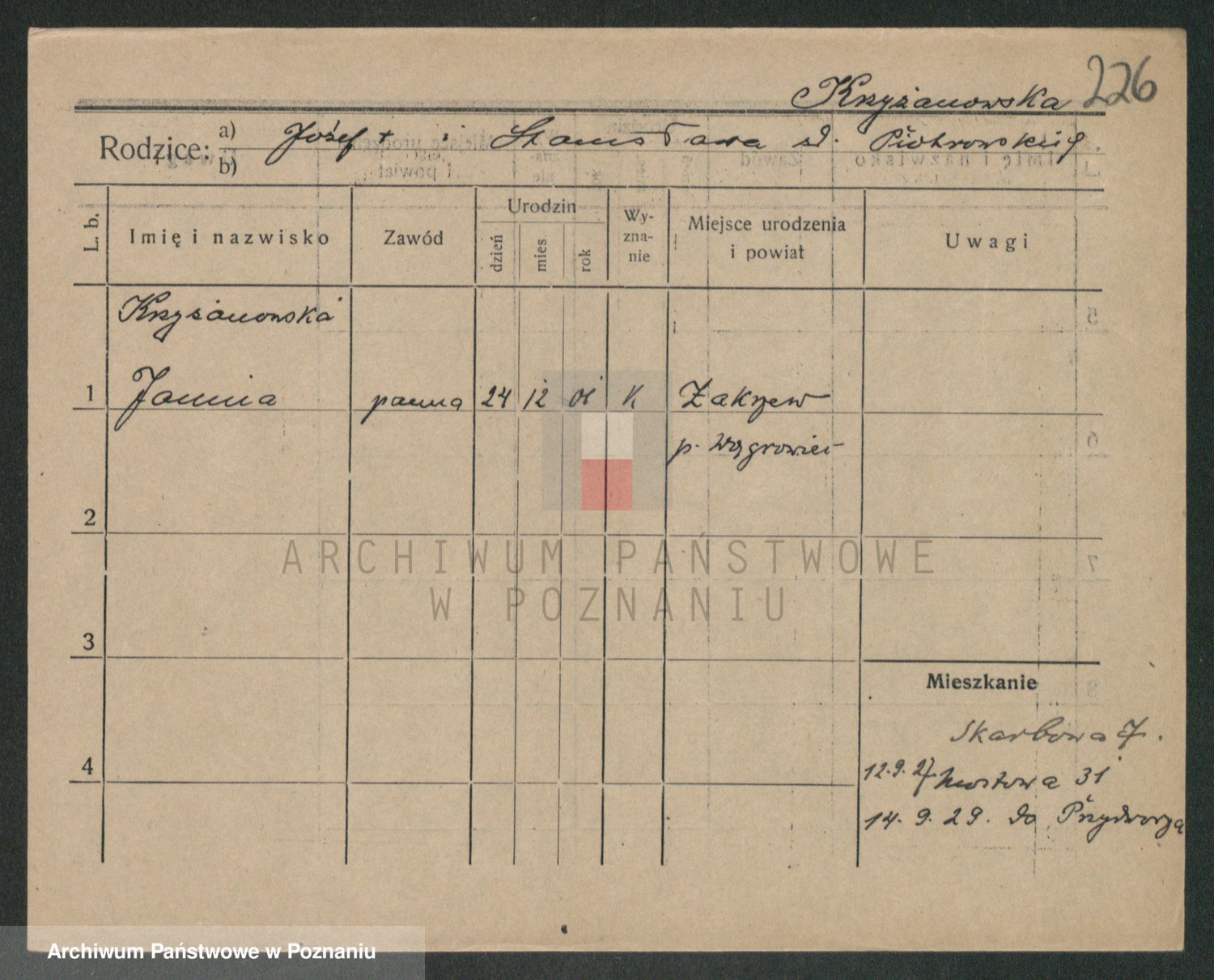 Krzyzankiewicz, Irena Marja Magdalena