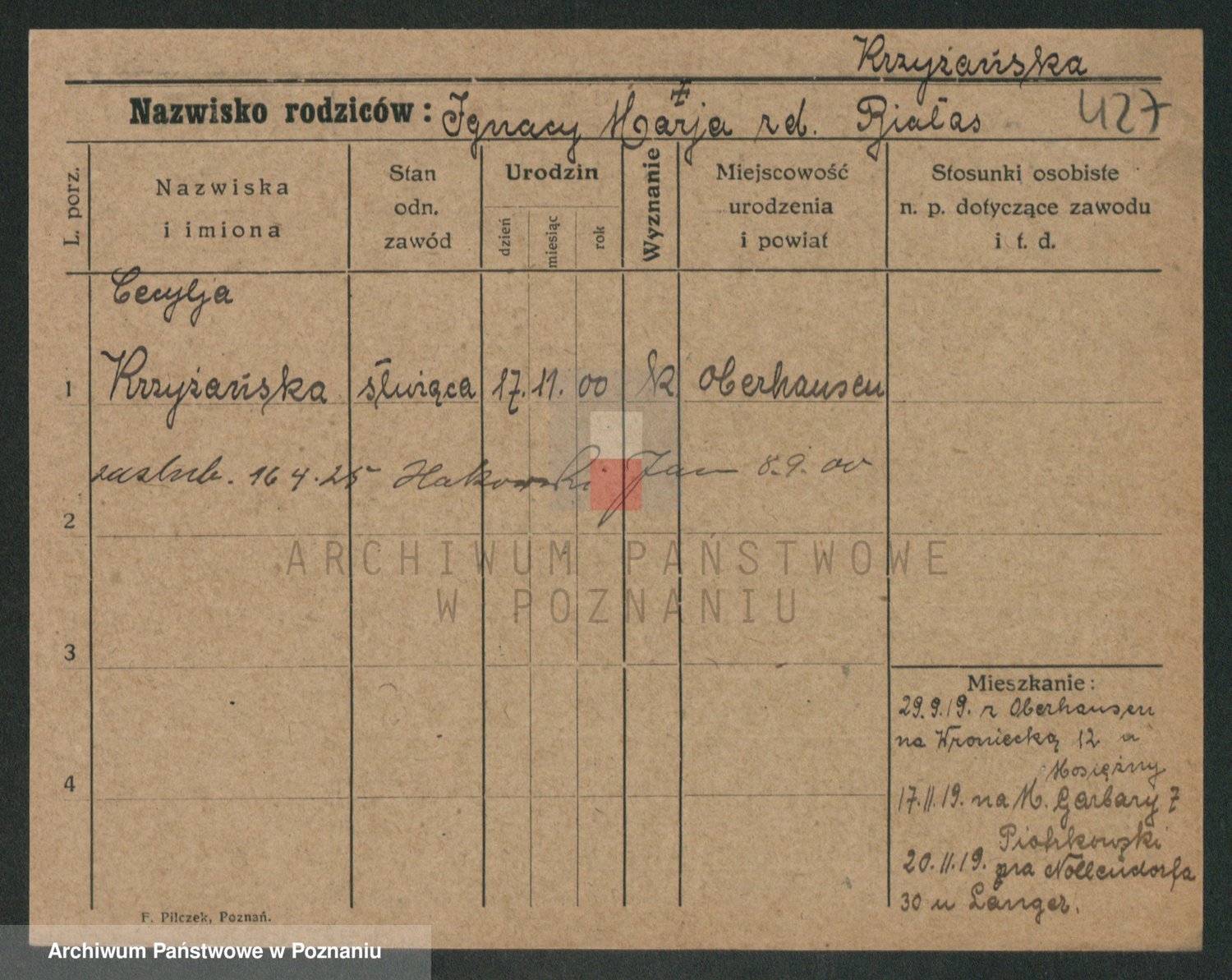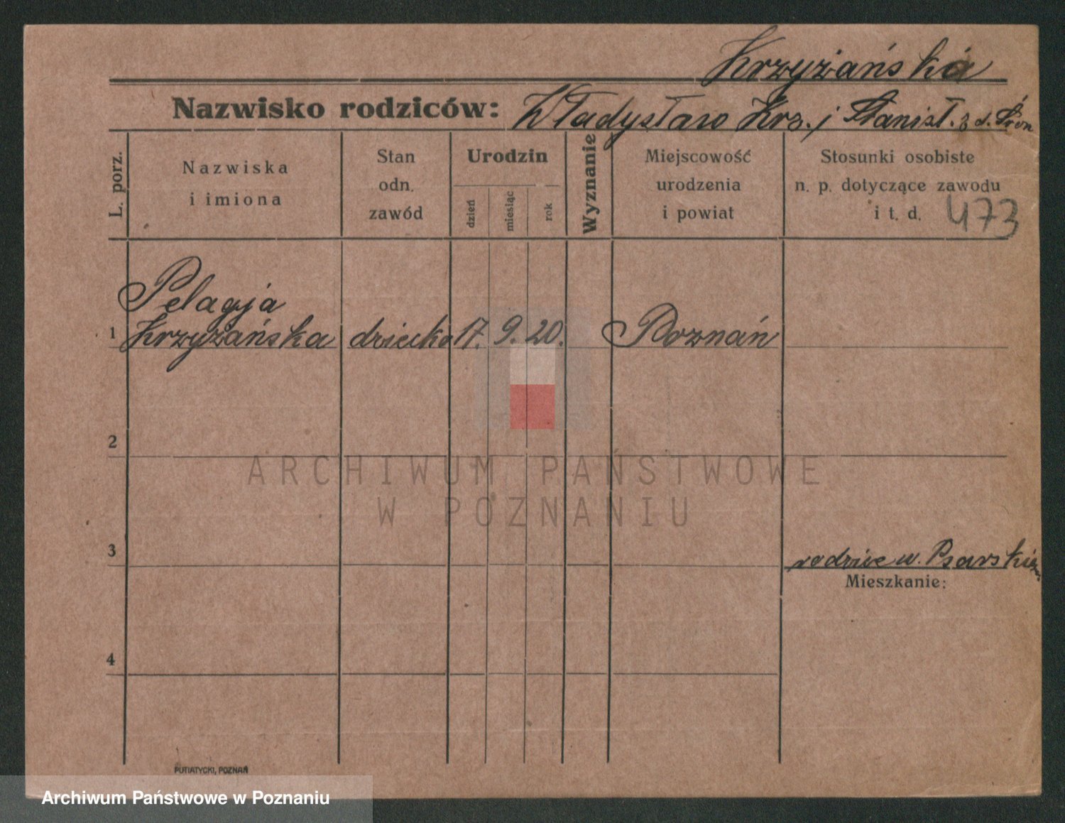 Krzyzanowski, Maria Pelagia