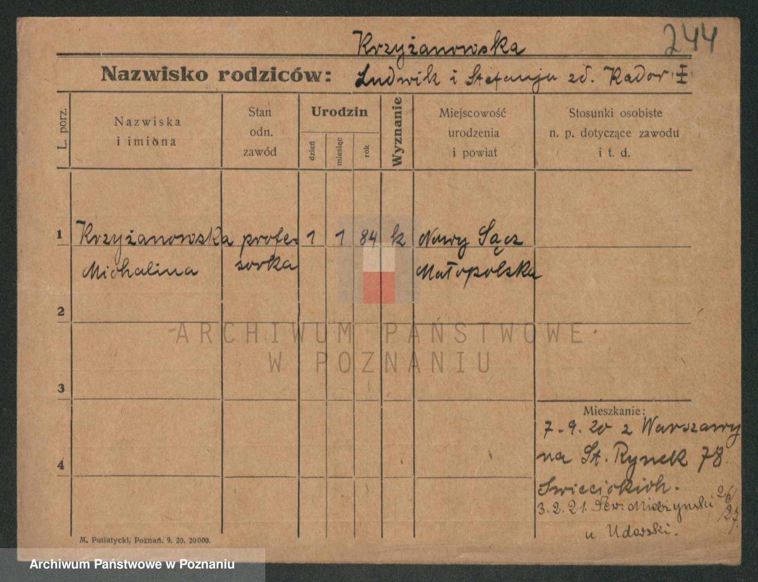 Krzyżanowski z d. Piotrowska 1. voto Rujner, Marta