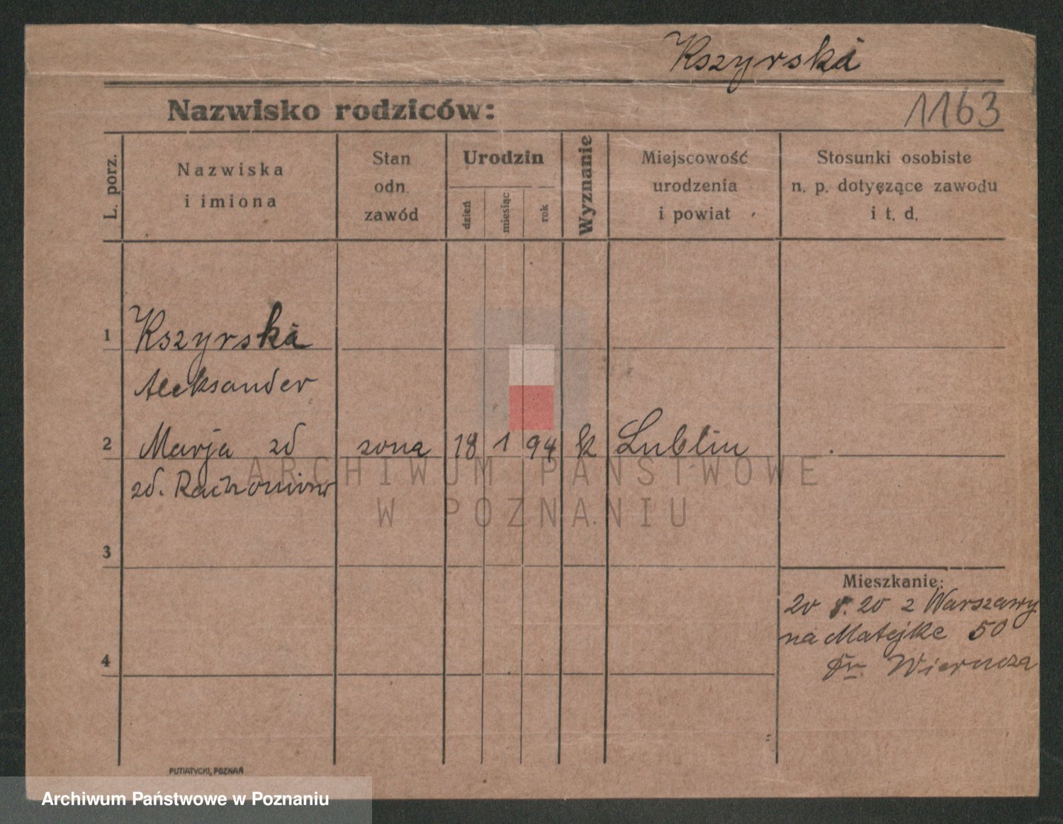 Kszyrski z d. Rachoniow, Marja